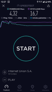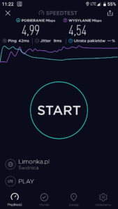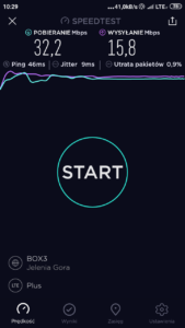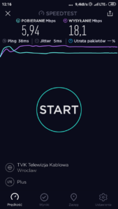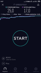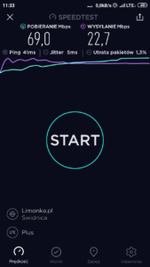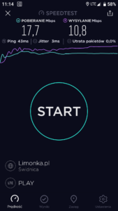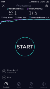 W punkcie, o którym mowa największą prędkość download odnotowano w sieci Plus, prędkość upload – również w sieci Plus