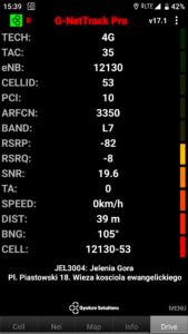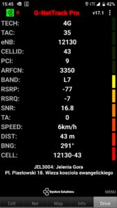 Kolejną stacją, którą Plus rozszerzył w Jeleniej Górze do LTE900/UMTS900 jest stacja BT33173 (maszt LOK, brak pożądanego, trzeciego sektora). Zastanawiają jednak bardzo słabe wartości transferów po rozszerzeniu i implementacji agregacji częstotliwości. W download sięgają około 6 Mbps, zaś w upload – maksymalne wartości, to ledwie 2-3 Mbps.