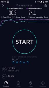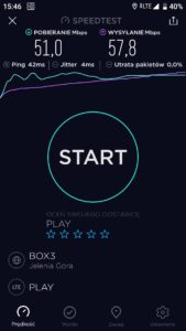 W dniu 20 kwietnia br. zrealizowaliśmy testy speedtest pod dwiema stacjami Plusa w Jeleniej Górze: przy Pl. Piastowskim 18 (BT30677) oraz przy ul. Cieplickiej 83 (BT34558). Dla porównania – przy stacji BT30677 zrealizowaliśmy również testy dla sieci Play. W tej samej lokalizacji znajduje się bowiem także stacja tego operatora. Oba terminale wybierały zakresy w trybie automatycznym