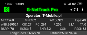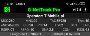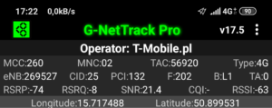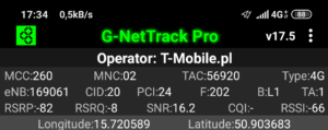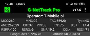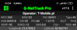 Jak widać na załączonych zrzutach ekranu, terminal z kartą SIM w sieci T-Mobile zalogował się do właściwej stacji względem miejsca swojego położenia