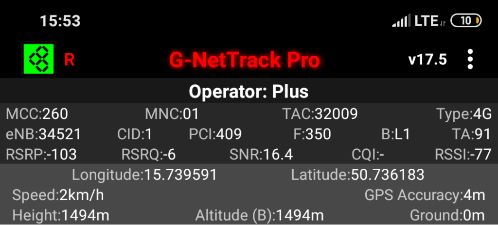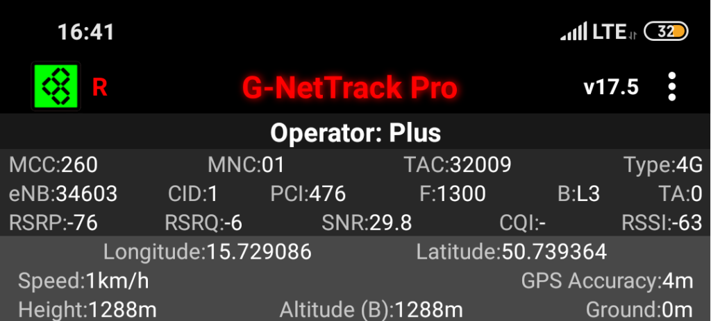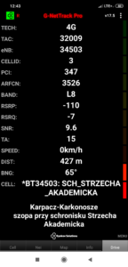 Można powiedzieć, że operator wykorzystał około 75 % możliwości tej stacji. Główny zarzut, ale bardzo istotny, to brak możliwości skorzystania z usług w sposób stabilny, a już nade wszystko z usług Data wewnątrz schroniska „Dom Śląski”, co mocno dziwi. Występuje również, prawdopodobnie parametryzacyjny problem z przełączaniem terminala z sieci 3G do 4G. W momencie zalogowania terminala do sieci 3G możemy bardzo długo czekać do momentu przełączenia do sieci 4G. Dzieje się tak na obu sektorach. Na obu głównych azymutach sygnał sieci ze stacji dostępny jest około kilometra od jej lokalizacji. Azymuty są zorganizowane na dwa główne kierunki Szlaku Jubileuszowego, tj.: