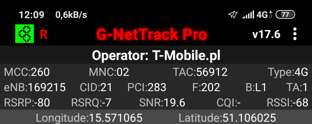 1. Wyniki pomiarów, uzyskanych pod nową stacją w sieciach T-Mobile i Orange: