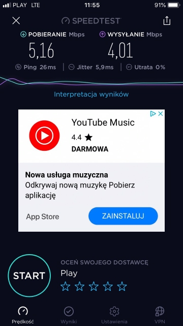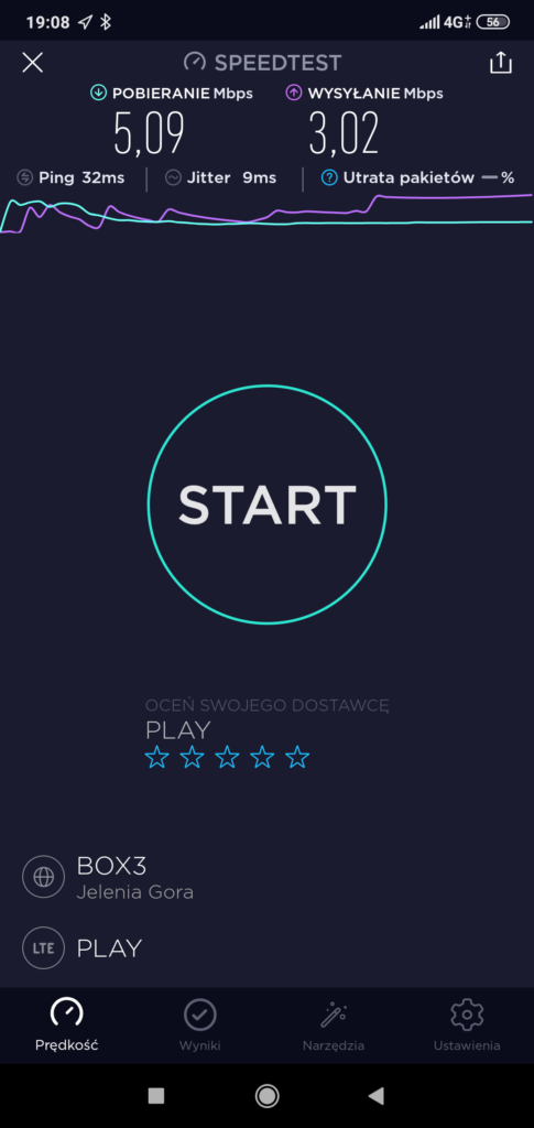 Zaś na parkingu, w sąsiedztwie autostrady A2, również w Poznaniu internet Play pokaże wynik: