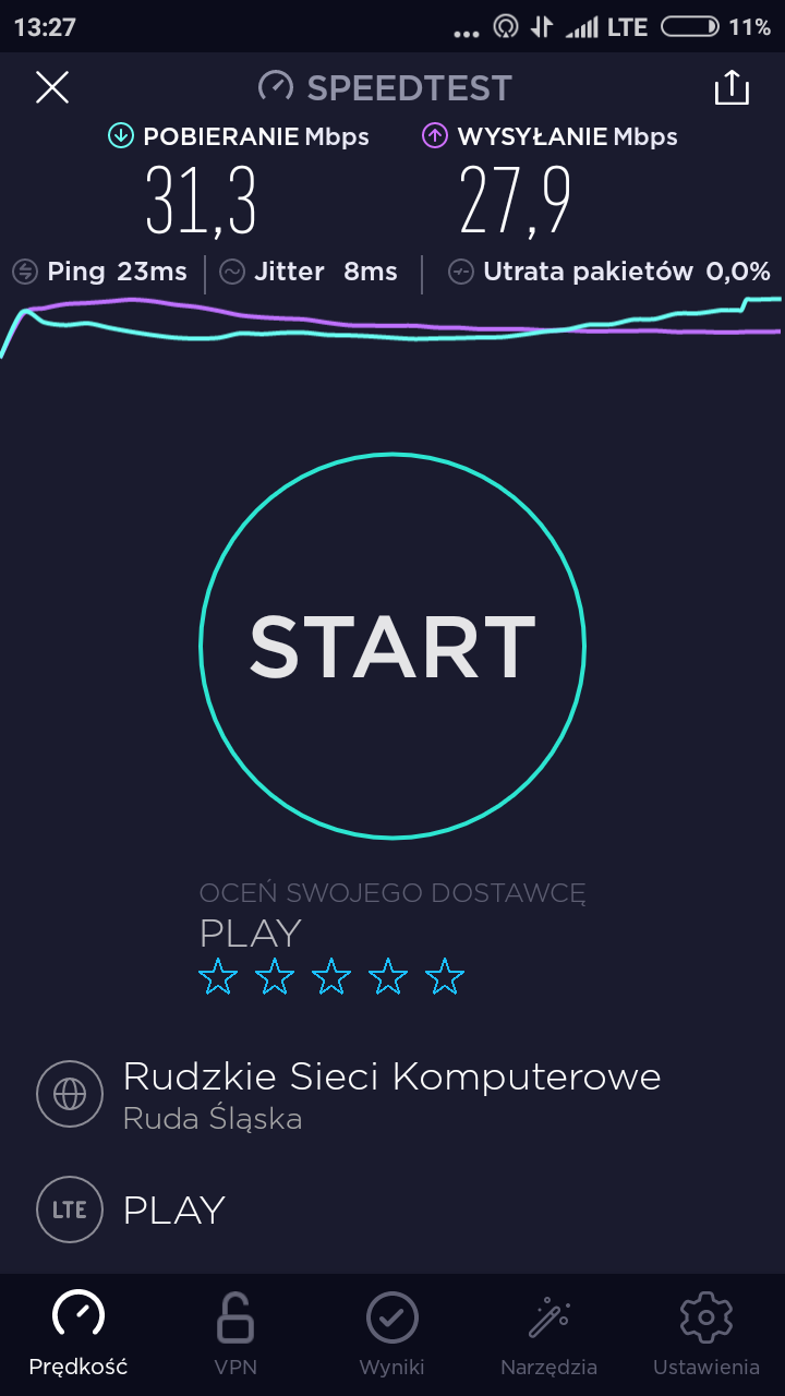 Zdjęcia i zrzut ekranu z mobilnej wersji aplikacji speedtest.net