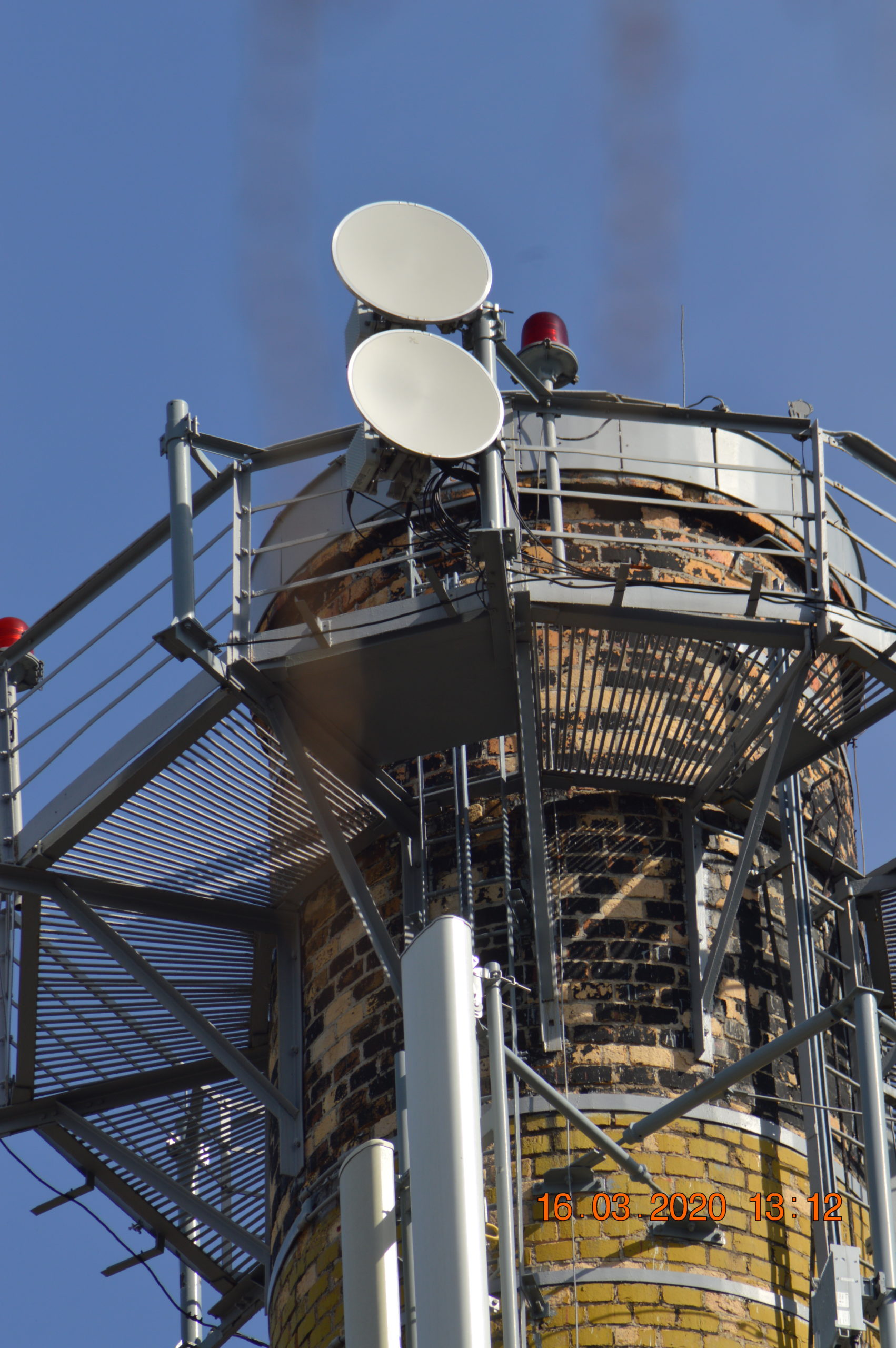 Rozłożenie sektorów: jeden na szczycie komina, dwa kolejne w jego 1/3 wysokości.