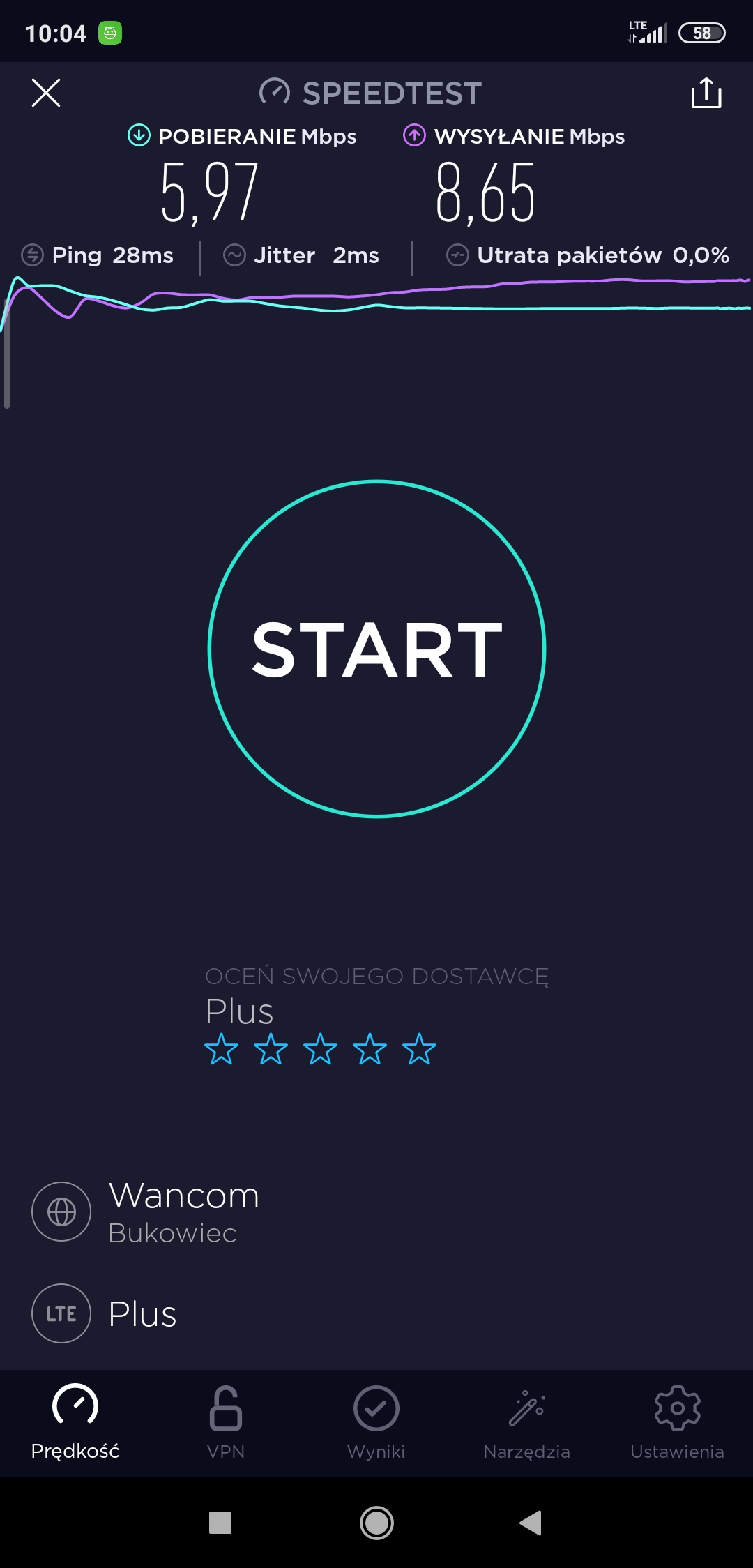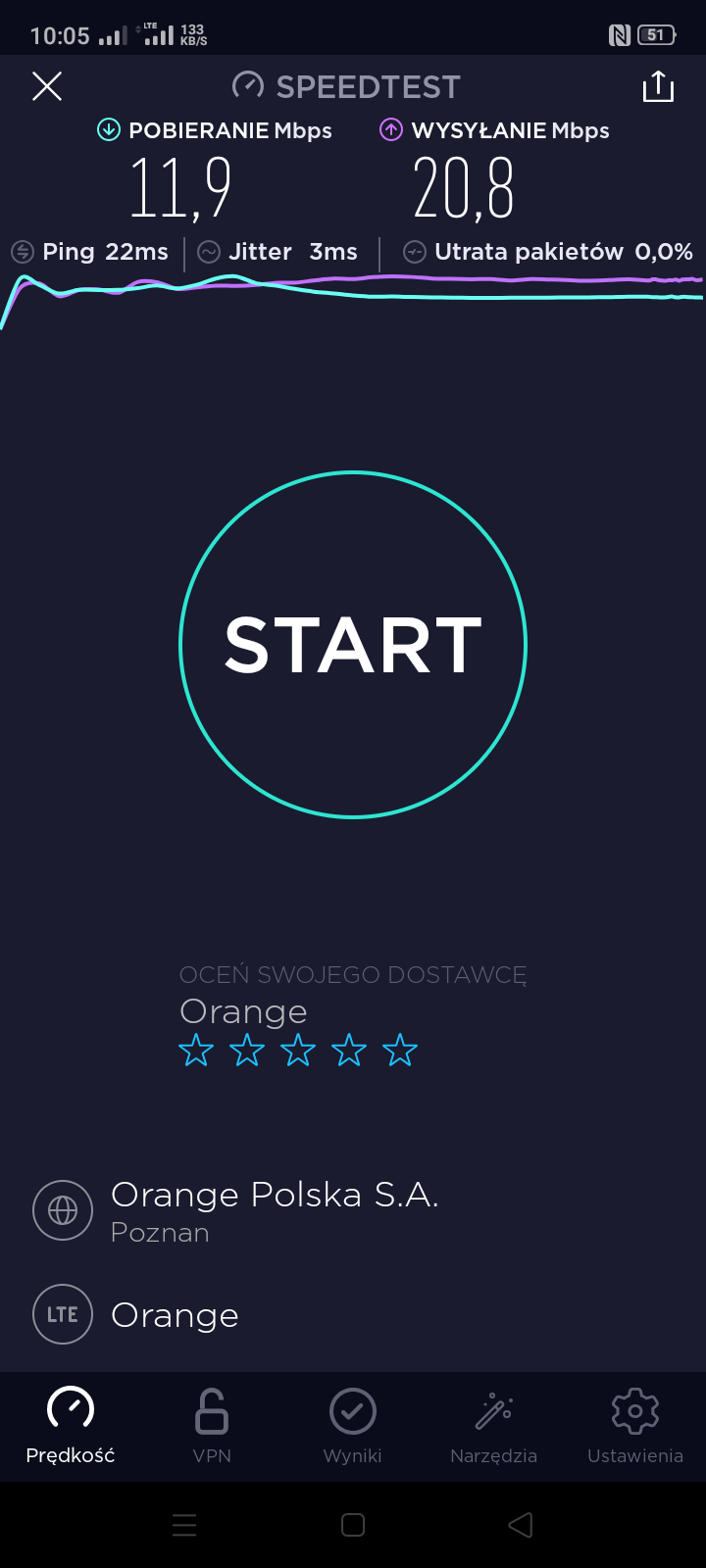 Prezentujemy kolejne testy speedtest operatorów w Jeleniej Górze. Tym razem na zewnątrz budynków, przy ul. Okopowej. To sąsiedztwo biurowców administracji KAS, hurtowni, osiedla mieszkaniowego, rozwidlenia biegu linii kolejowych oraz nitek drogowych do dwóch granic Państwa: w Zgorzelcu (Niemcy) oraz w Jakuszycach (Republika Czeska). Testy zostały zrealizowane dla Play, Orange oraz Plusa. Terminala z kartą SIM T-Mobile w tym momencie nie posiadaliśmy