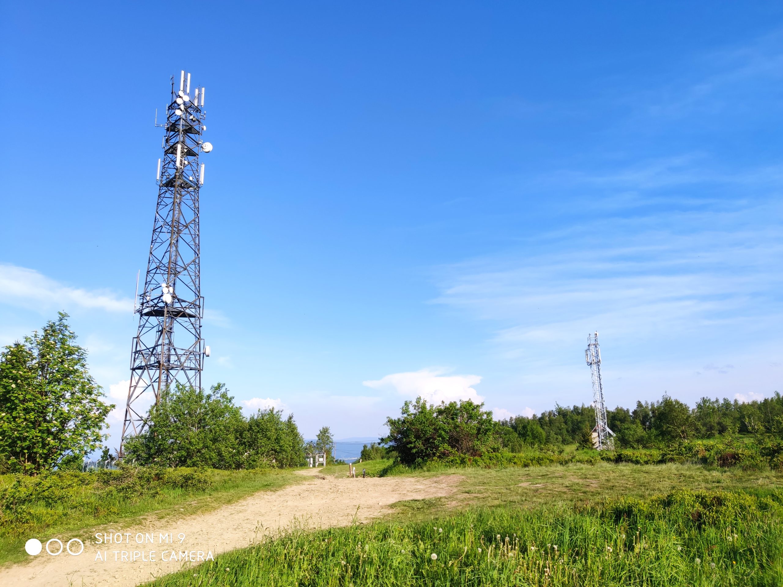 1. Koskowa Góra. Porównanie stacji bazowej Plusa z masztem niewielkich rozmiarów, który wykorzystał Play. Maszt Play na drugim planie