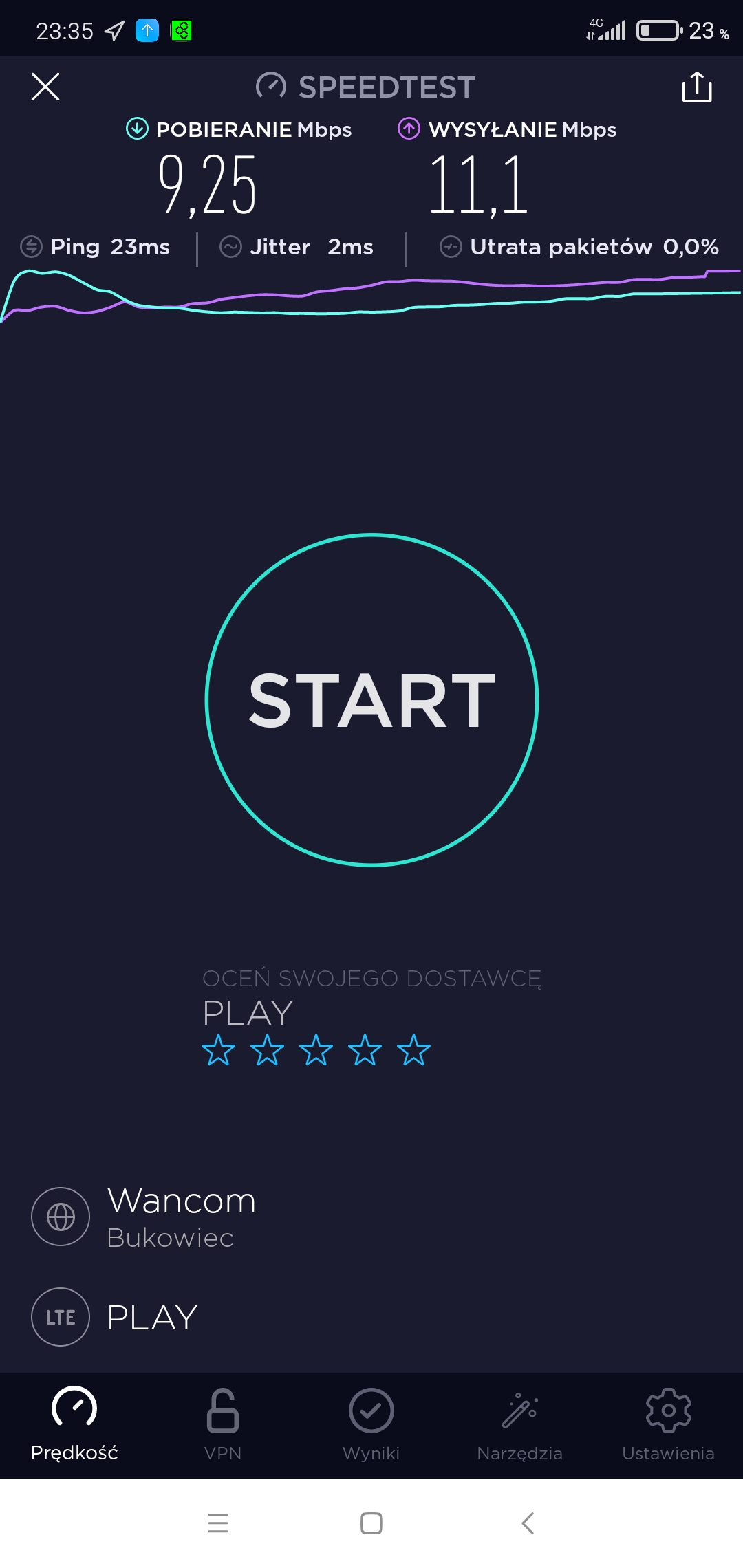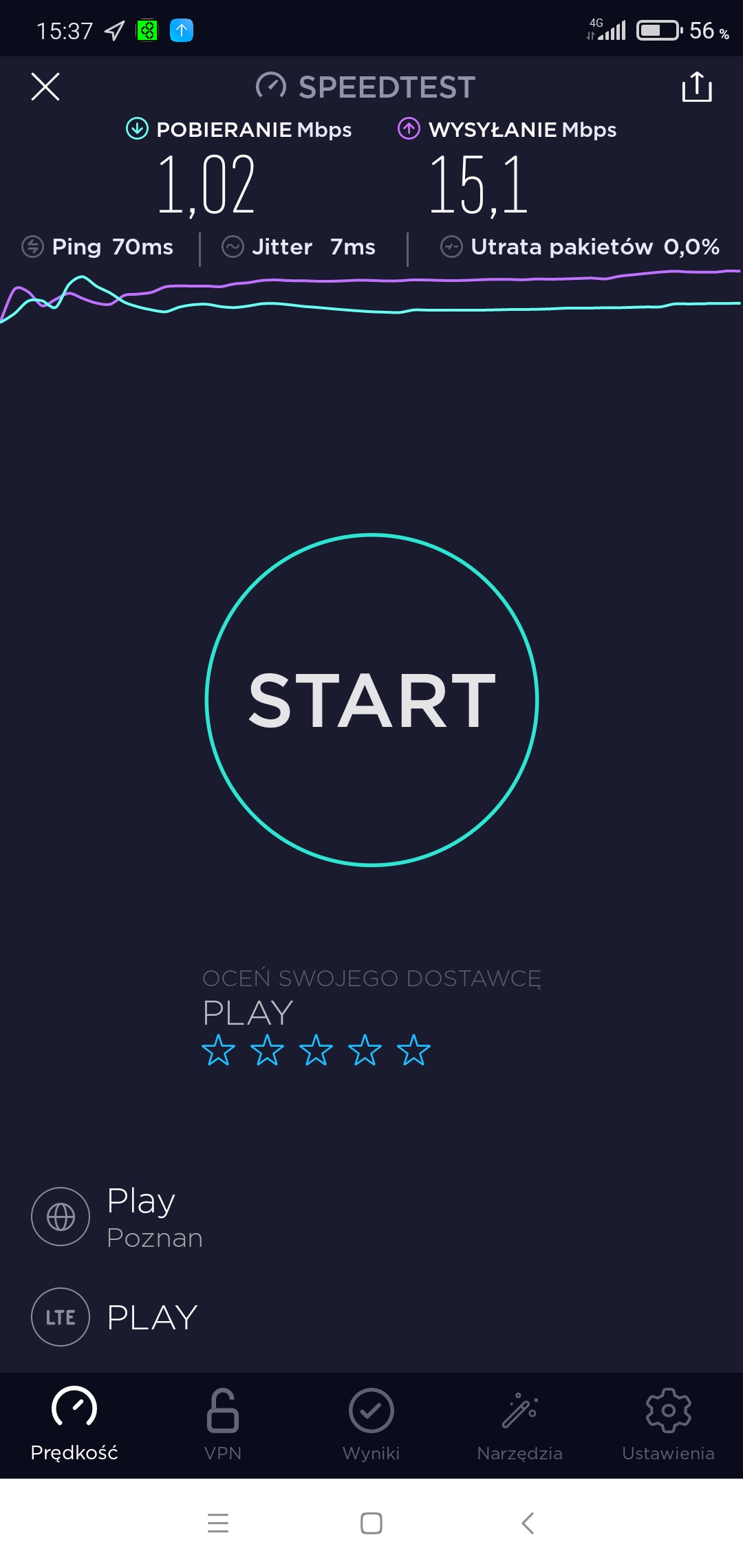 7. Sędzisław (sygnał sieci macierzystej jest niestabilny, w tym terminal losowo przełącza się również do sieci partnerskiej w ramach roamingu krajowego)