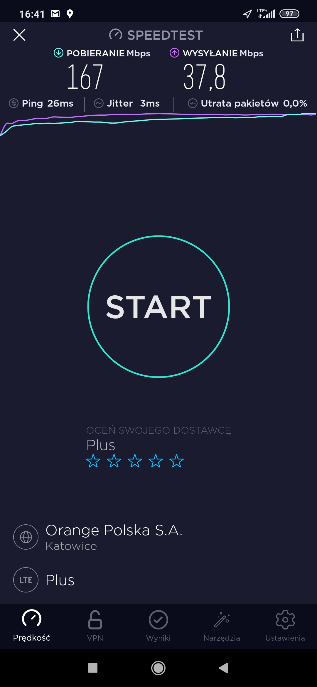 Nad morzem fajnie? Zapraszam na pomiary Plusa do Gdańska, na Chełm 😀 Dno i metr mułu. 7-8 Mbps za dnia, 2-5 Mbps wieczorem – idealne do oglądania filmu na netfliksie 😀 nocami rozpędza się do szalonych 16-20, z wiatrem do 25 Mbps. Liderzy LTE, lol.