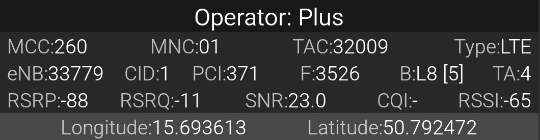 – czcionka standardowa: sygnał sieci LTE