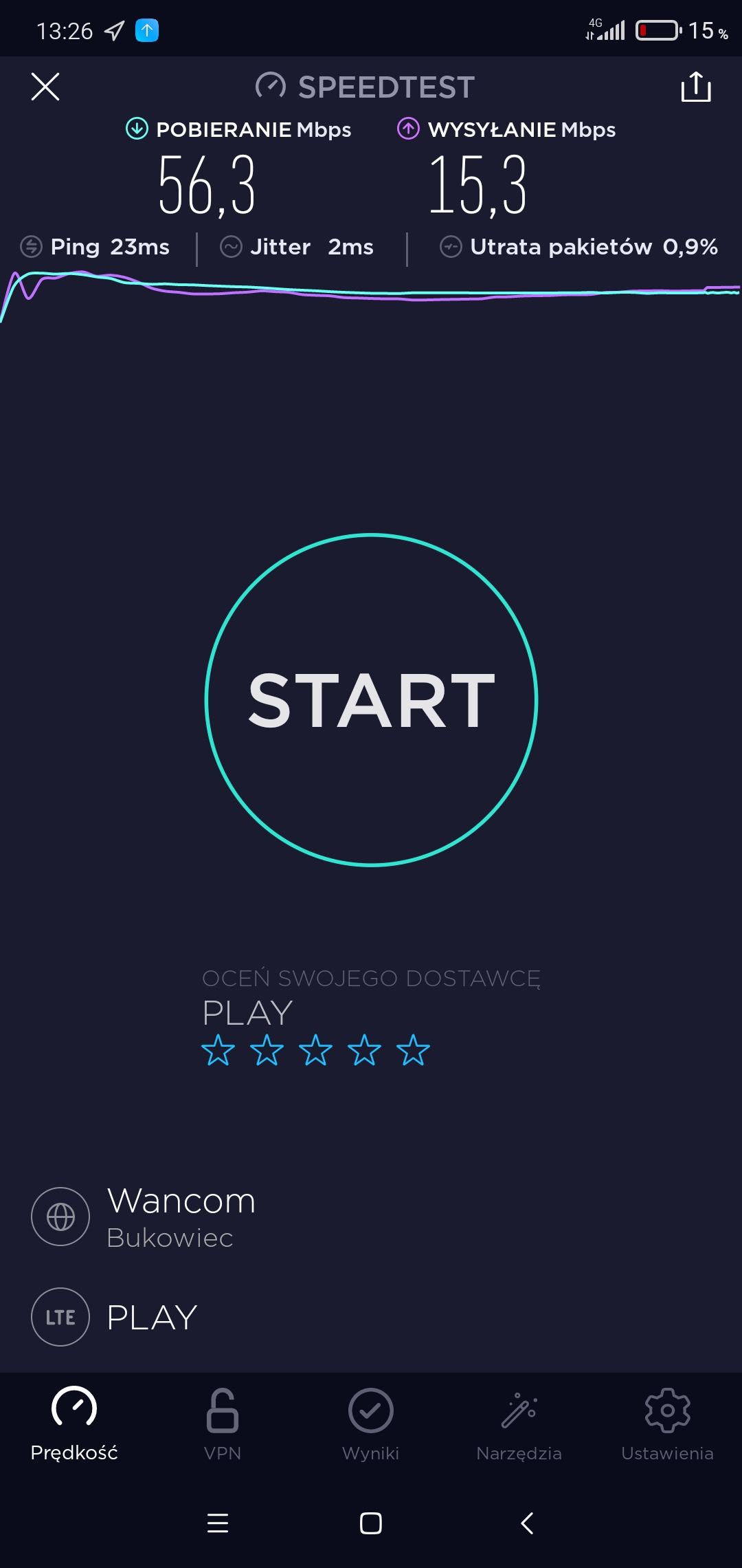 Przejechaliśmy odcinek od śródmieścia Jeleniej Góry po turystyczne Borowice. Przypomnijmy, że Borowice, niemal sąsiadujące z Karpaczem, to nie tylko baza hotelowo-pensjonatowa i punkt wypadowy w Karkonosze, ale również miejsce dla miłośników kultury. Odbywają się tu bowiem coroczne spotkania poezji śpiewanej „Gitarą i Piórem”, a stałą ekspozycją jest lapońska wioska Kalevala, w której możemy zapoznać się ze zwyczajami i kulturą Finów oraz obszarów Laponii. Dzieci mogą mieć dodatkową atrakcję w postaci nakarmienia reniferów, zaś dorośli zobaczyć, jak wygląda prawdziwa, fińska sauna. Właśnie do lapońskiej wioski Kalevala dotarliśmy w dniu wczorajszym, przy okazji weryfikując dostęp do sieci każdego z operatorów. Dane w plikach logów opisano, jak niżej: