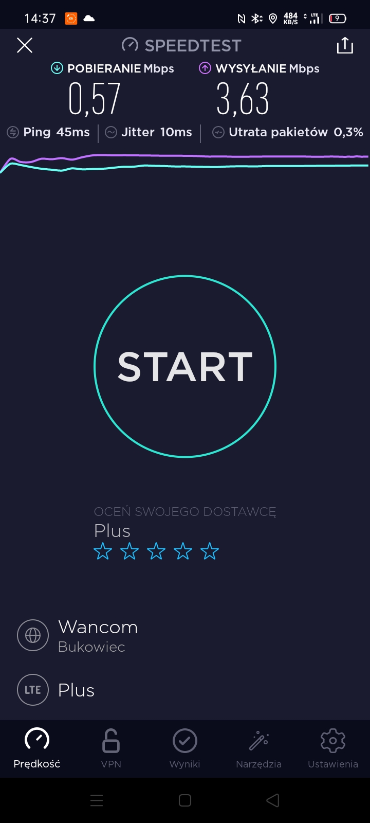 W ostatni weekend odwiedziliśmy piastowski Zamek „Chojnik” w Jeleniej Górze-Sobieszowie. Mimo deszczowej pogody – amatorzy turystyki na szczyt, położony 627 m.n.p.m. nie zrezygnowali. W lokalizacji, o której mowa swoją stację, BT33739 posiada Plus. Stacja w 4G pracuje wyłącznie z LTE900. Brakuje jej czwartego sektora, a ponieważ stanowi swoisty parasol dla choćby losowego łatania braków na azymucie drogi do dzielnicy Jagniątków, w stronę gminnego Podgórzyna oraz tam, gdzie z zasięgiem są problemy nawet na zewnątrz: turystyczne Zachełmie oraz Przesieka – niezłym rozwiązaniem byłoby nawet 8 sektorów, zrealizowanych przy użyciu zestawów antenowych nowego typu, których od jakiegoś czasu używa Polkomtel. Ponieważ prezentowaliśmy jakość transmisji danych z tej stacji także przy okazji kompleksowych testów stacji wszystkich operatorów w Jeleniej Górze i wtedy stacja wypadła bardzo mizernie – liczyliśmy, że od tamtego czasu coś jednak się zmieniło. To, czy tak się stało, czy nie – widać na zrzutach ekranu poniżej.
