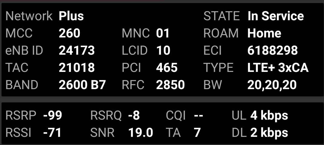 I znowu kolejny raz to samo czyli prędkość pobierania dobra, wysyłanie bardzo słabo tak jak i ping. Przeglądałem sobie wasz test w całym mieście i porównałem to z jedną siecią. Plus wypada dużo gorzej jeśli chodzi o wartość ping i wartość wysyłania. Ta druga powinna być tym bardziej na lepszym poziomie od innych gdyż Plus używa ciągłego bloku 20 MHz w dwóch pasmach co daje teoretycznie możliwość wysyłania z prędkością 75 Mb/s podczas gdy u konkurencji musi być pasmo 2600 MHz i wtedy prędkość wynosi około 56 Mb/s. Oczywiście wartości z 64QAM.