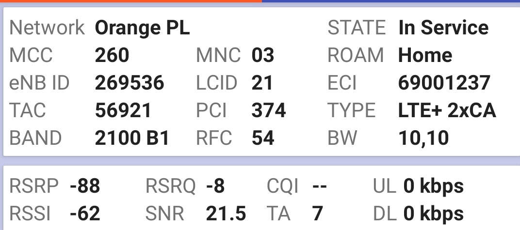 Testy transmisji danych w bezpośredniej, optycznej widoczności stacji Orange i Plusa dały wyniki jak niżej: