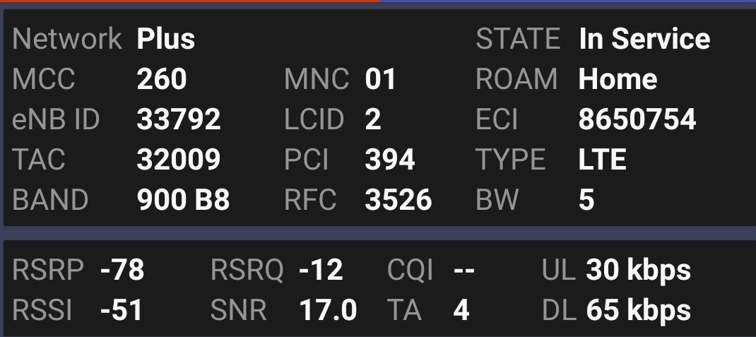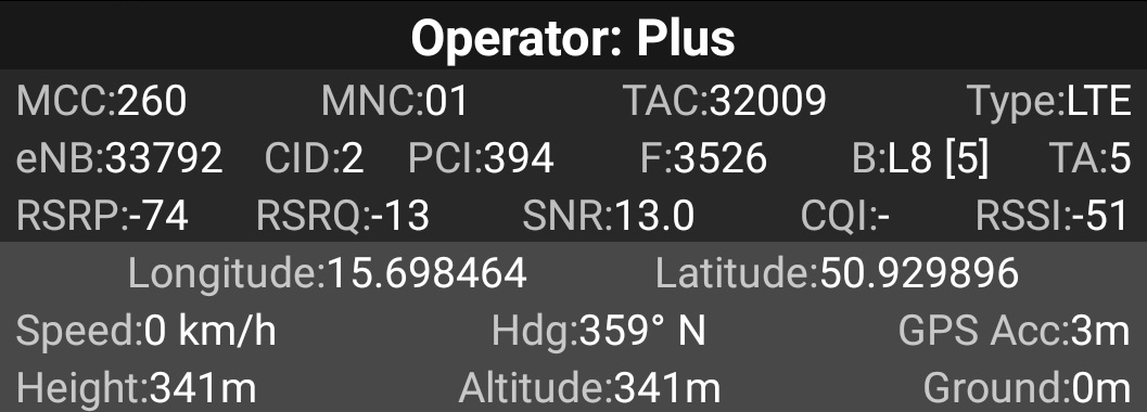 3) Janice: BT33482 (w niej również brakuje czwartego sektora, ale również wnikliwej analizy jakości pracy ze względu na nagłą utratę sygnału Plusa wzdłuż drogi krajowej nr 30 na odcinku od miejscowości Barcinek po granice miejscowości Pasiecznik)