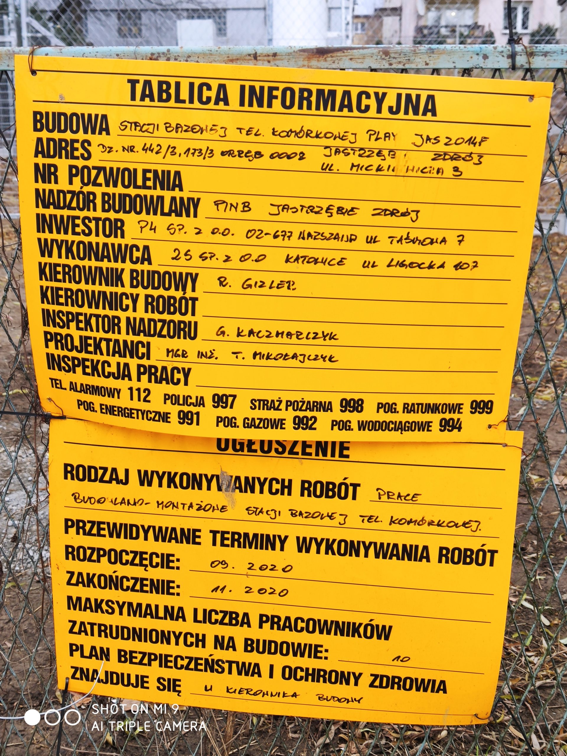Trzeci obiekt, to stacja operatora w Jastrzębiu-Zdroju, przy ul. Mickiewicza 3. Stacja jest nowa. Pracuje: GSM/UMTS900/UMTS2100/LTE1800 i LTE2100
