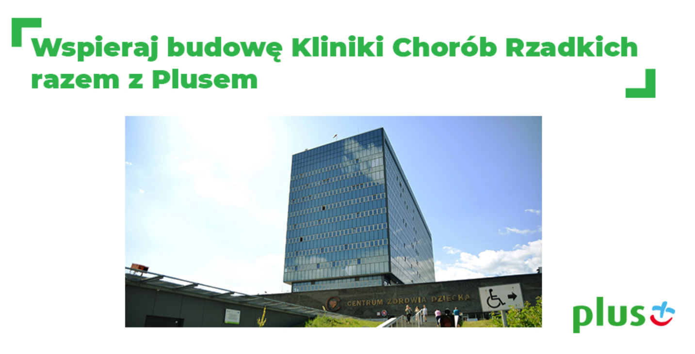 Plus pomaga Fundacji Polsat w budowie jedynej w Polsce Kliniki Chorób Rzadkich. Fundacja Polsat, która od lat wspiera dzieci walczące z chorobami rzadkimi, wybuduje jedyną w Polsce Klinikę Chorób Rzadkich przy Centrum Zdrowia Dziecka w Warszawie. Pomoże w tym operator sieci Plus, który do wpłat na rzecz budowy kliniki dołoży swoją część. Szacuje się, że na choroby rzadkie cierpi 3 miliony Polaków, a zdecydowaną większość chorych stanowią dzieci. Zazwyczaj zmagają się oni nie tylko z bólem czy niepełnosprawnością, ale także z długim czasem oczekiwania na prawidłową diagnozę oraz niewystarczającą opieką lekarską. Często nie stać ich na bardzo drogie leki.