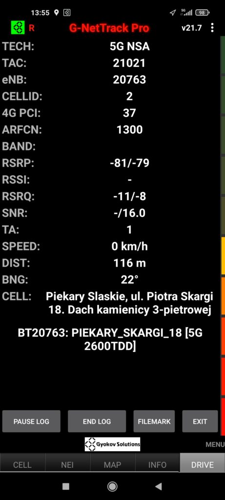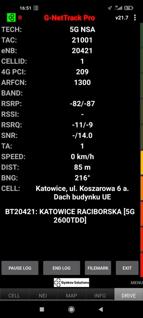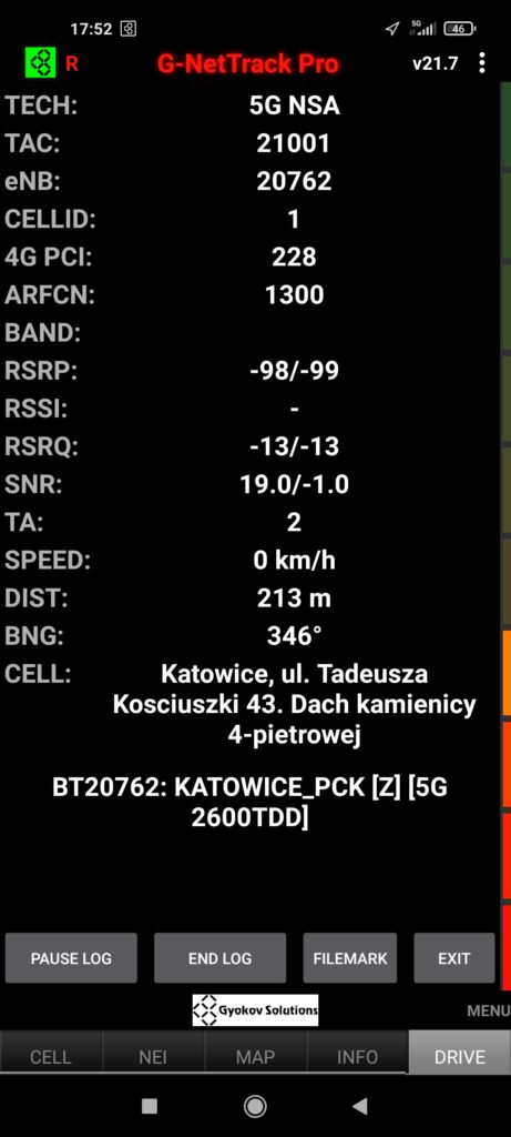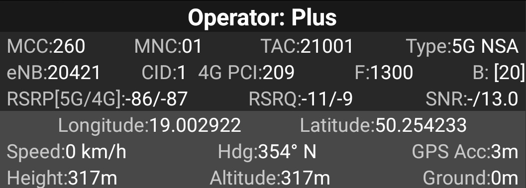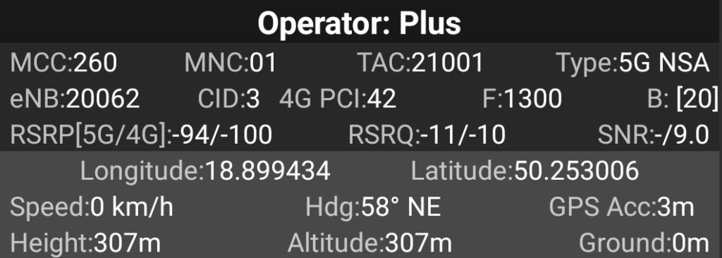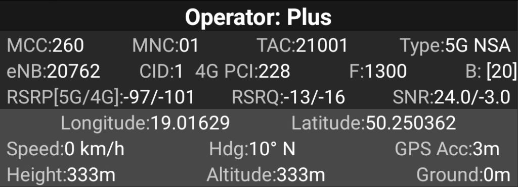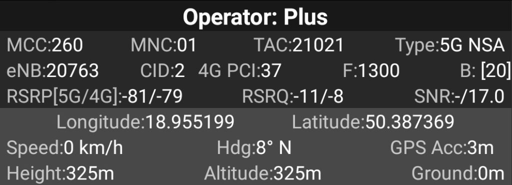 Plus 5G: województwo śląskie. Prezentacja danych z kolejnych stacji