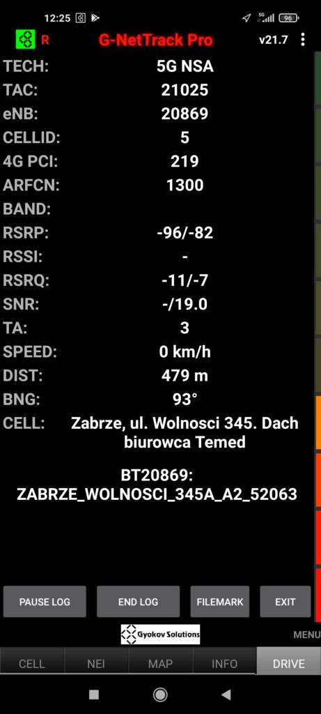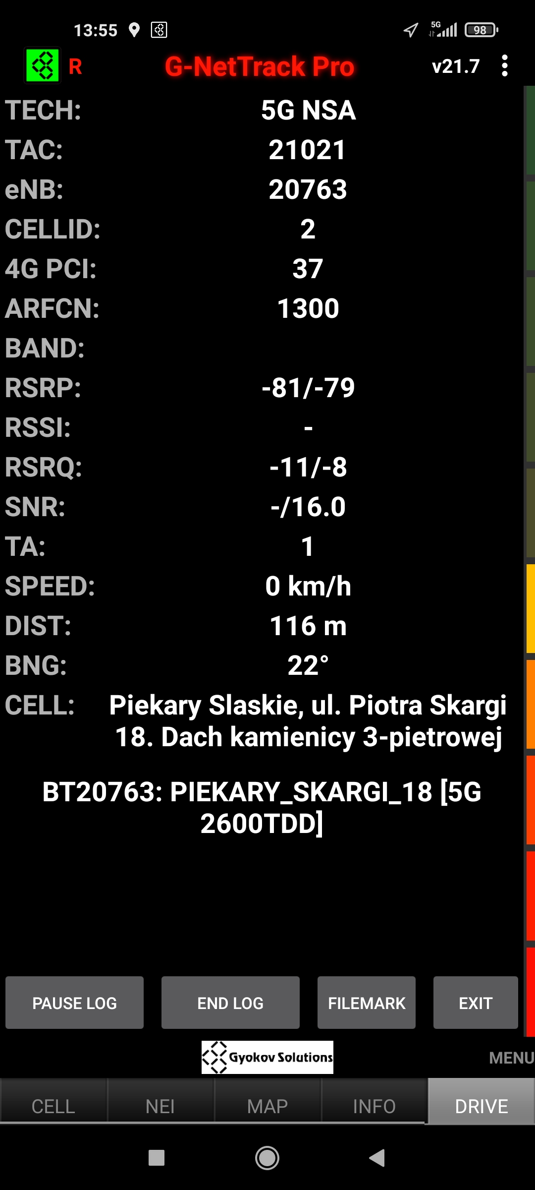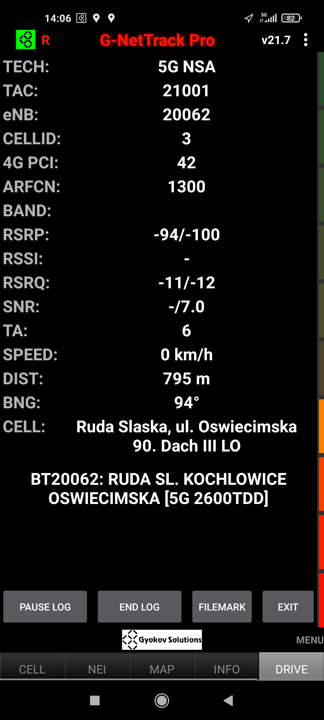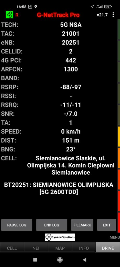 Plus 5G: województwo śląskie. Prezentacja danych z kolejnych stacji