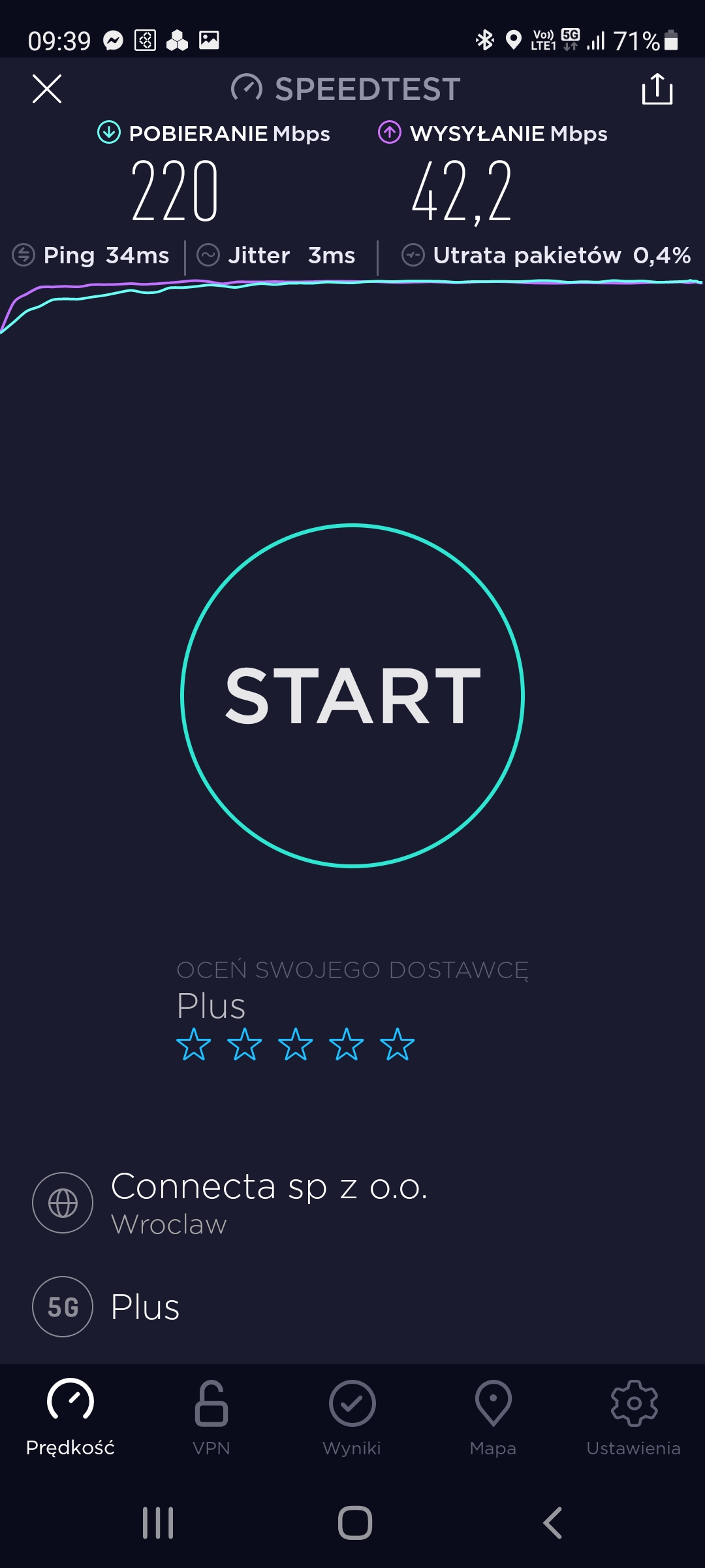 Takie prędkości to na LTE u konkurencji można uzyskać na odpowiednim sprzęcie, a tak niektórzy się wypowiadają, ze 5G Plusa to nowość i coś więcej. Właśnie widać 😉