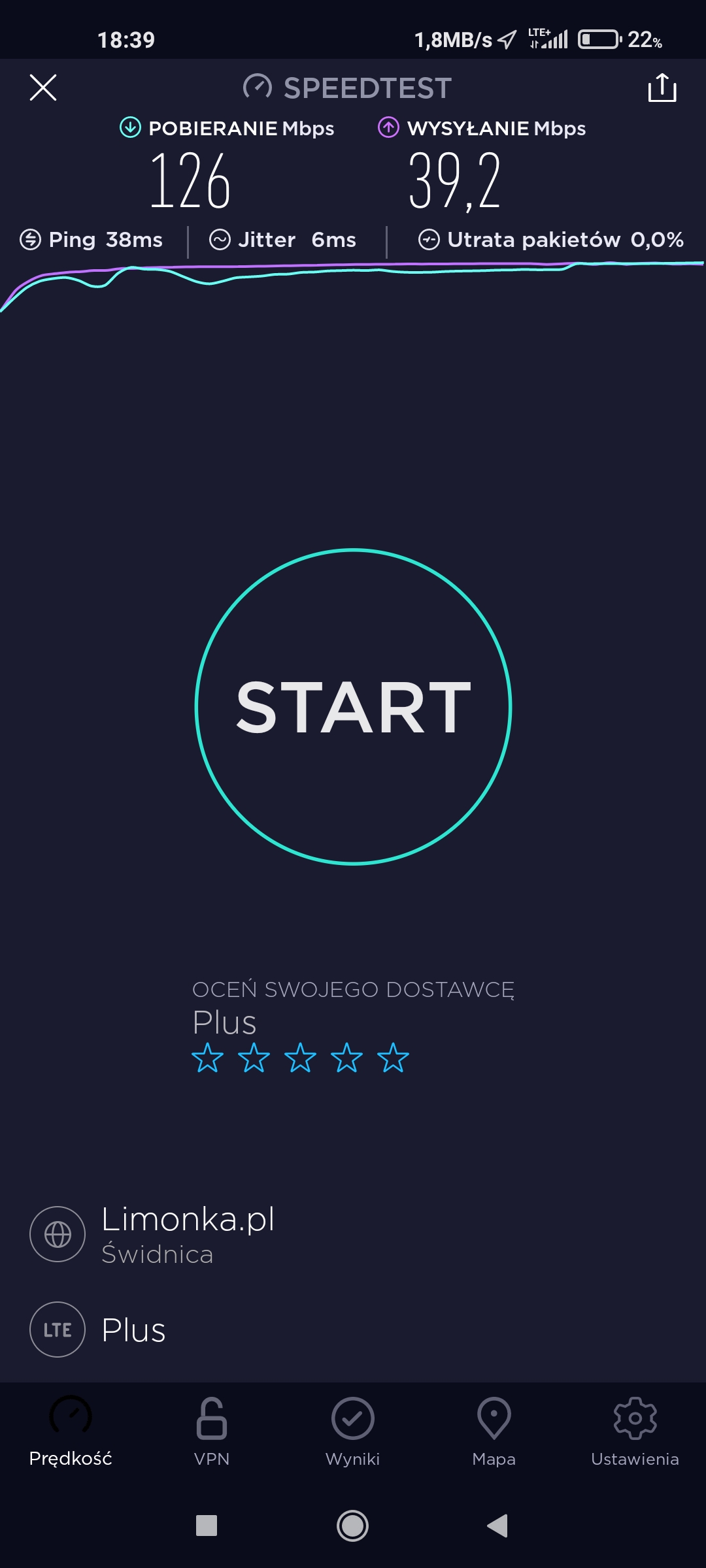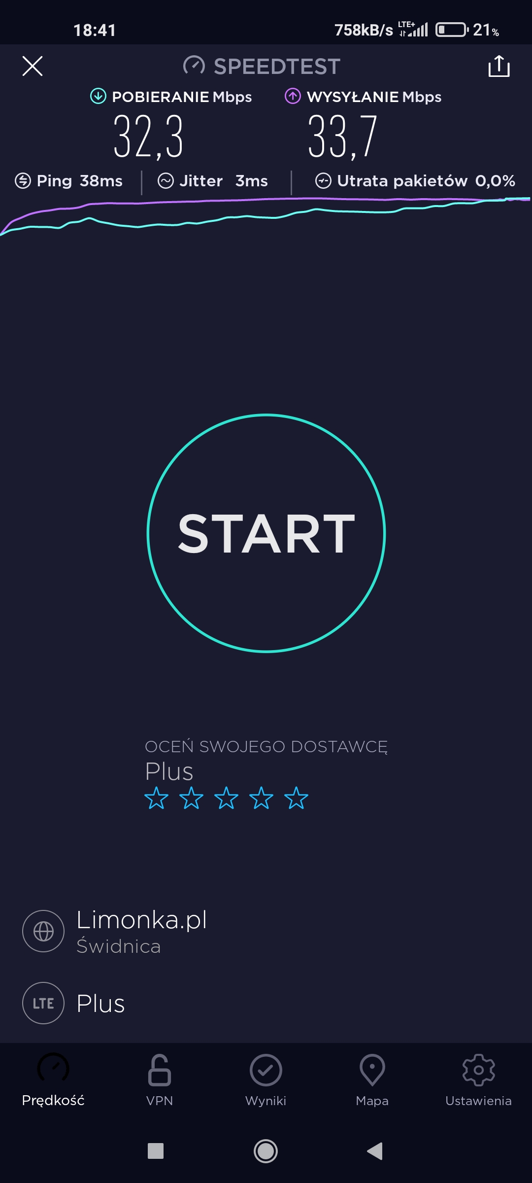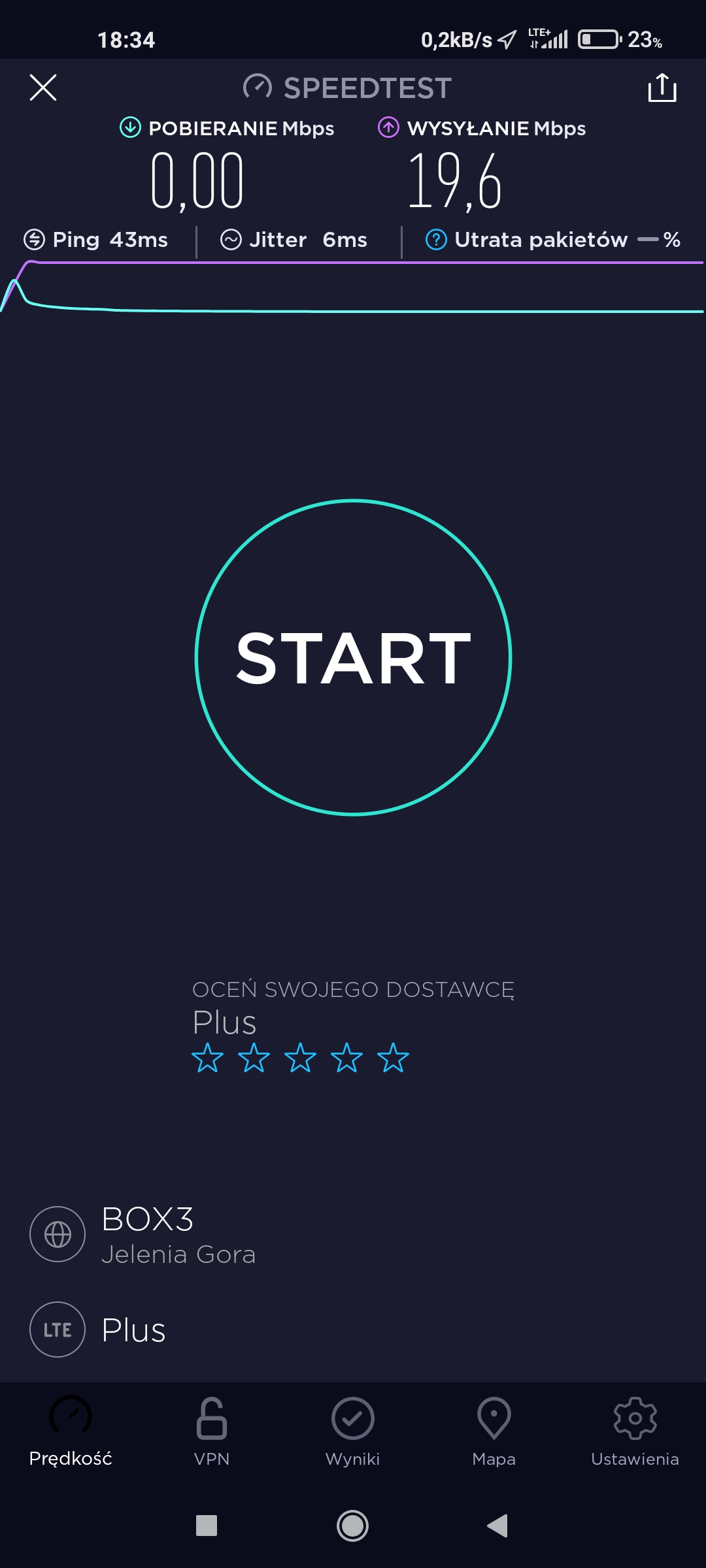 Podczas testów na sektorze trzecim niestety test upload zakończył się wartością ZERO. Transmisja była inicjowana od poziomu kilkudziesięciu kilobajtów po czym się zawieszała i tak było już do finalizacji testu. Z kolei przy upload (co zresztą widać na wykresie) transmisja w górę dochodziła do poziomów około 20Mbps, a następnie całkowicie się zawieszała. Testy powtarzaliśmy kilka razy. Zarówno przy użyciu tego samego serwera testowego, jak również innych. Rezultat zawsze był taki sam. Nawiązując do wykreowanej swego czasu tezy przedstawiciela Plusa pytamy kolejny raz: co się dzieje ze stacjami po modernizacji do 5G?