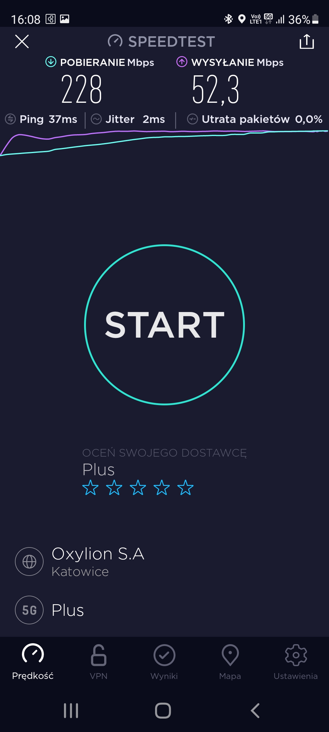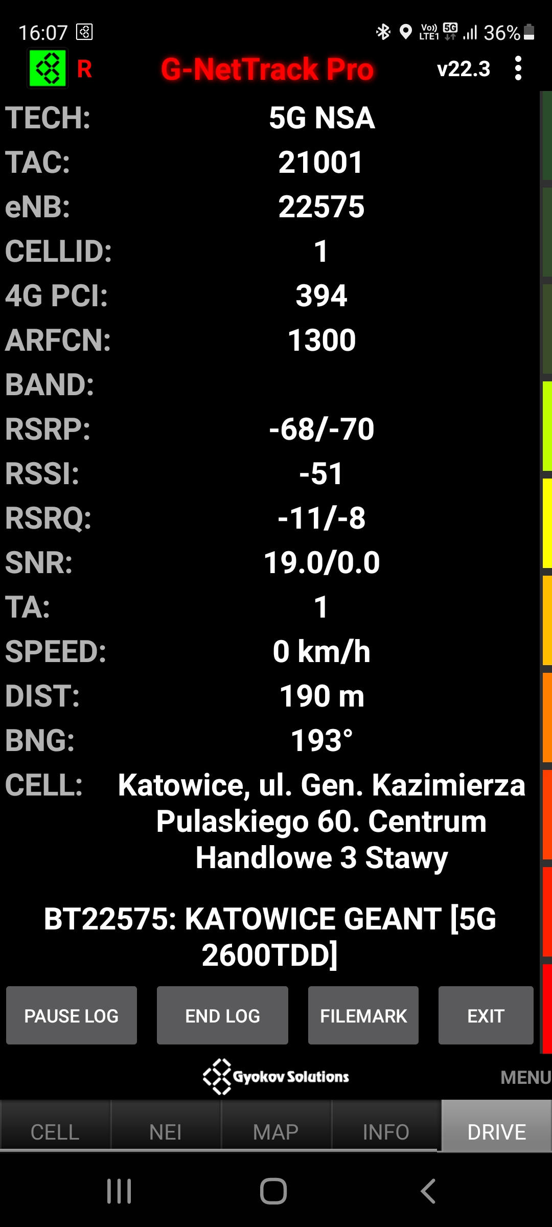 Prezentujemy jakość transmisji danych w segmencie 5G dla stacji Plusa o kodowym numerze BT-22575. Lokalizacja, to Katowice, ul. Pułaskiego 60. Pracują w niej: GSM900/DCS/UMTS2100/LTE1800 na trzech sektorach oraz UMTS900 i LTE900 na dwóch sektorach. Ponadto, oczywiście 5G, o którą to technologię stacja została rozszerzona w ostatnim czasie