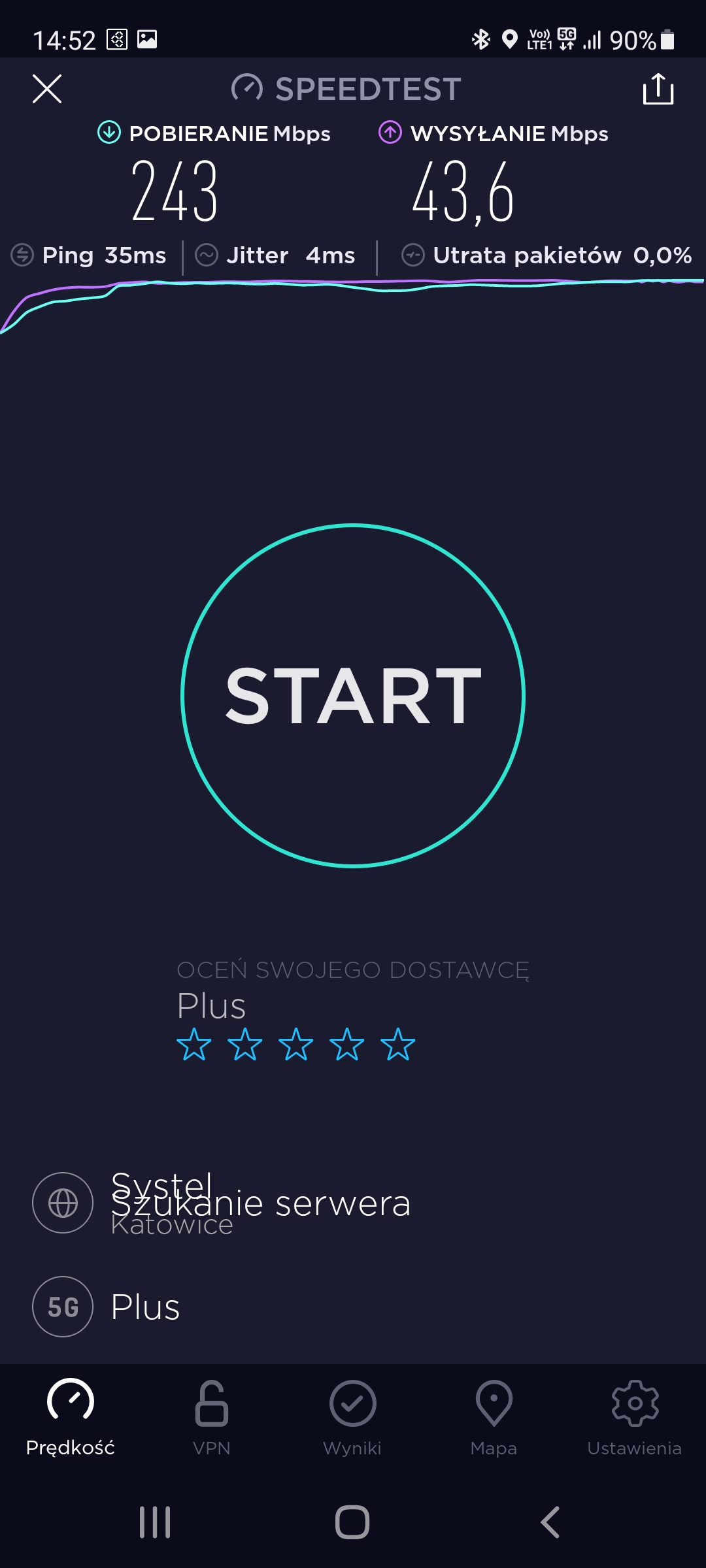 Prezentujemy jakość transmisji danych w segmentach LTE oraz 5G dla stacji Plusa o kodowej nazwie BT-24824 Piekary Śląskie. Stacja zlokalizowana jest przy ul. Generała Ziętka. Obiekt, to komin EC. W lokalizacji, o której mowa pracują również stacje pozostałych konkurentów