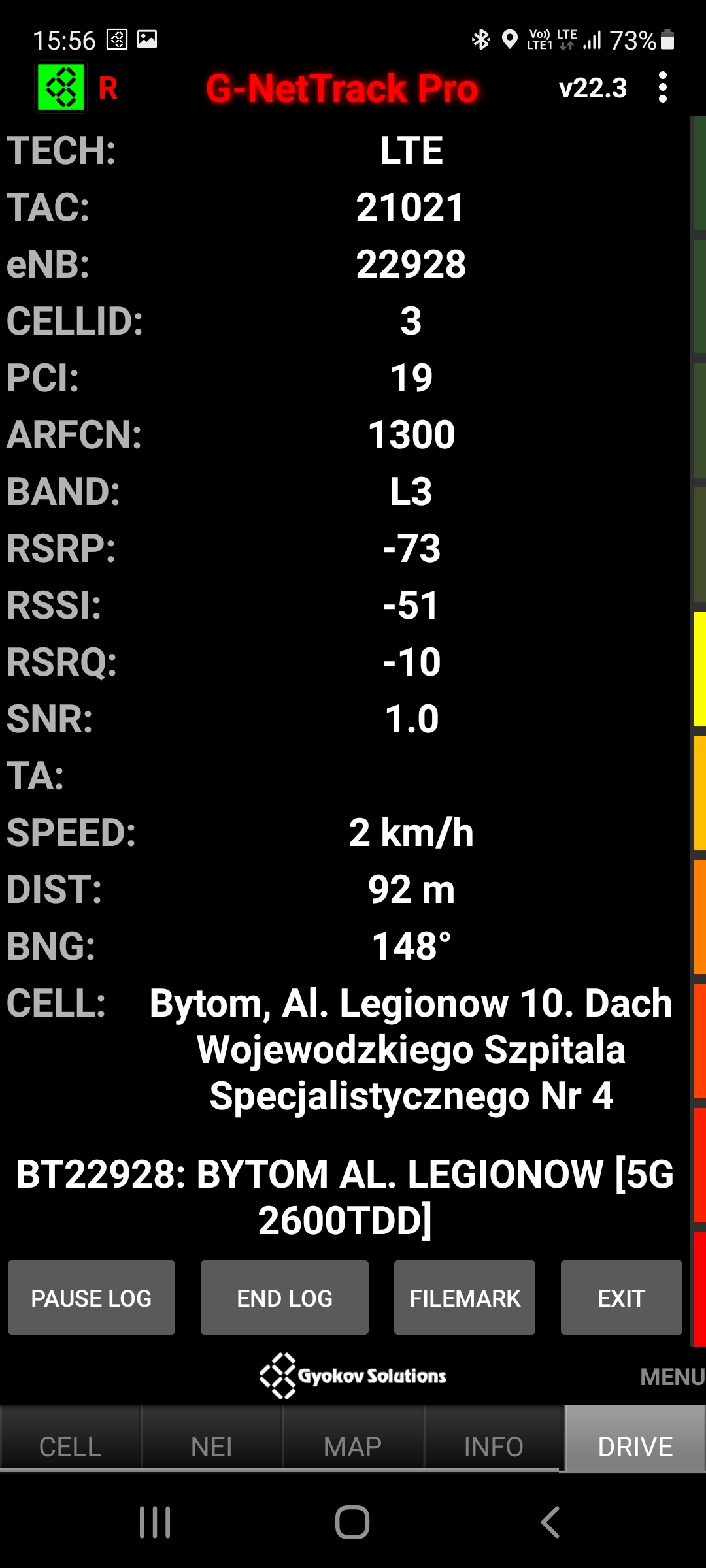 Prezentujemy jakość transmisji danych w stacji Plusa o kodowej nazwie BT-22928 Bytom Al. Legionów, zlokalizowanej na dachu budynku szpitala specjalistycznego przy Alei Legionów 10 w śląskim Bytomiu.