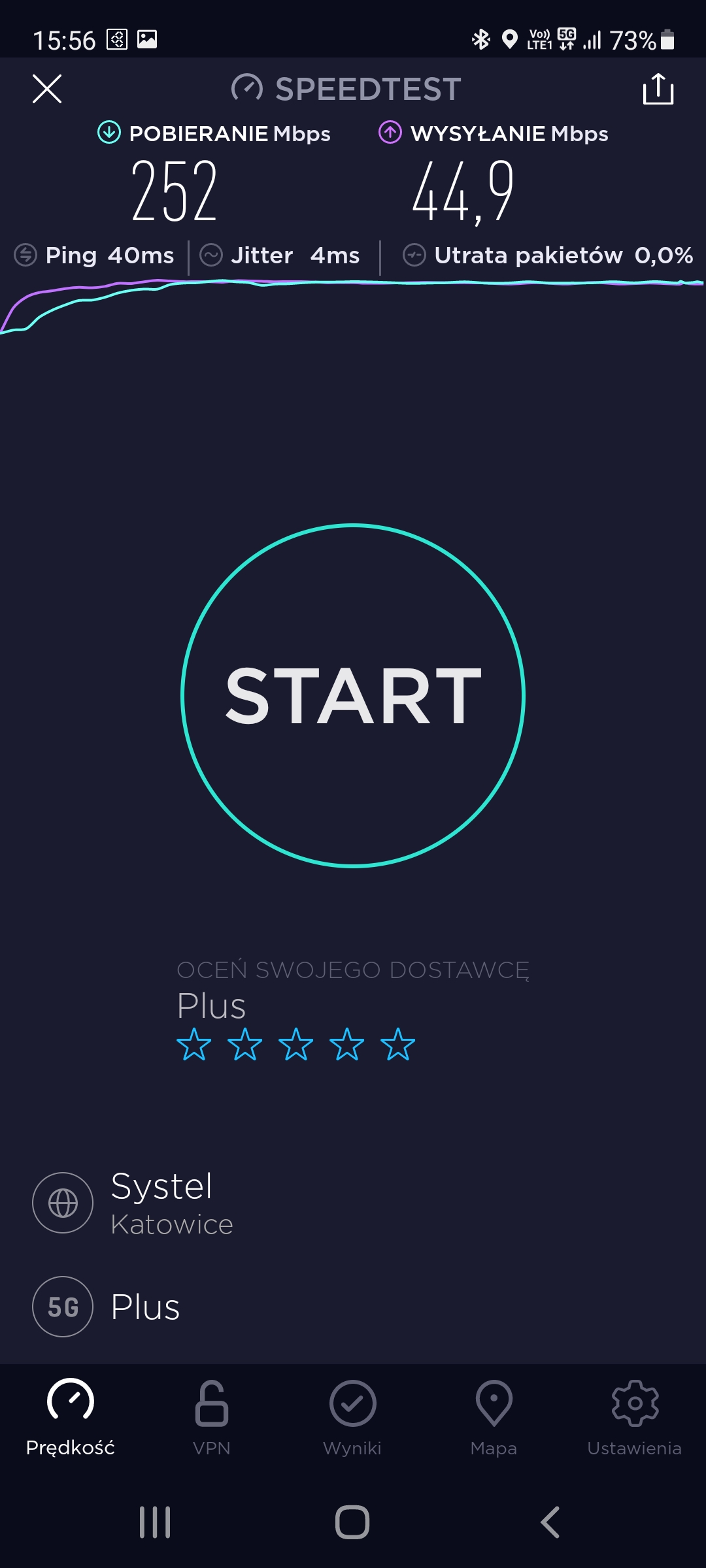 Zweryfikowane poziomy transmisji danych w segmentach 4G i 5G poniżej:
