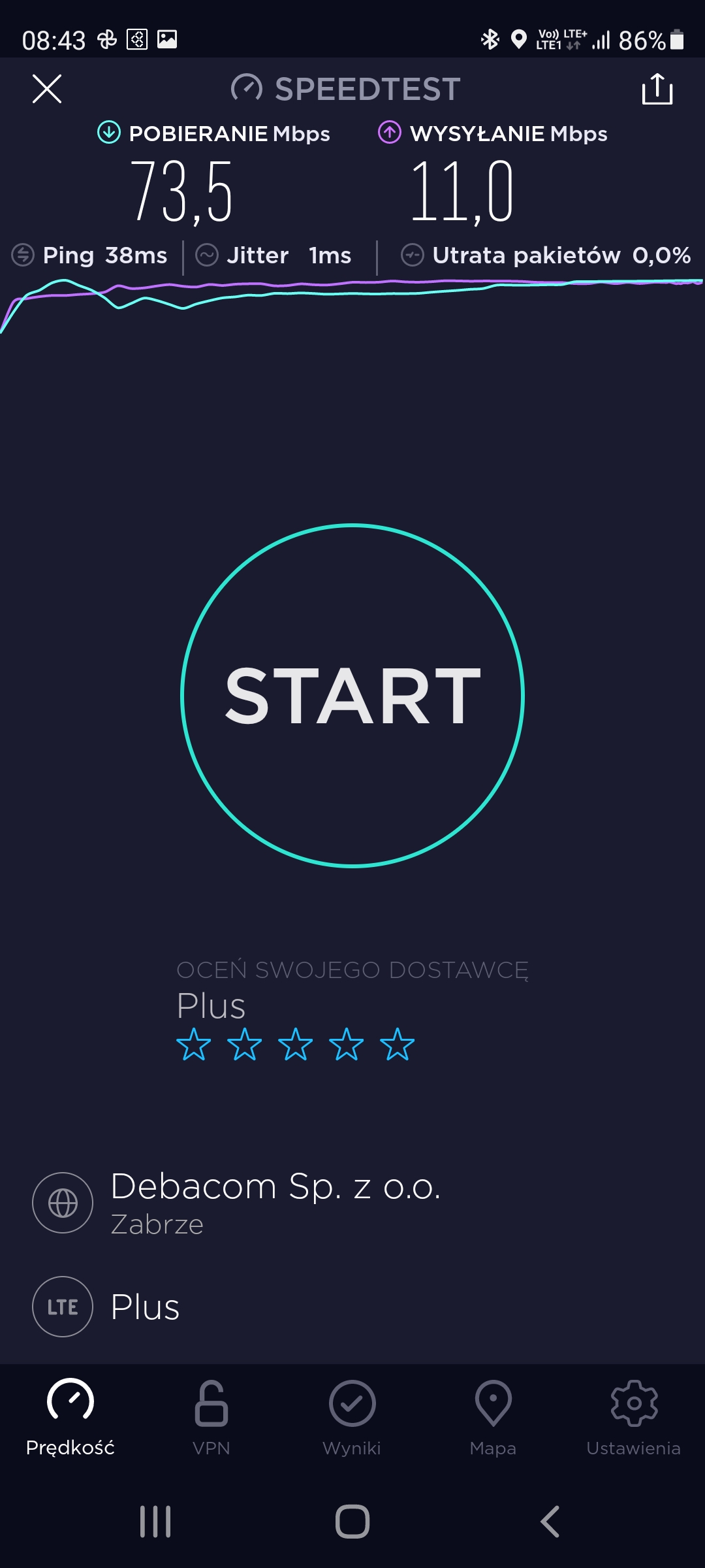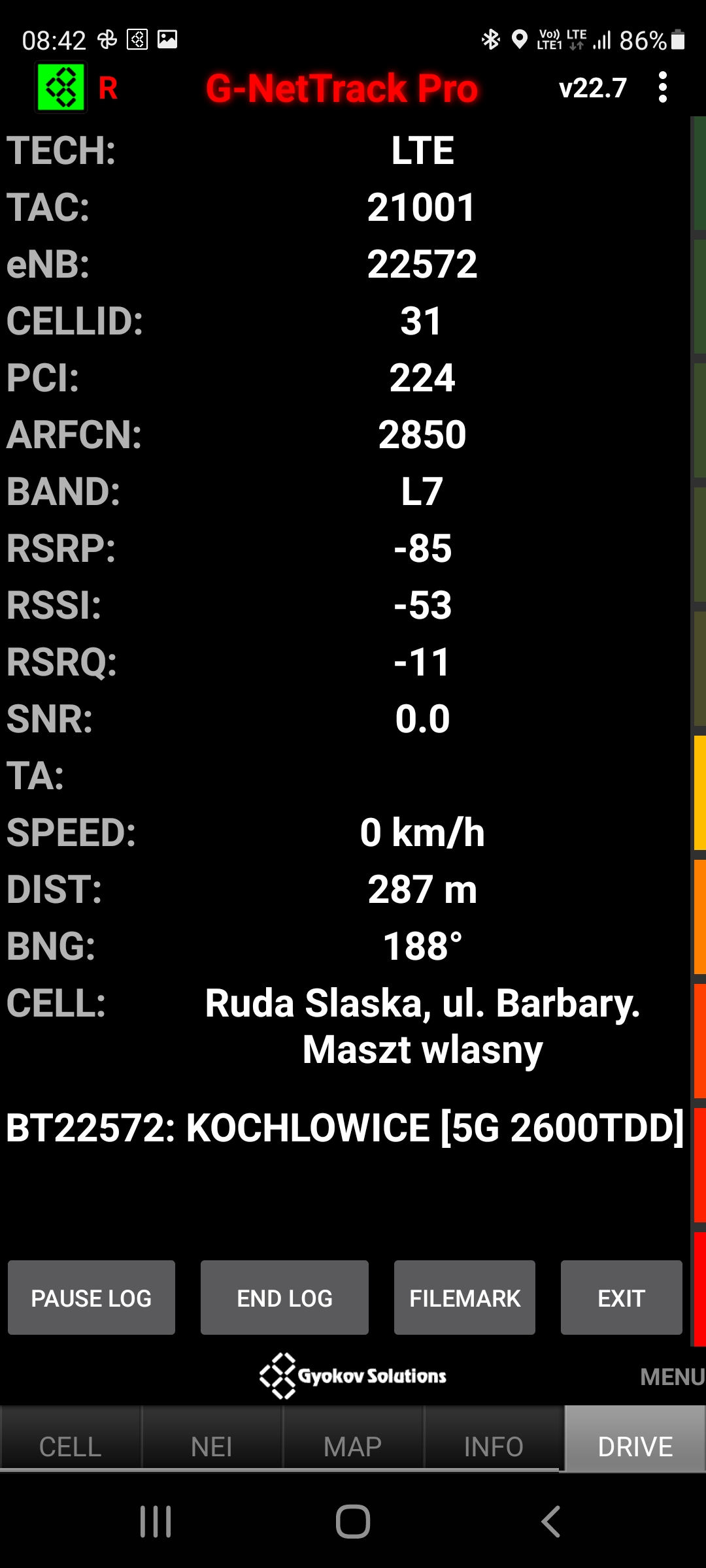 Prezentujemy jakość transmisji danych w segmentach LTE oraz 5G w stacji Plusa o kodowej nazwie BT-22572 Ruda Śląska Kochłowice. Lokalizacja: Ruda Śląska, ul. Barbary, maszt własny