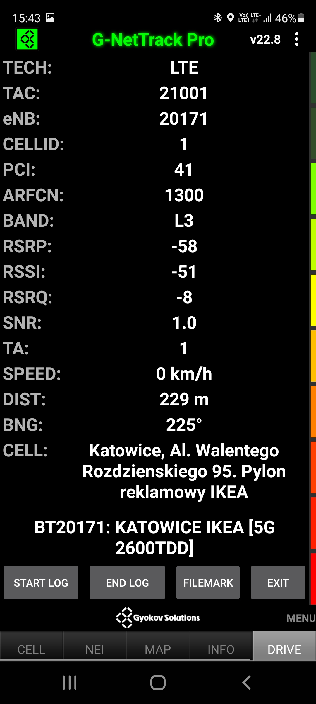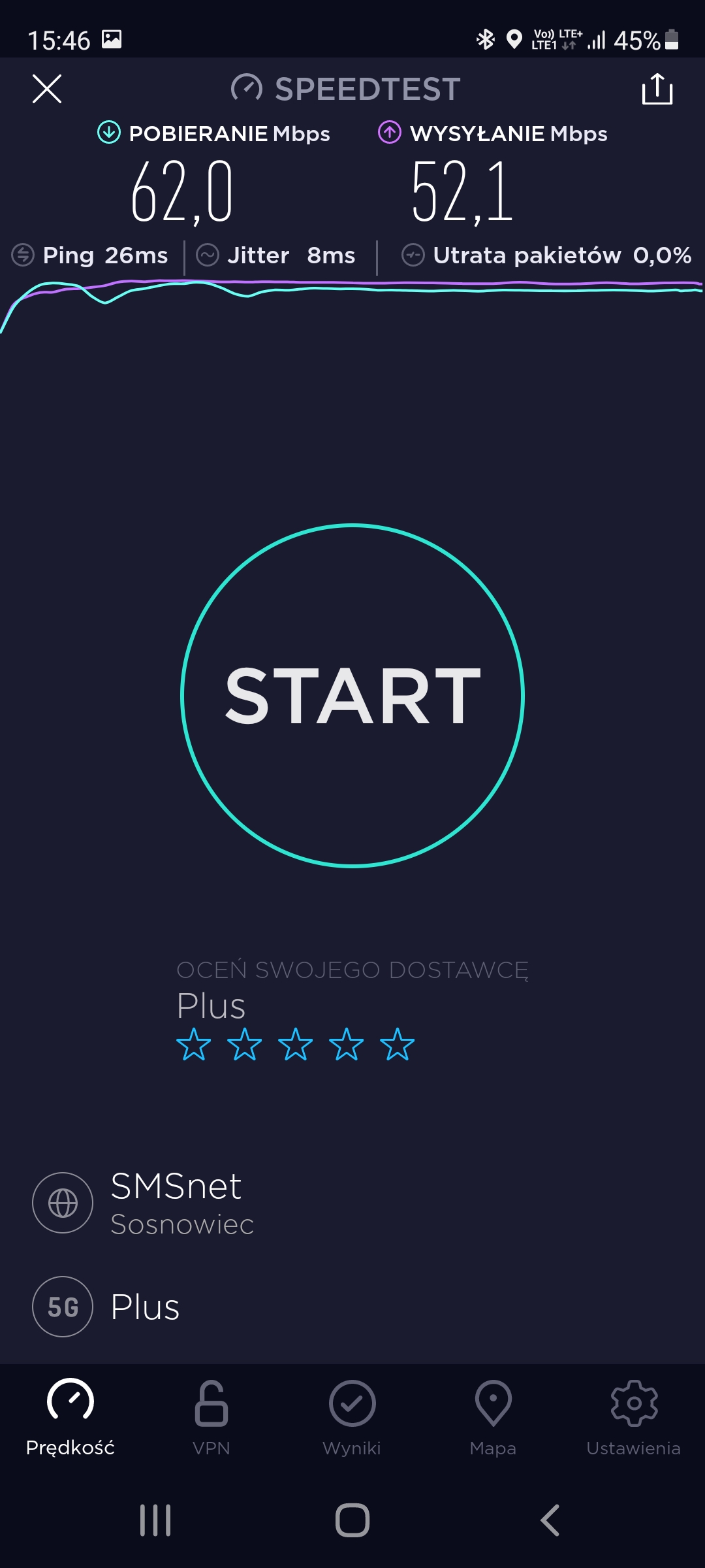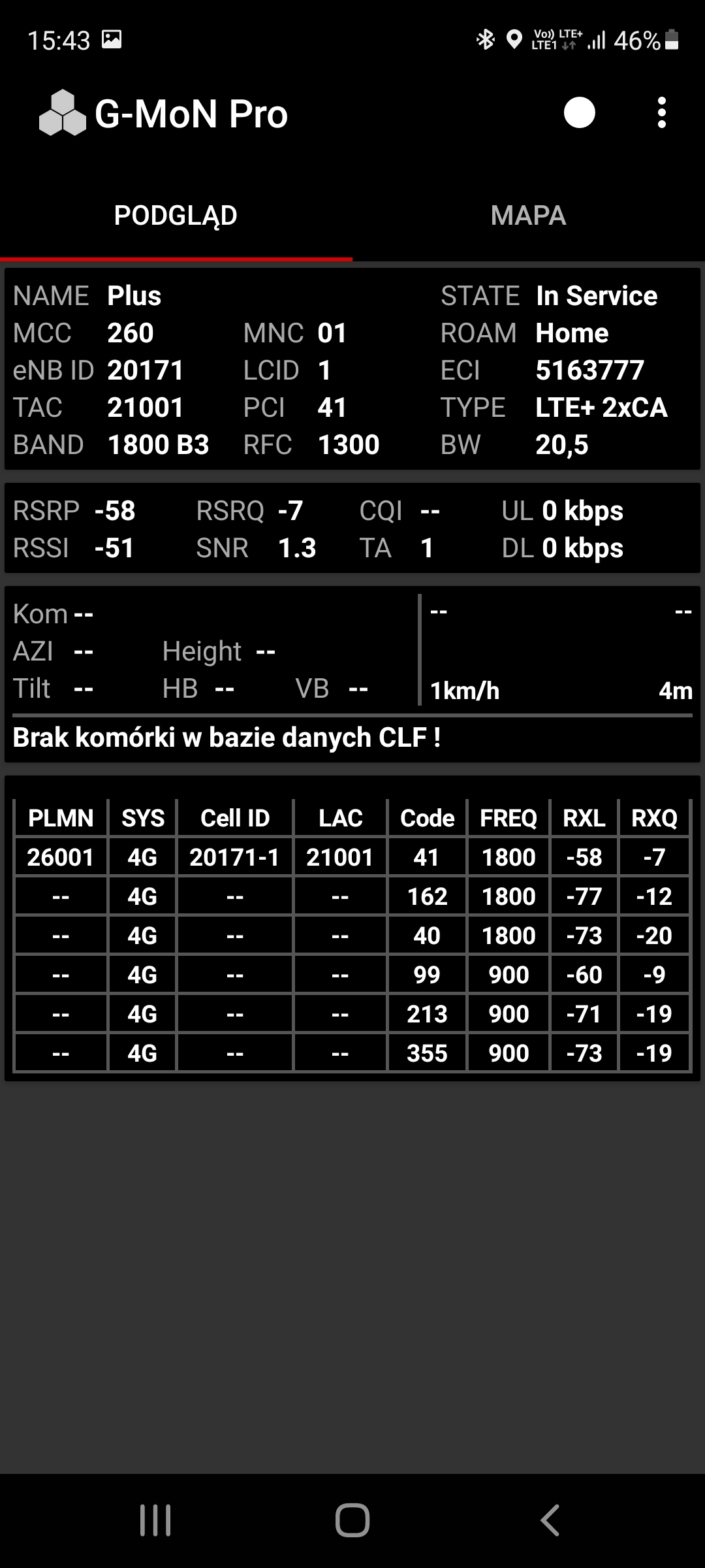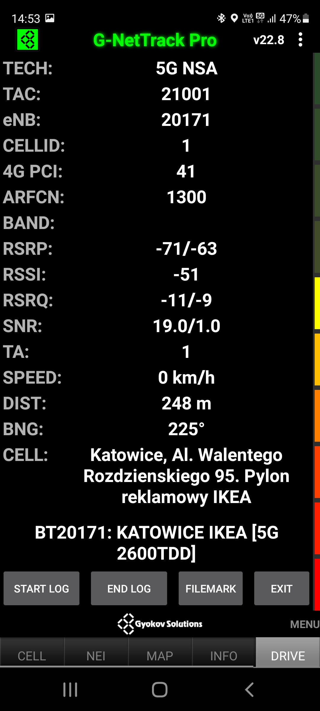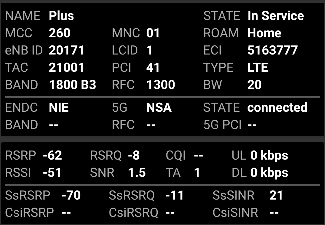 Prezentujemy jakość transmisji danych dla stacji sieci Plus, rozszerzonej do 5G o kodowym numerze BT-20171 Katowice Roździeńskiego. Obiekt: pylon reklamowy. Poniżej wyniki dla segmentu LTE oraz 5G NSA 2600TDD: