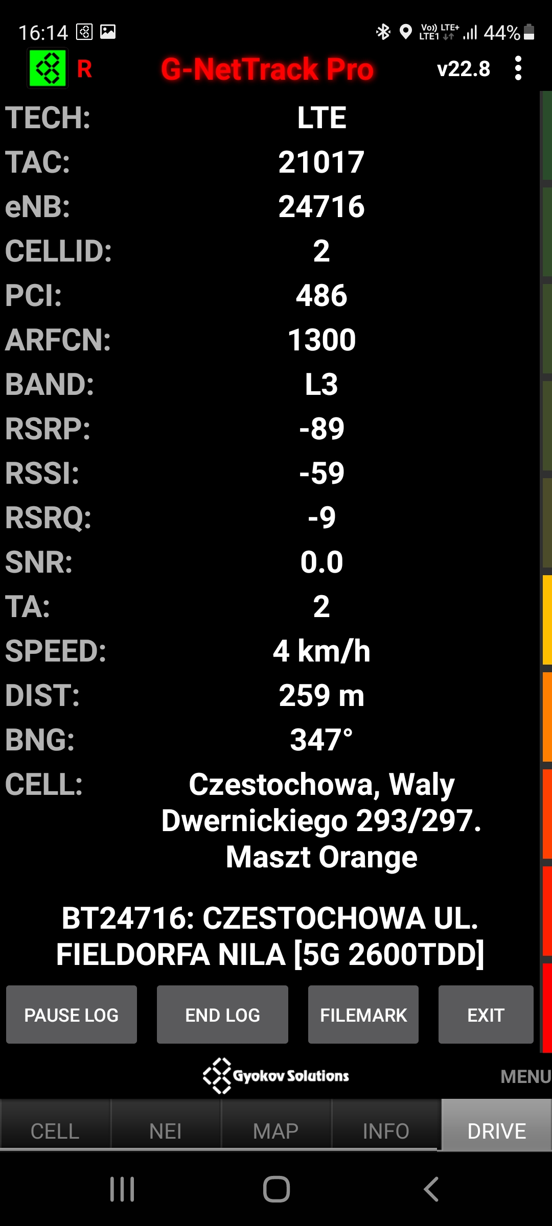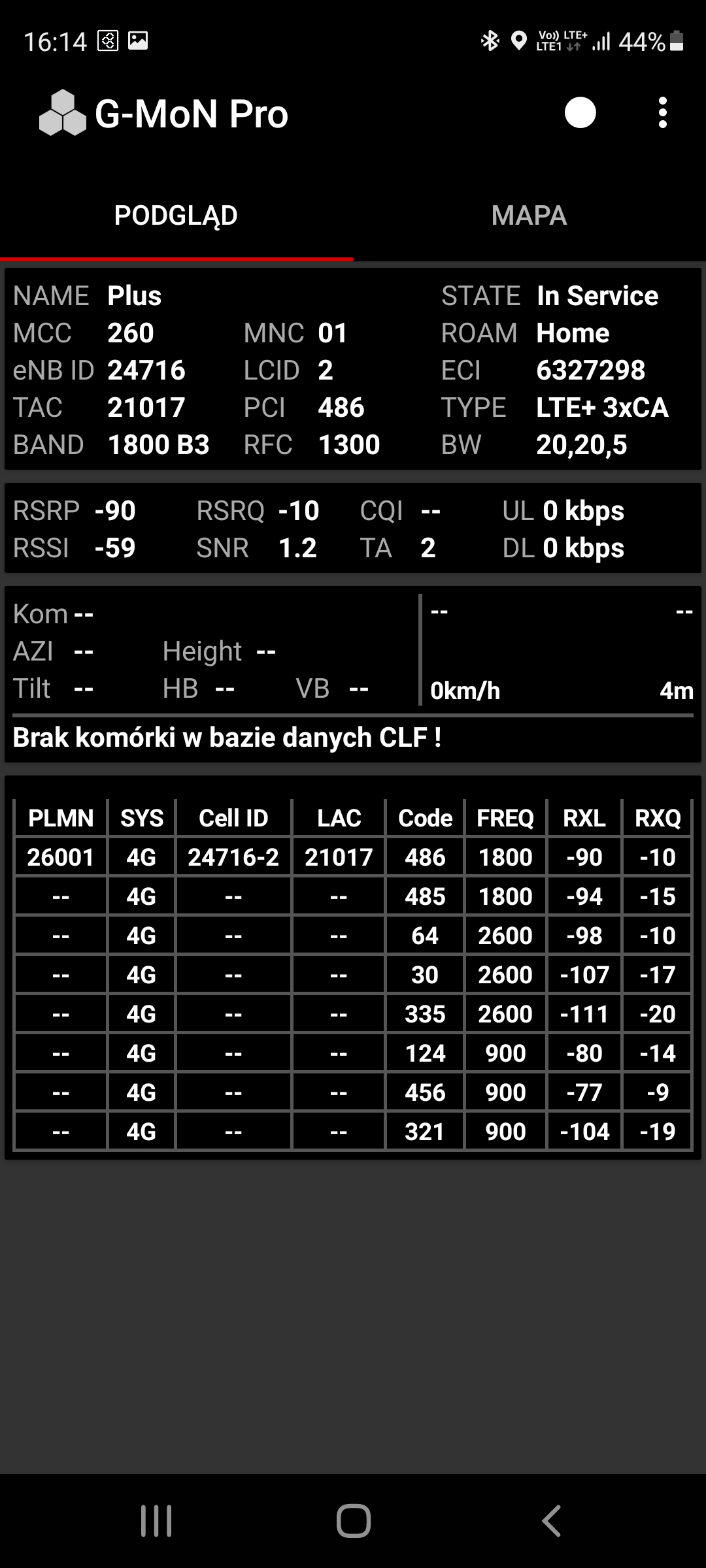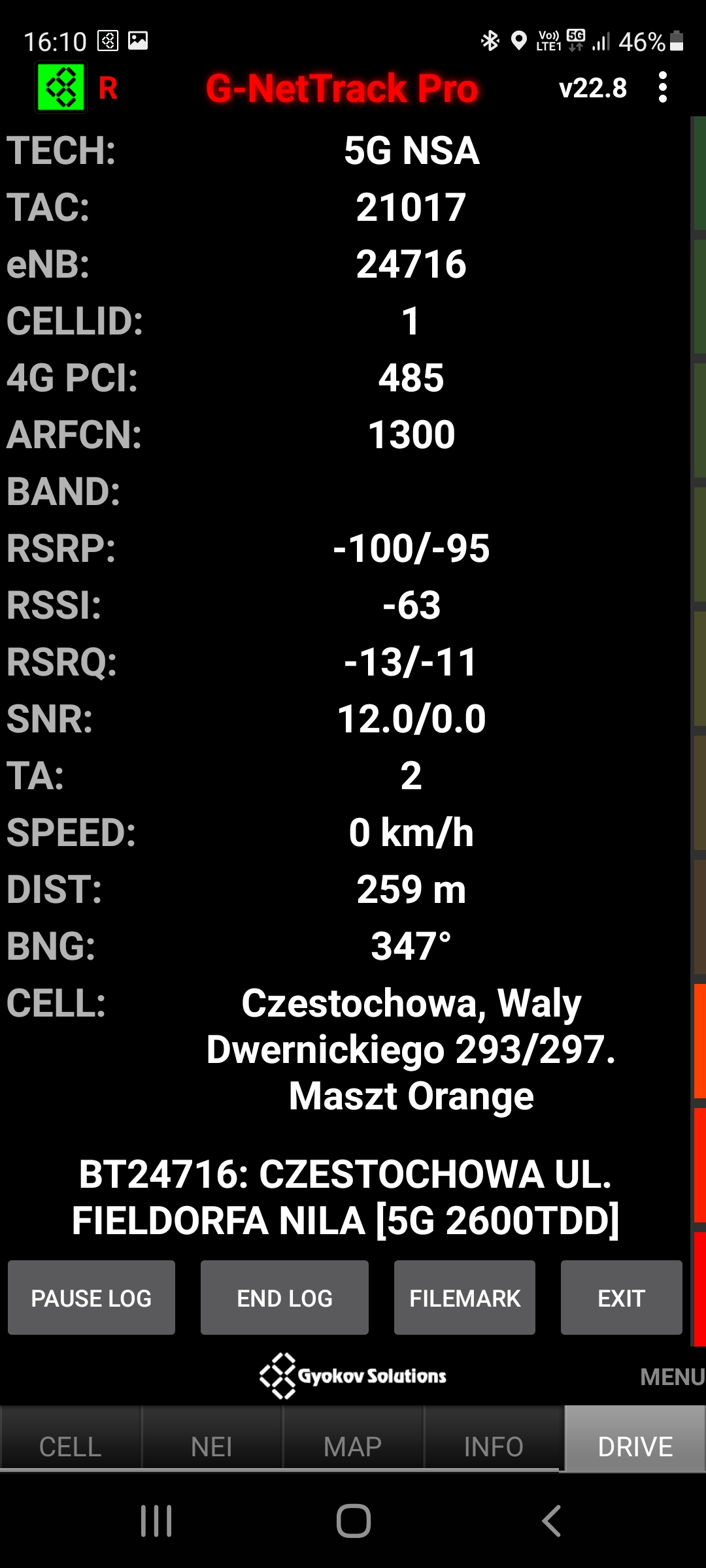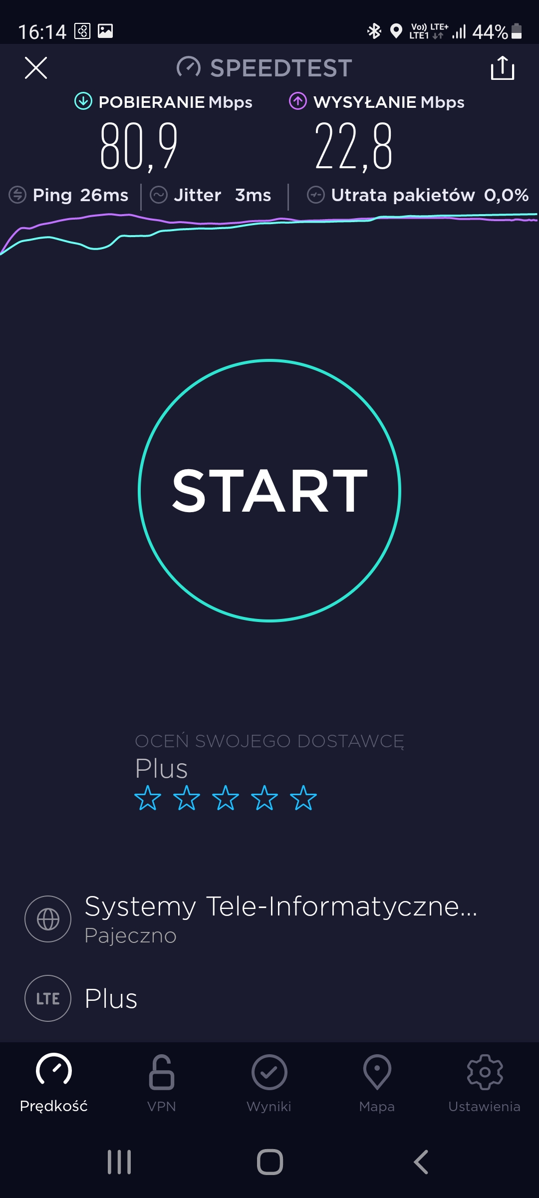 Prezentujemy jakość transmisji danych dla stacji sieci Plus, o kodowej nazwie BT-24716, zlokalizowanej w Częstochowie, przy ul. Dwernickiego na maszcie Orange. Co oczywiste, oprócz Plusa w tej lokalizacji pracują stacje dwóch globalnych konkurentów. Zaznaczając zaś, że głównym celem naszych testów są pomiary w segmencie 5G – warto wspomnieć, że podobnie jak w innych lokalizacjach, do których dotarliśmy w Częstochowie – tak i tutaj – prędkości transmisji danych w segmencie 5G nie powalają. Podobnie jest w segmencie LTE, gdzie 45MHz agregowanego pasma daje wyniki o dość wątpliwej jakości