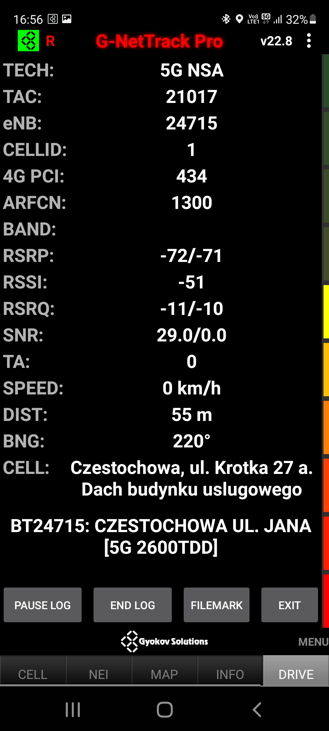 Prezentujemy jakość transmisji danych dla kolejnej stacji Plusa w Częstochowie. Bieżąca stacja, to BT-24715, zlokalizowana w Częstochowie przy ul. Krótkiej. Podobnie, jak we wcześniejszych informacjach – dane dotyczą obu segmentów, istotnych dla transmisji, czyli: 4G i 5G. Z zaniepokojeniem odnotowujemy w Częstochowie zjawisko podobne do tego, które po uruchomieniu 5G notowaliśmy w Jeleniej Górze, czyli w sporej ilości stacji marne poziomy jakości internetu mobilnego w segmencie LTE. Stacja BT-24715 jest kolejną, w której wyniki download i upload LTE mocno zastanawiają