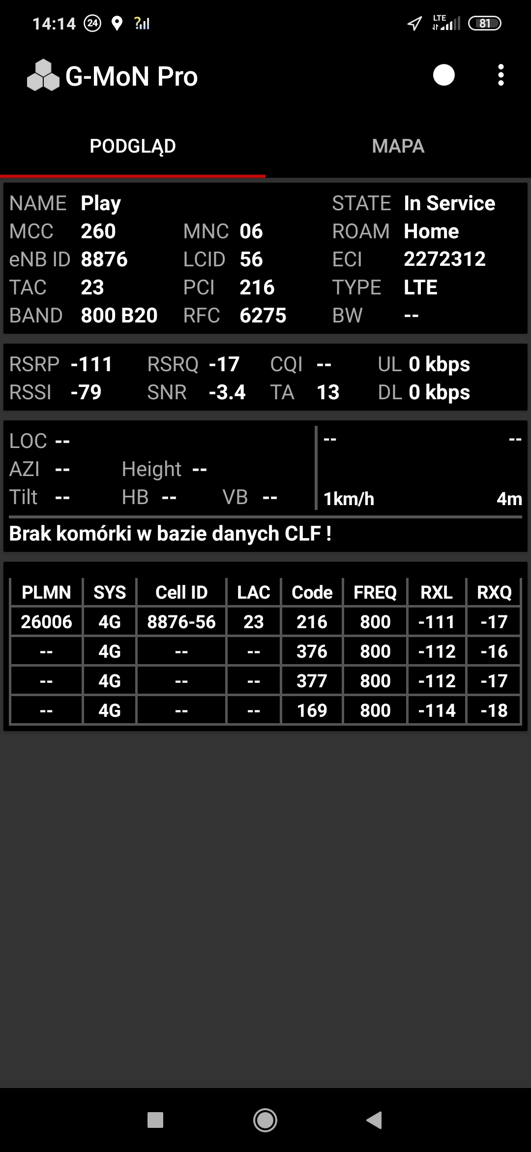 2. Play (jakość sygnału była tak słaba, że terminal nie załączył agregacji)
