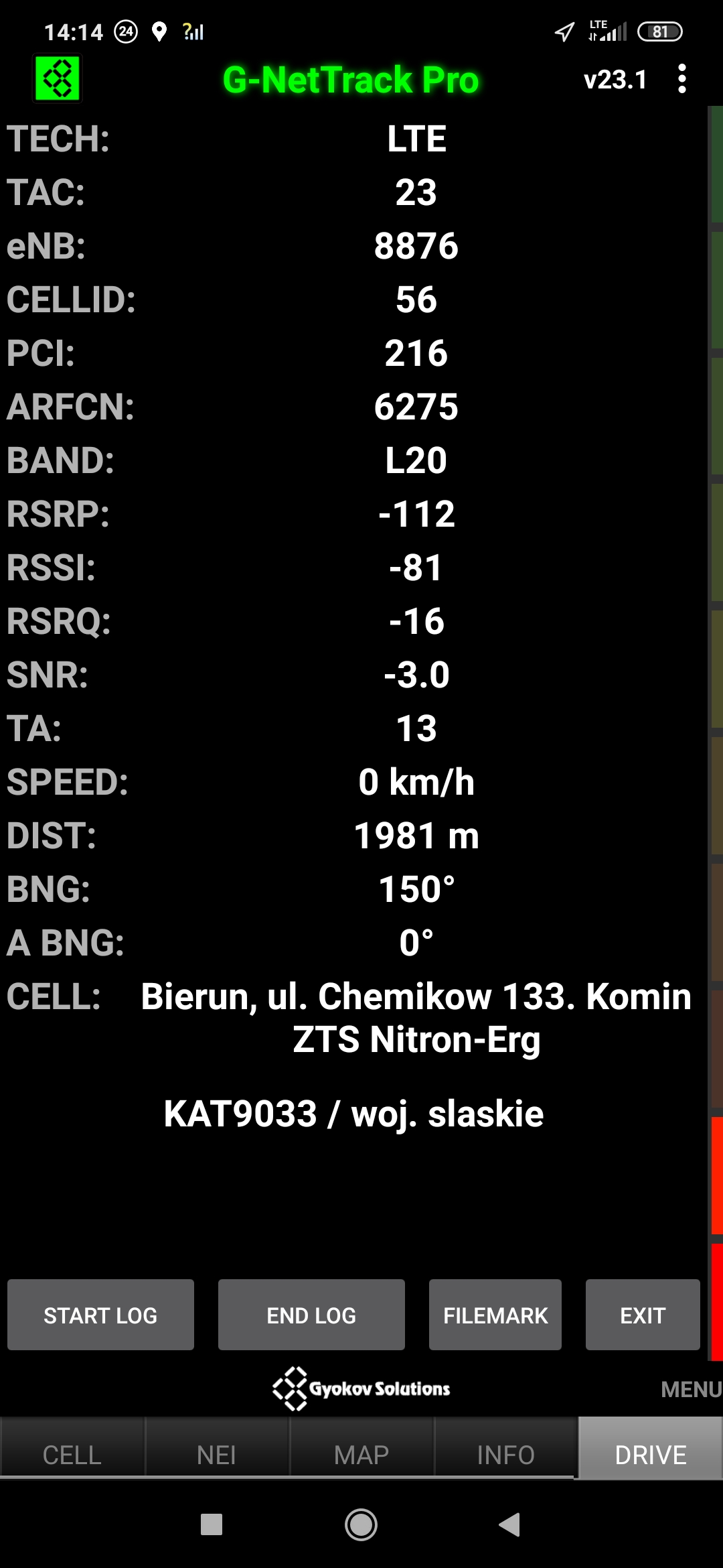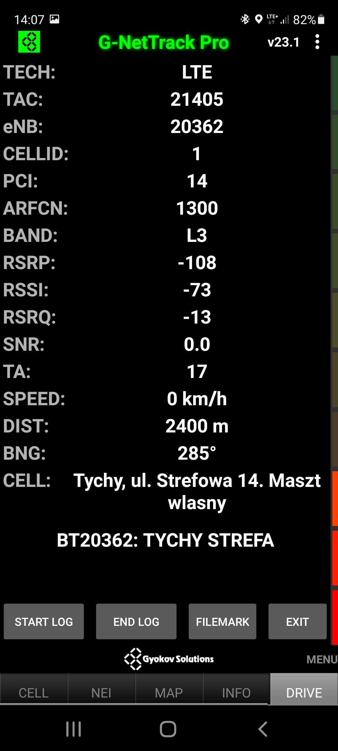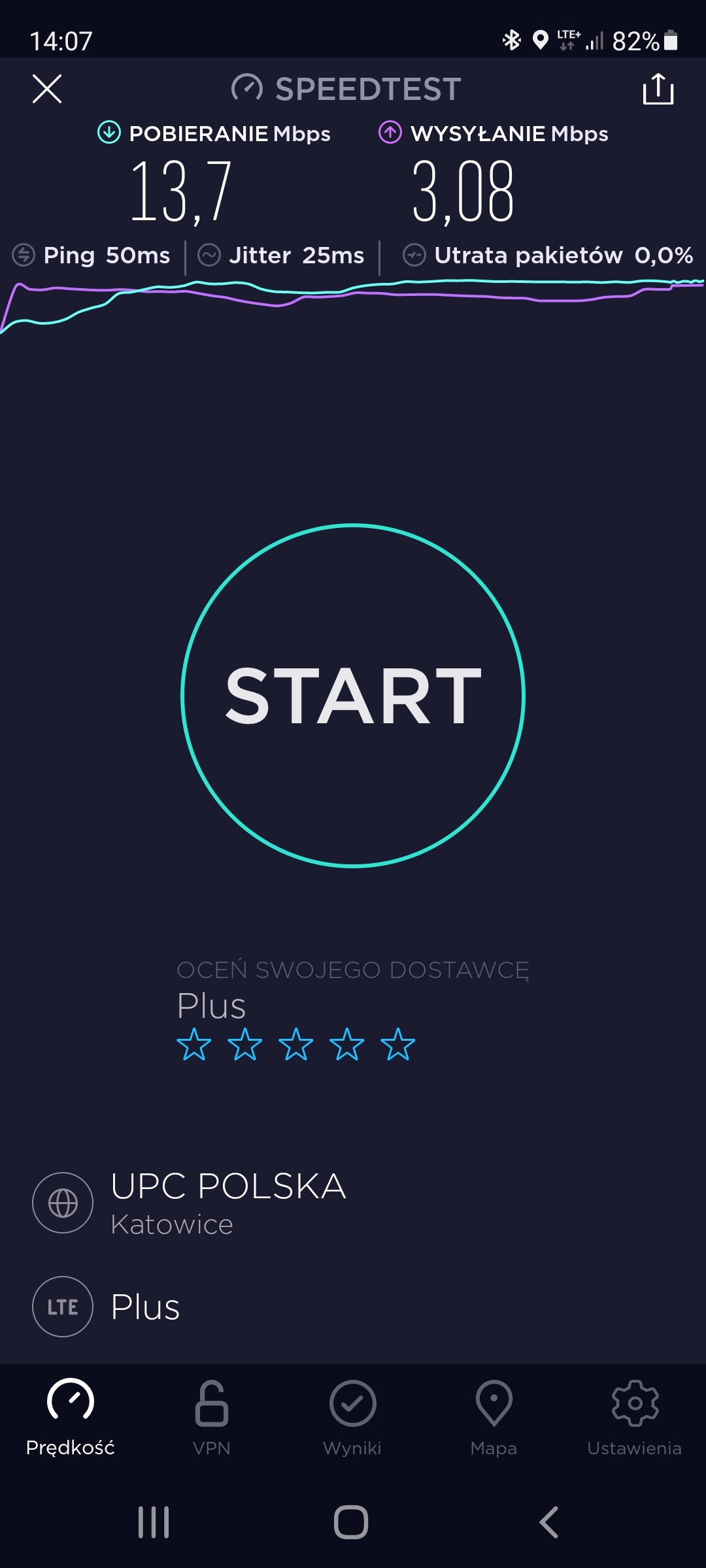 Prezentujemy jakość transmisji danych w bezpośrednim sąsiedztwie Fabryki Danone w mieście Bieruń, w województwie śląskim.