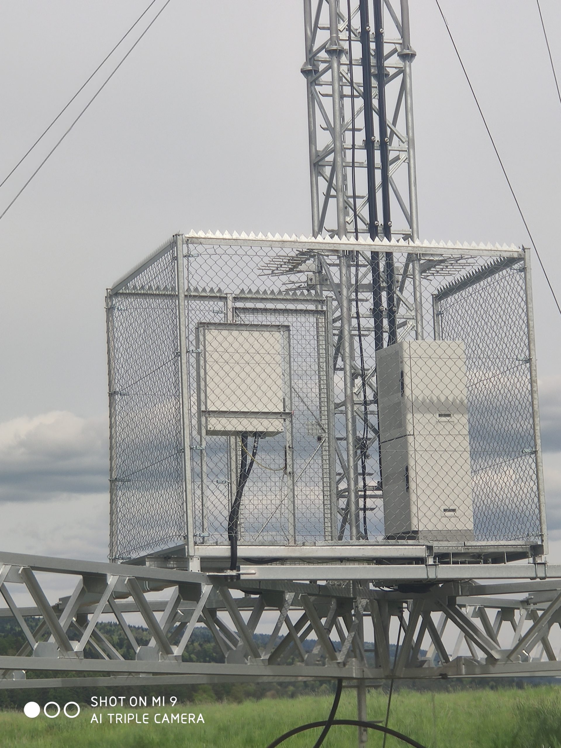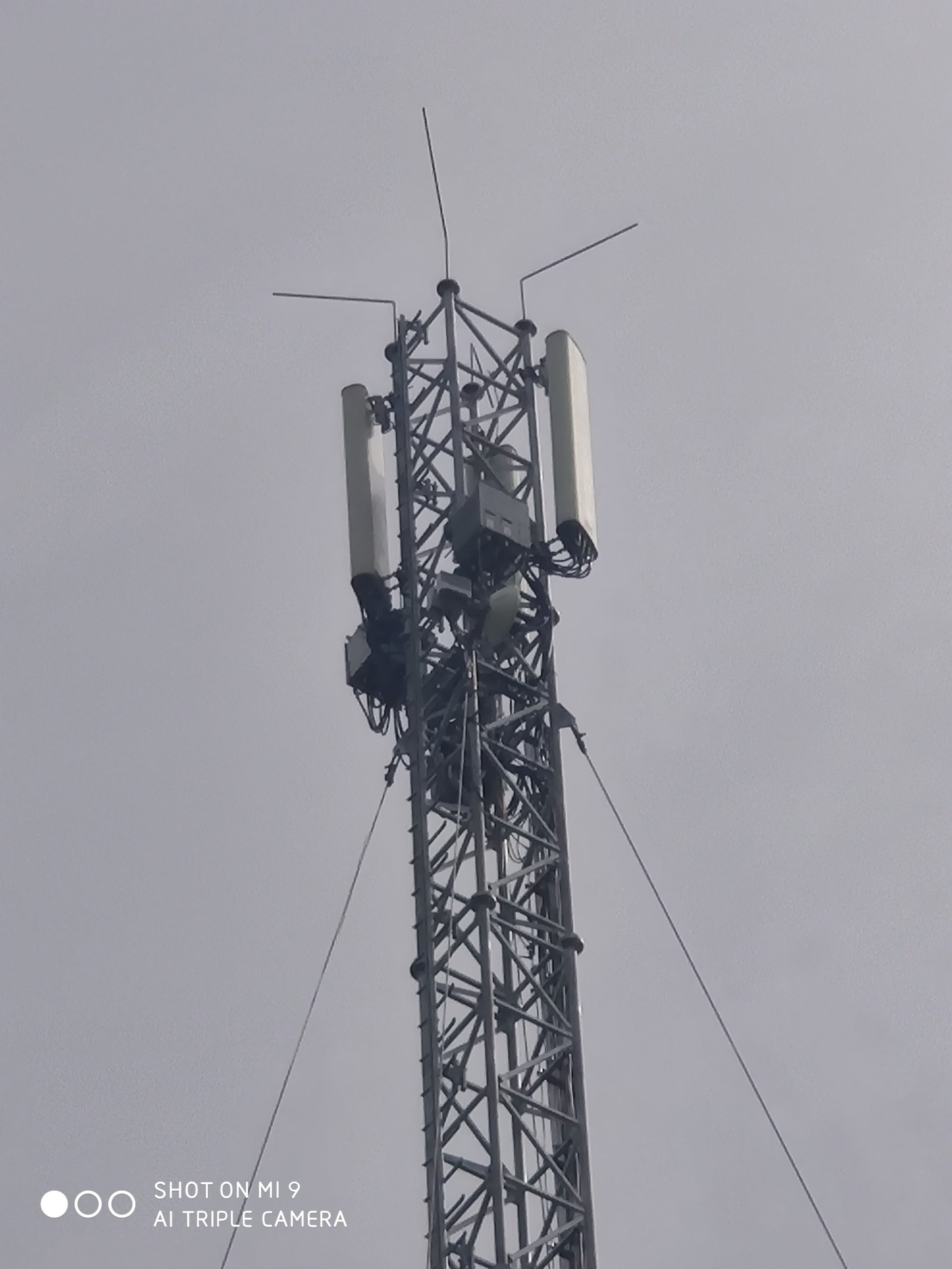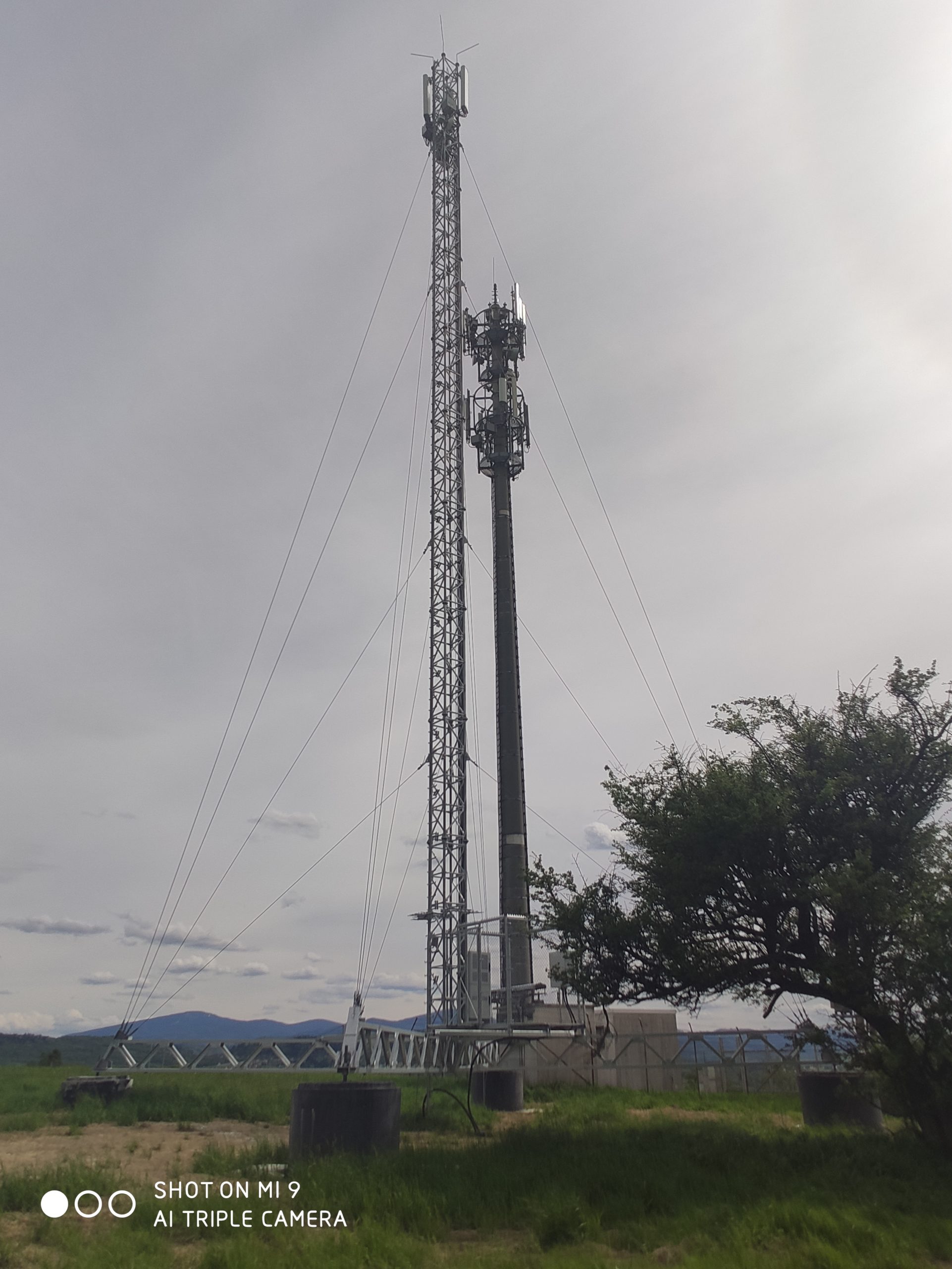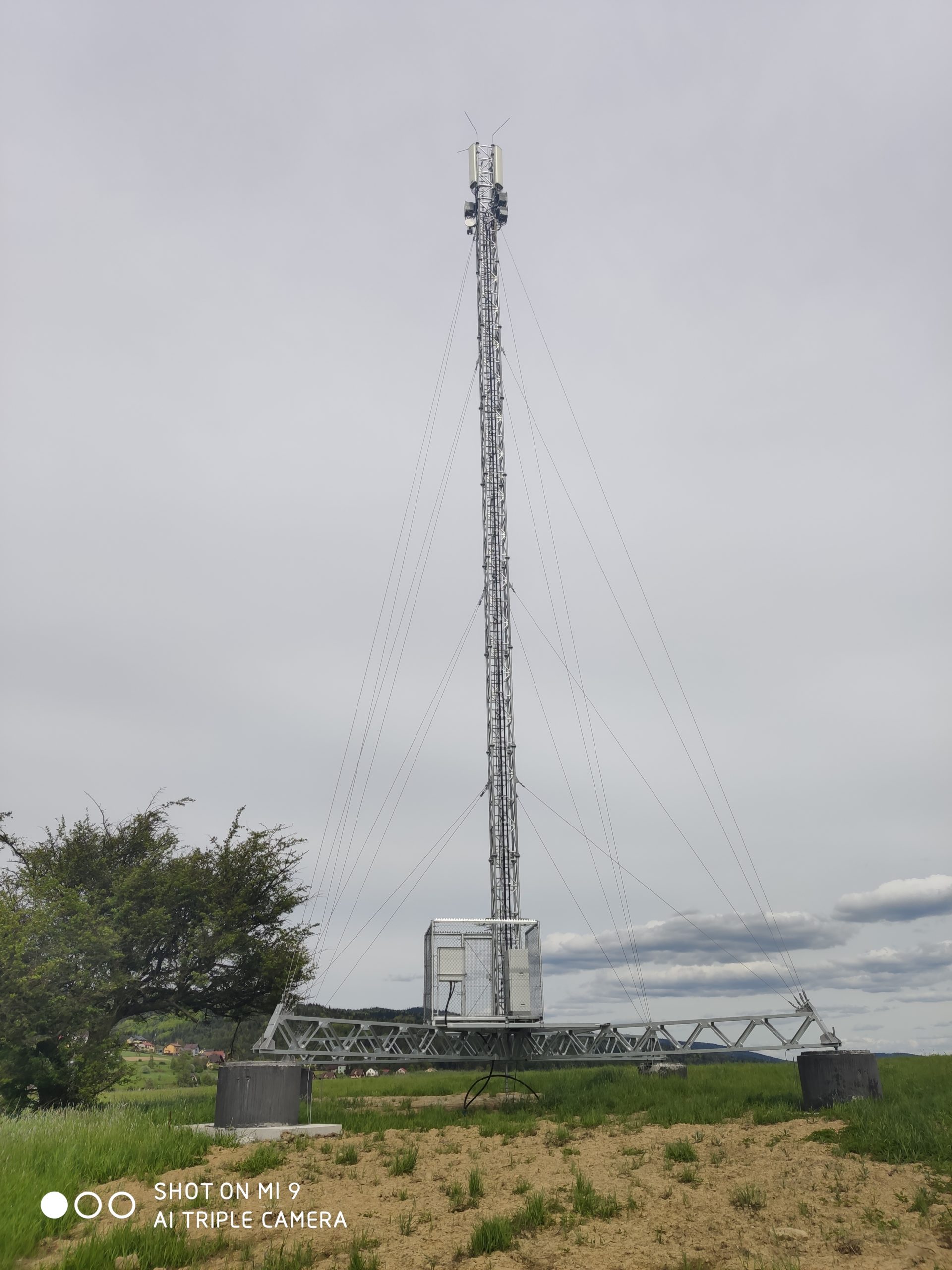 2. zdjęcia stacji T-Mobile, Orange i Plusa w sąsiedztwie mobilnej stacji Play. Właścicielem obiektu jest T-Mobile. Instalacje antenowe Plusa widoczne na niższej galerii masztu