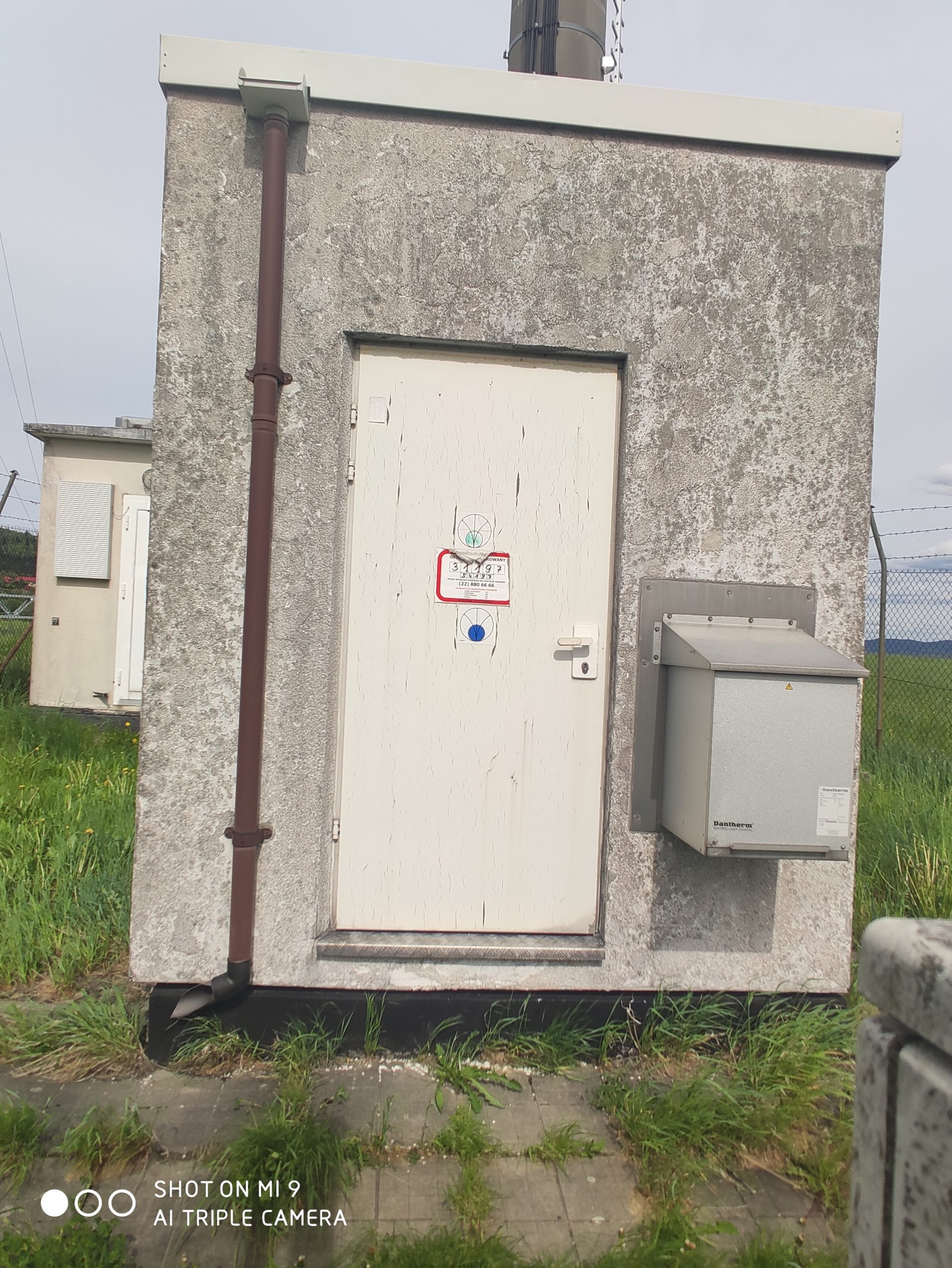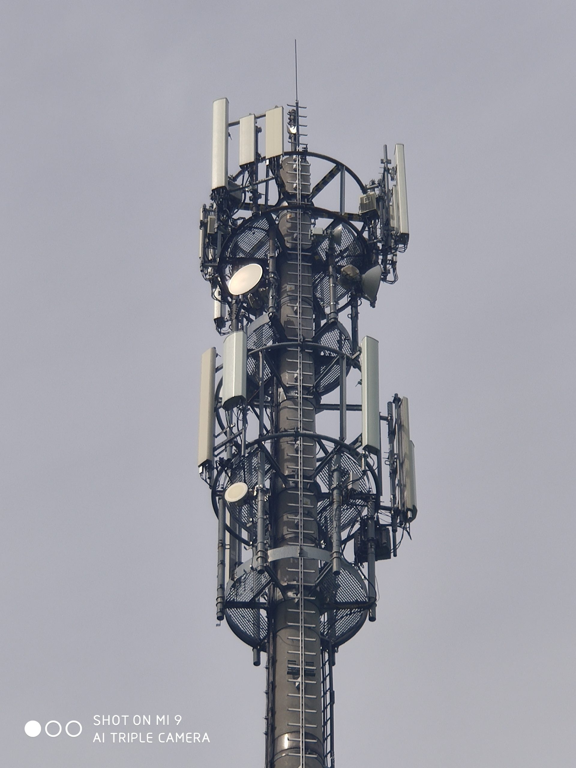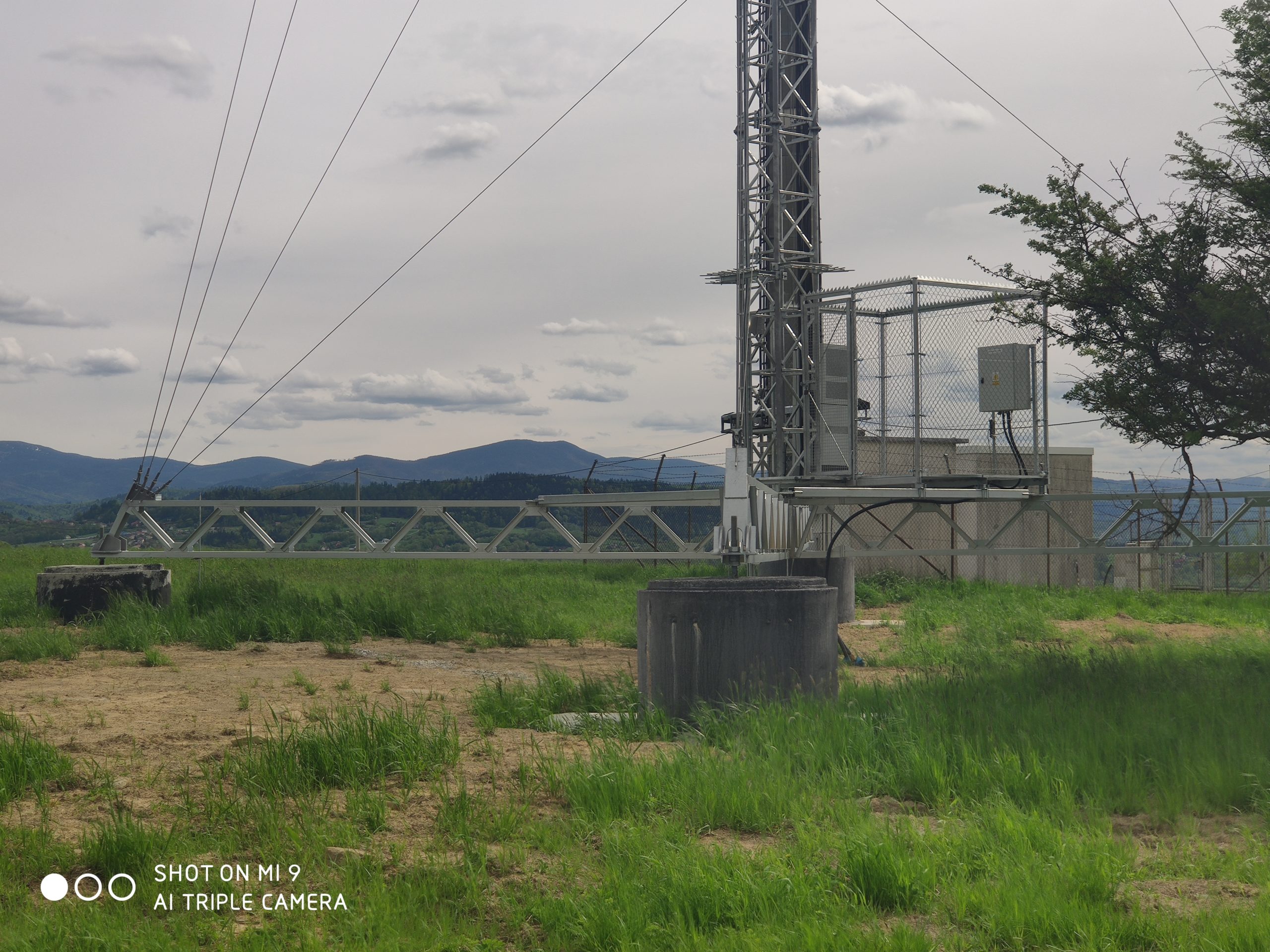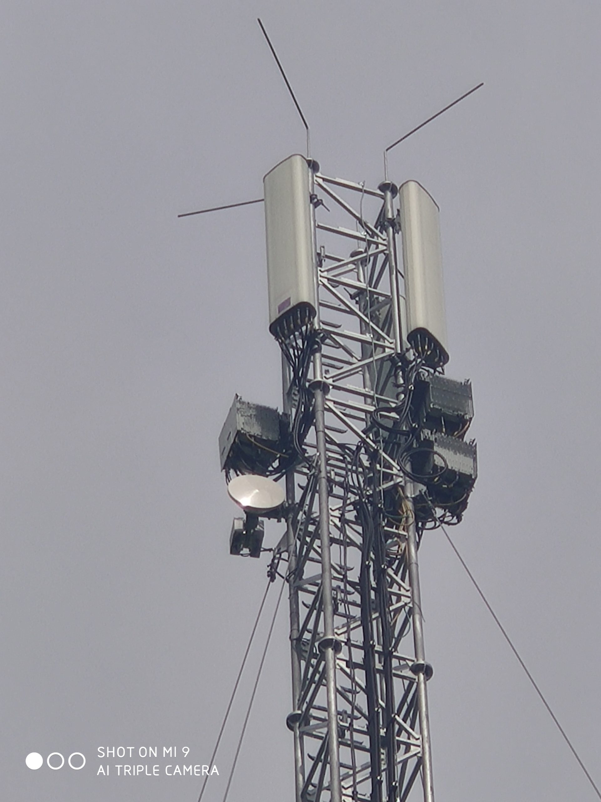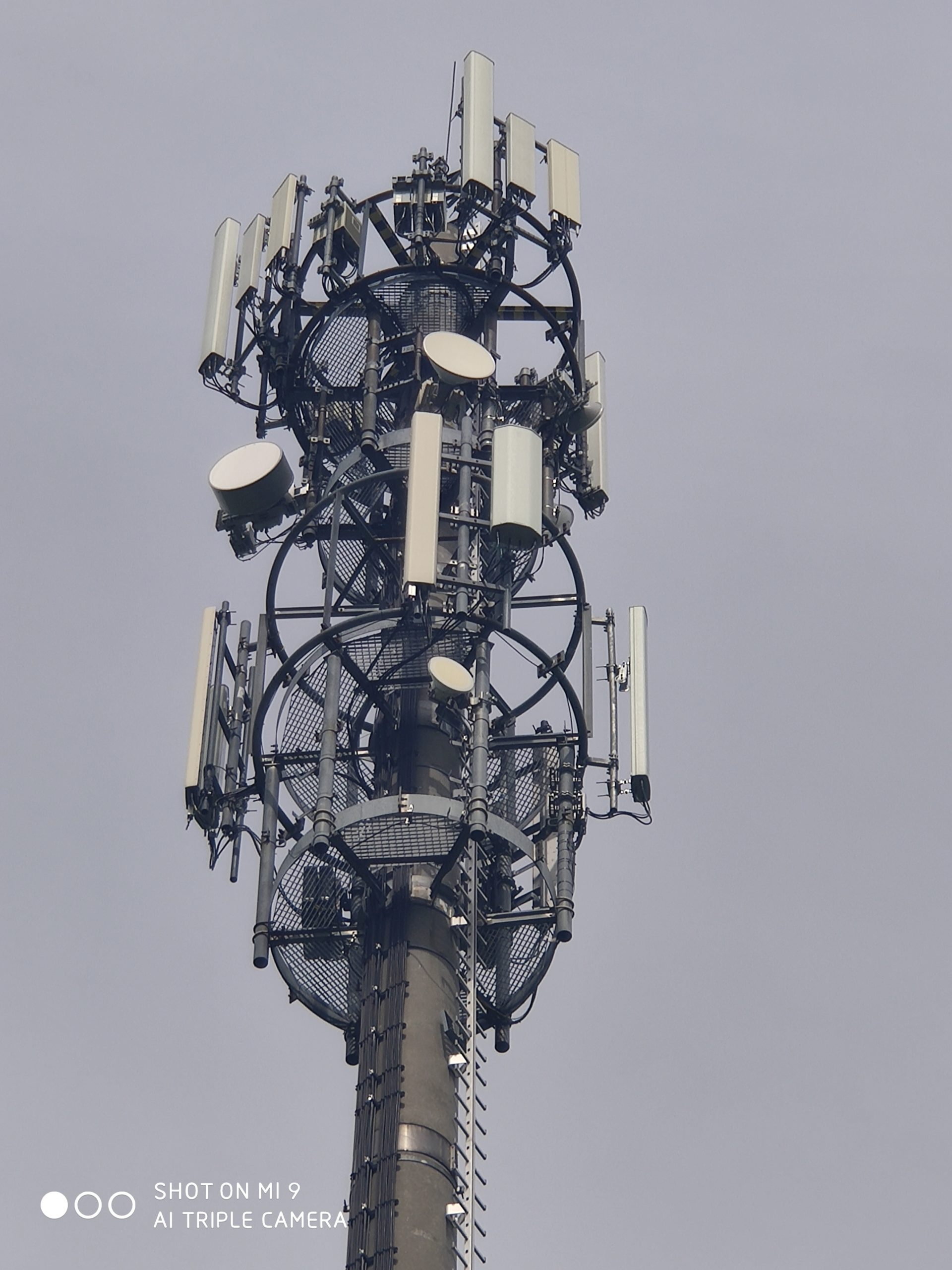 2. zdjęcia stacji T-Mobile, Orange i Plusa w sąsiedztwie mobilnej stacji Play. Właścicielem obiektu jest T-Mobile. Instalacje antenowe Plusa widoczne na niższej galerii masztu
