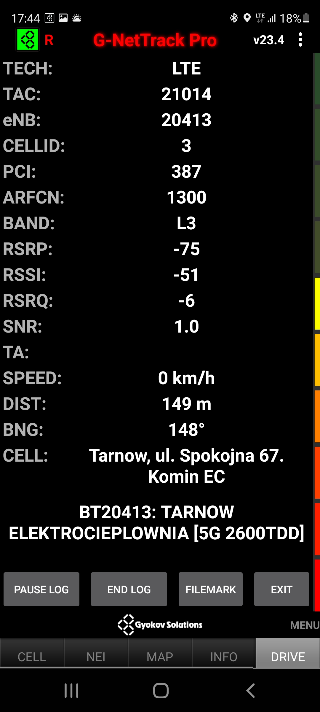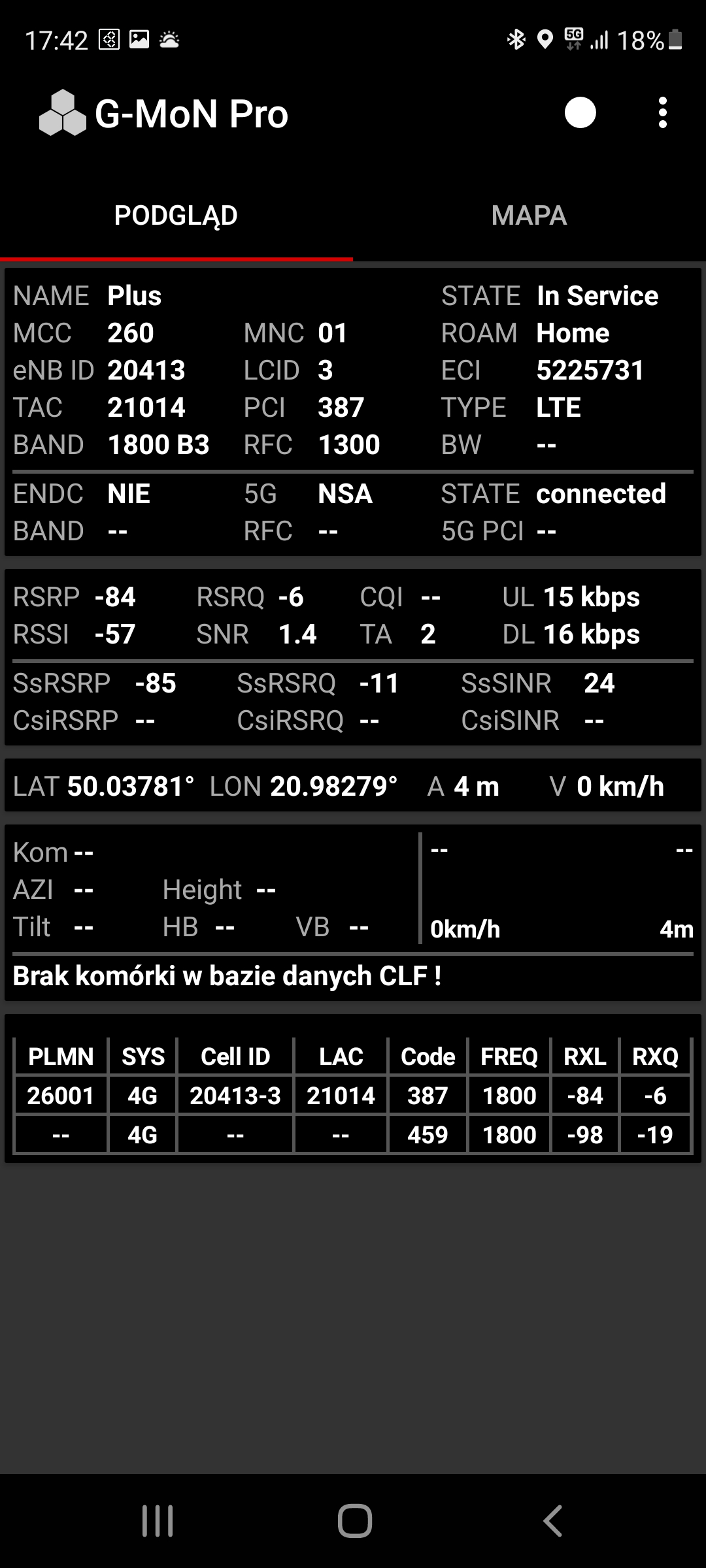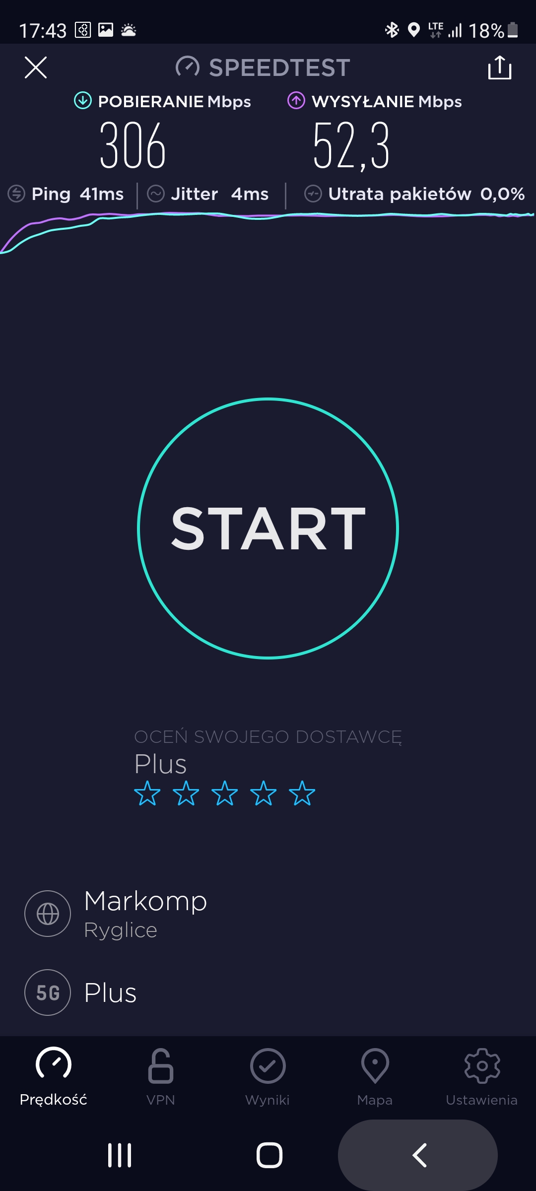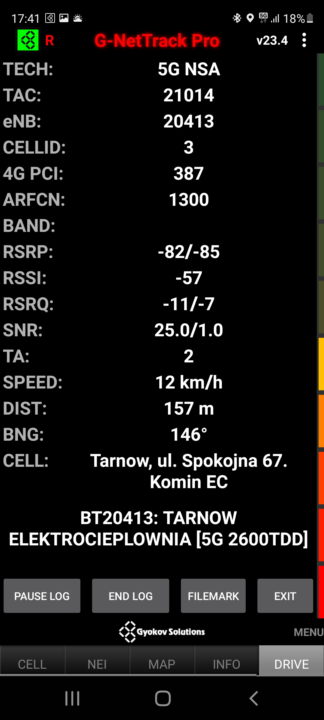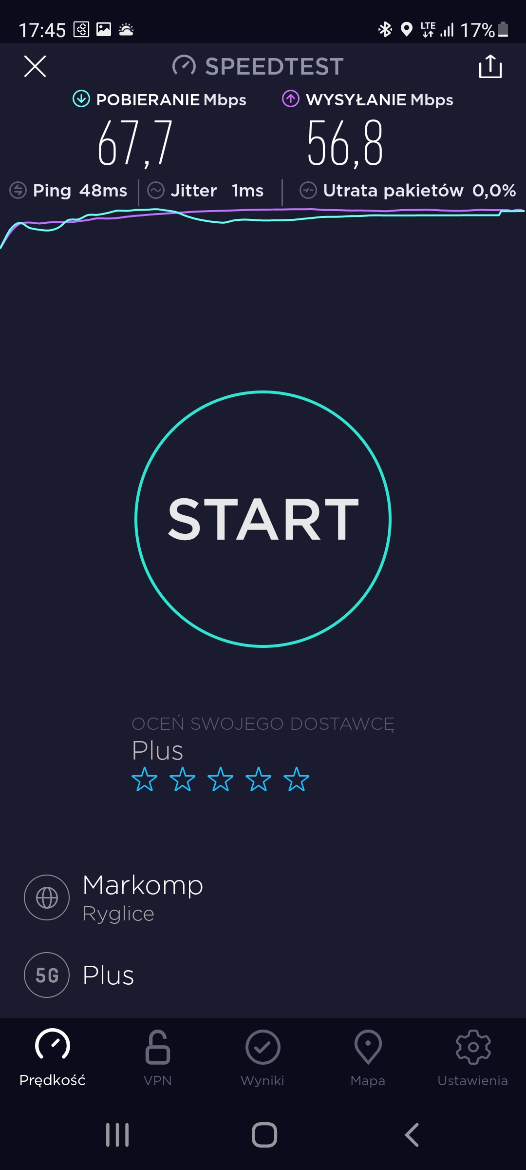 Prezentujemy jakość transmisji danych w kolejnej stacji Plusa w małopolskim mieście Tarnów. Tym razem, to stacja o kodowym numerze BT-20413. Lokalizacja: ul. Spokojna 67. Obiekt: komin ciepłowni. W stacji na trzech sektorach pracują: GSM/UMTS900/UMTS2100/LTE900/LTE1800 oraz 5G.