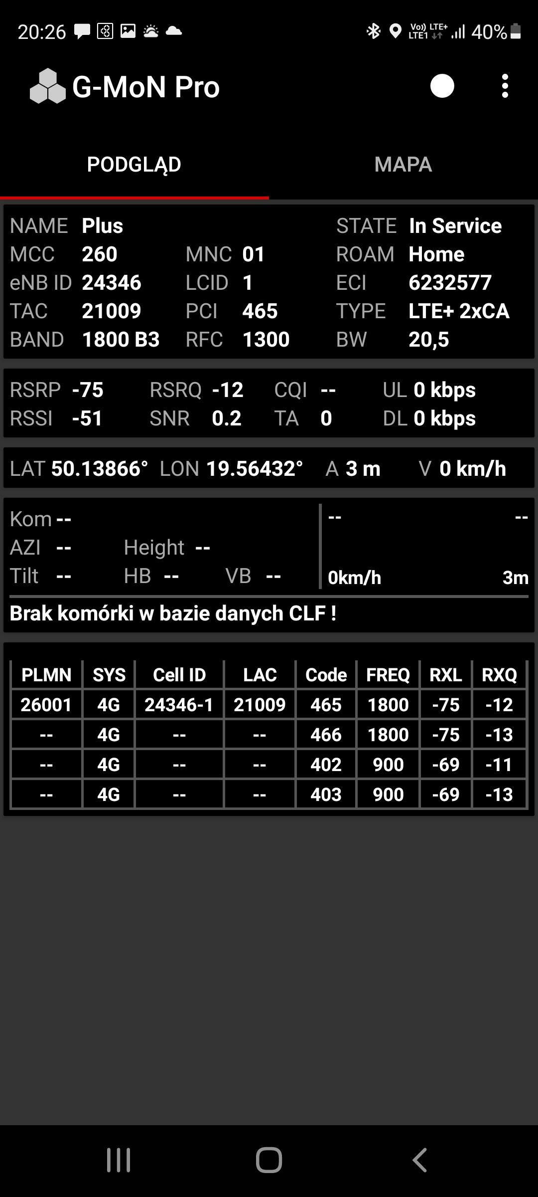 Jak donosi nasz Korespondent ze Śląska – Plus zmodernizował stację BT-24346 Tenczynek, zlokalizowaną na maszcie Orange w miejscowości Filipowice. Stacja pracuje w oparciu o trzy sektory. Dotąd oferowała klientom jedynie UMTS2100. Dziś, po modernizacji klienci mogą skorzystać z: UMTS900/UMTS2100/LTE900 oraz LTE1800. Wyniki testów na każdym z trzech sektorów poniżej: