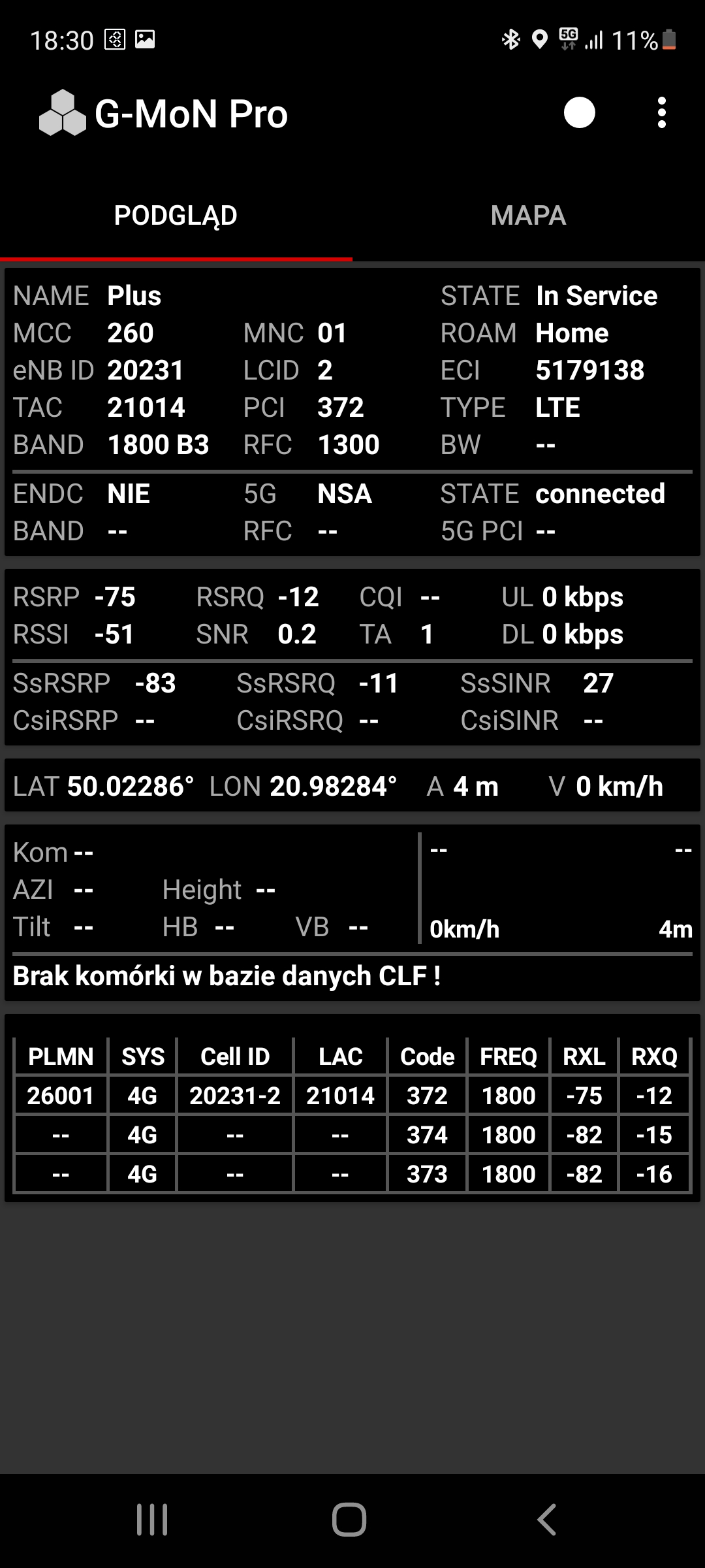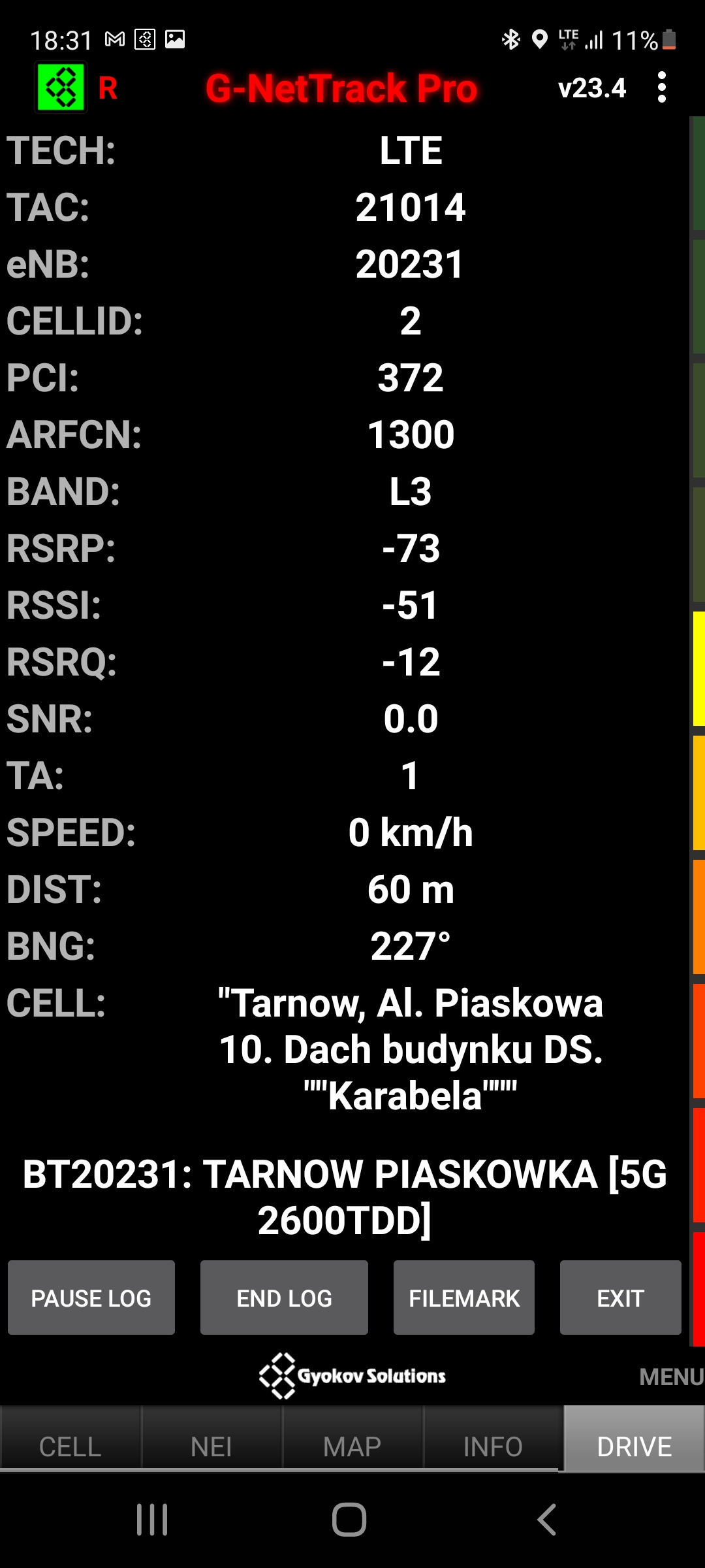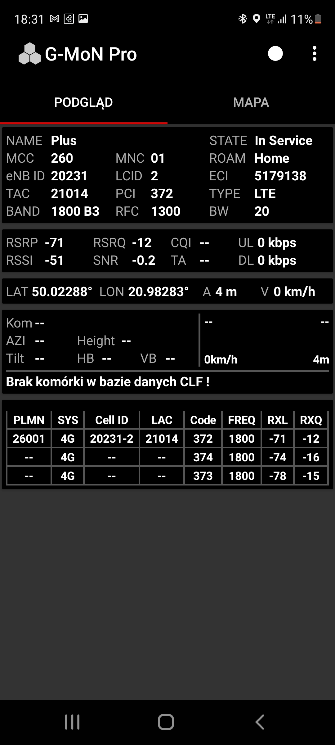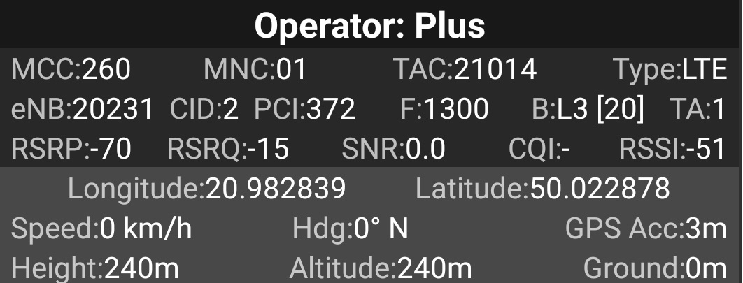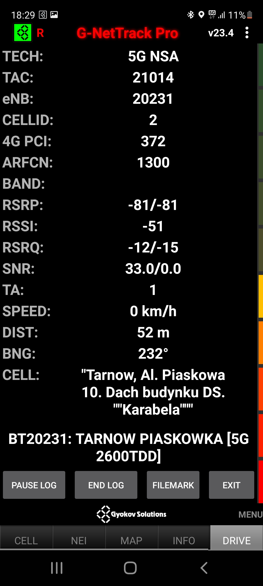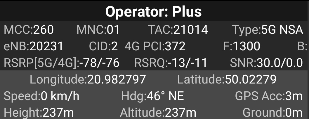 Jak widać ze zrzutów ekranów, choć testy nie były realizowane w godzinach szczytowych – wartość download osiągana w LTE nie napawa optymizmem i warto zastanowić się, czy twór o takiej konfiguracji radiowej powinien w Tarnowie funkcjonować? Sugerujemy dołożenie LTE2600, choć przy rosnącym ruchu i wciąż wiodącej technologii LTE – optymalnym rozwiązaniem byłaby migracja pasma 2100MHz do LTE, zaś dla usług głosowych rozszerzenie stacji do GSM/UMTS900, a może nawet z racji lokalizacji – do DCS?