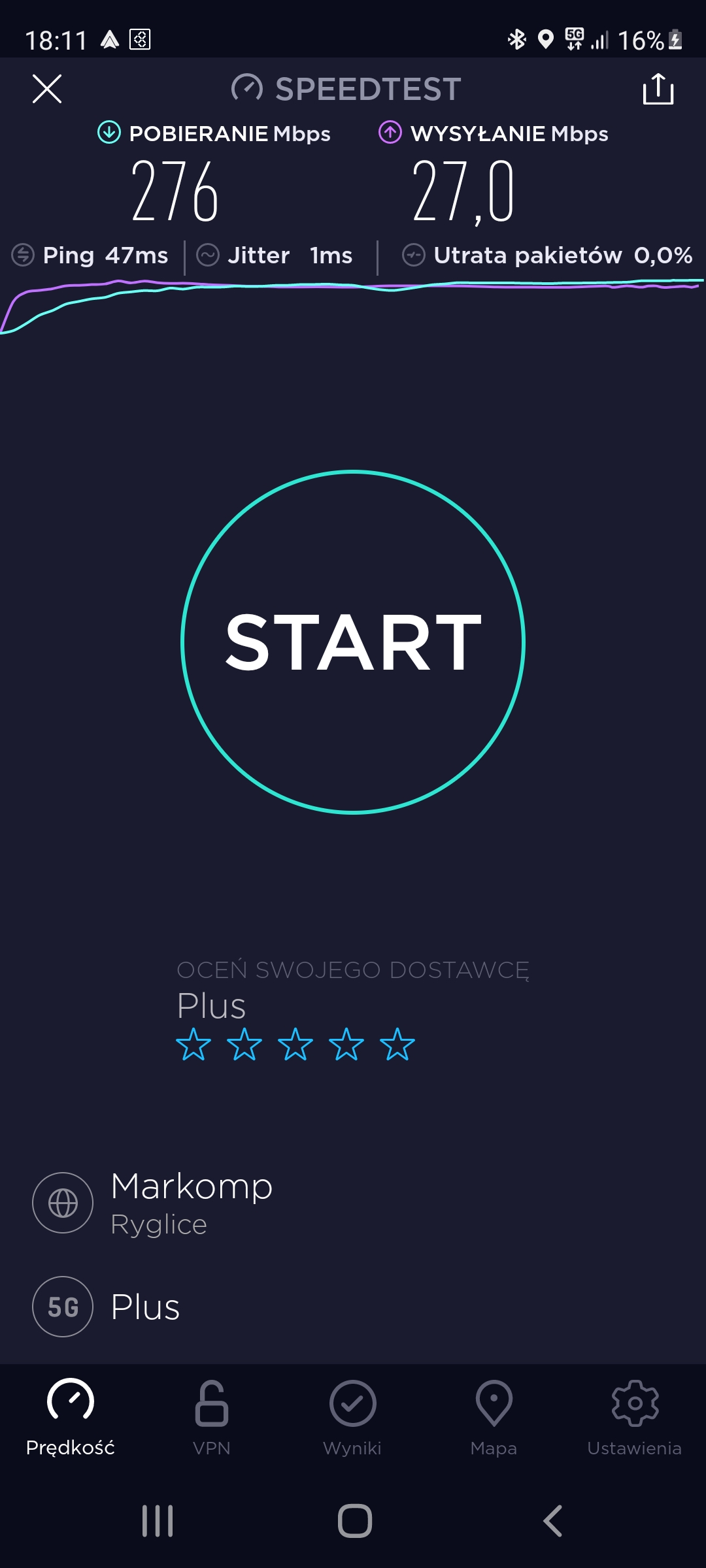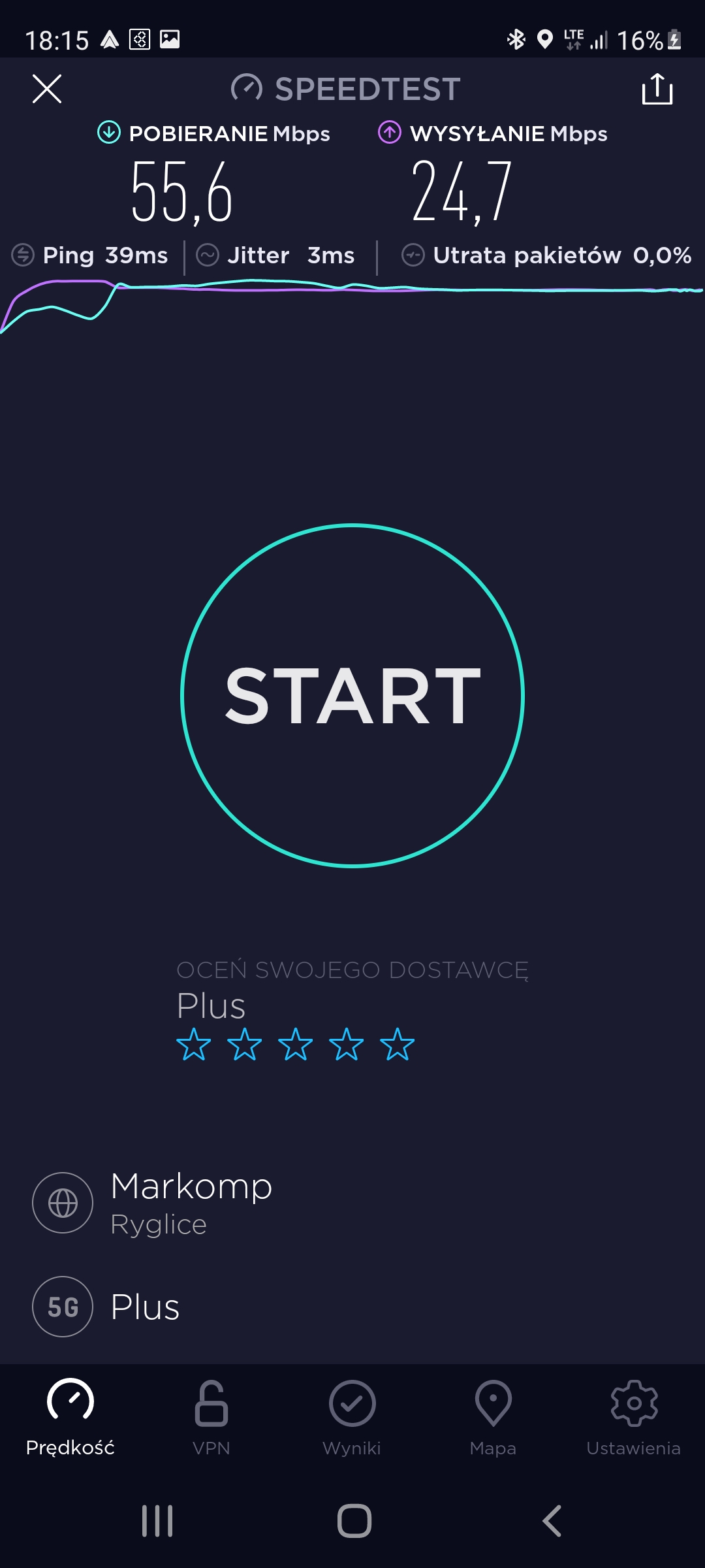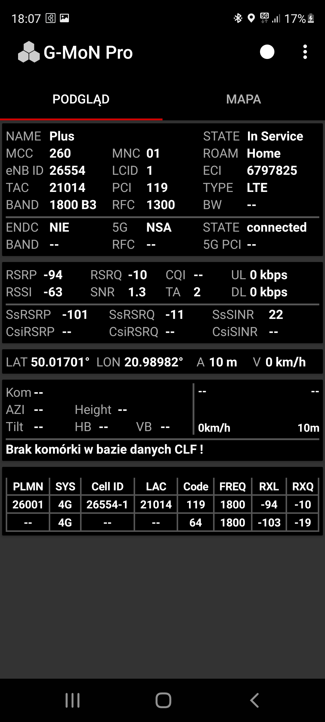 Kontynuujemy prezentację jakości transmisji danych w stacjach w małopolskim Tarnowie. Bieżąca informacja dotyczy stacji o kodowym numerze BT-26554, zlokalizowanej przy ul. Legionów 15, na dachu budynku Szkoły Budowlanej. Stacja oferuje klientom na trzech sektorach: GSM/UMTS900/UMTS2100/LTE900/LTE1800 oraz 5G.