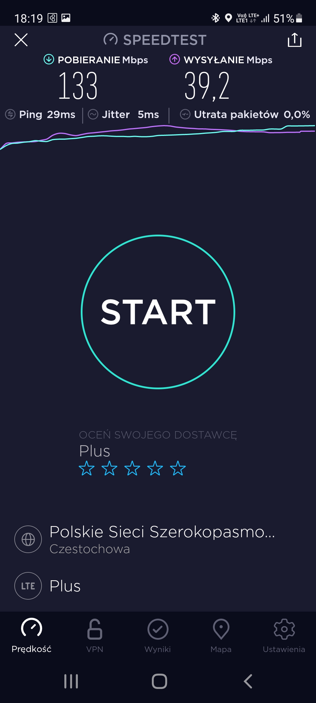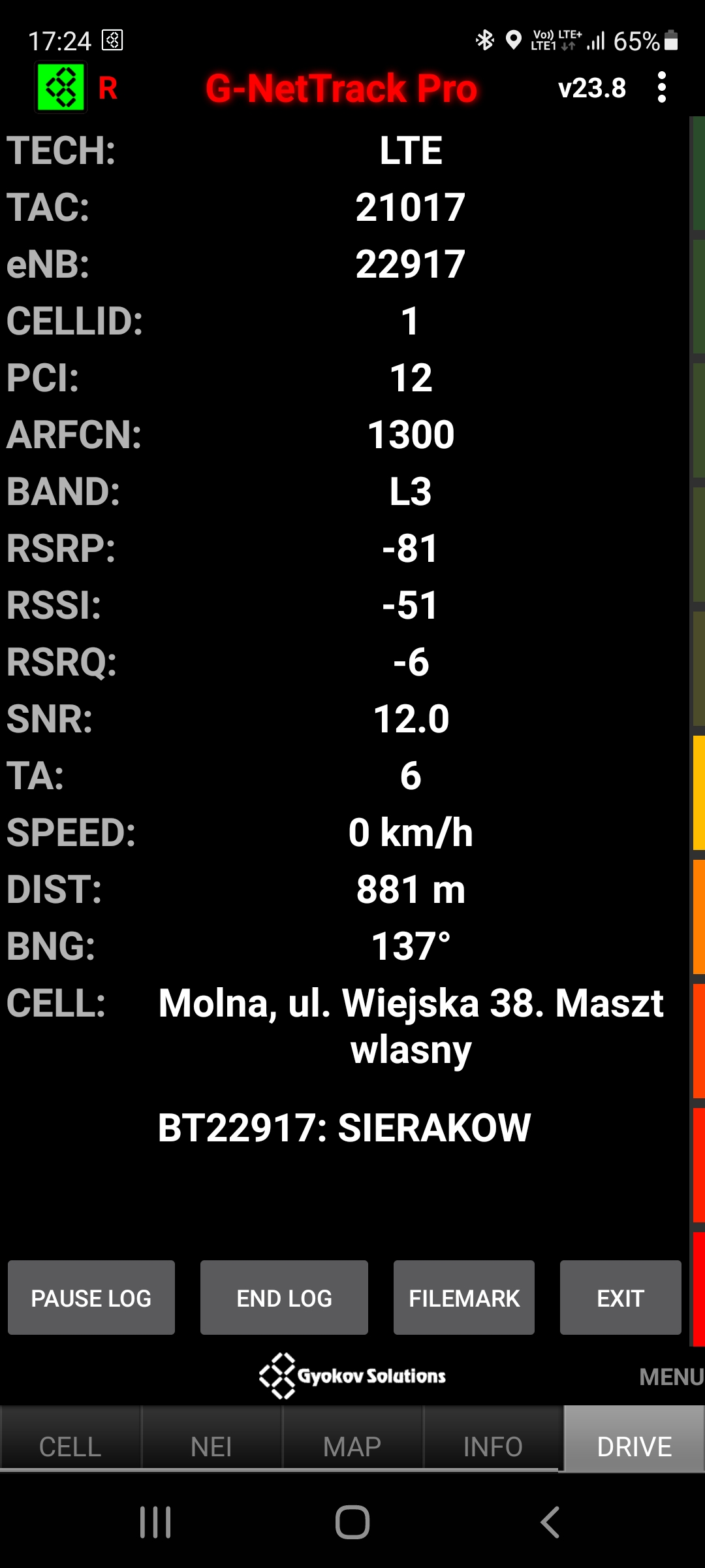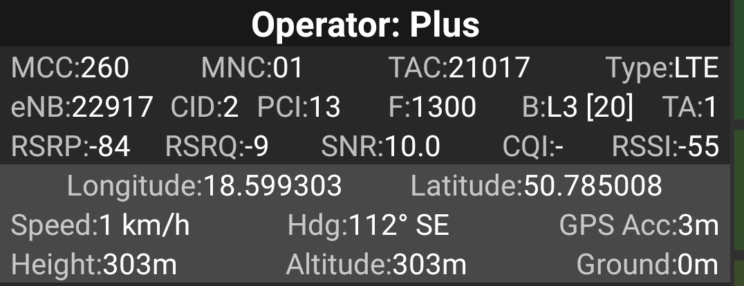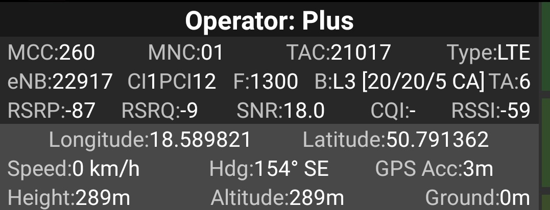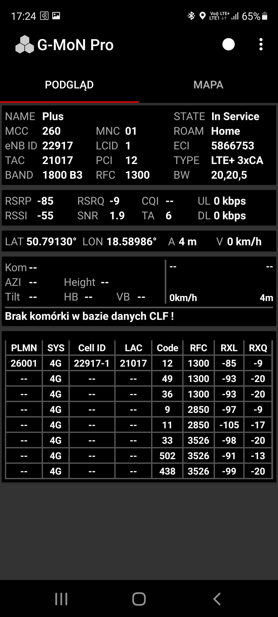 Prędkości transmisji danych (45MHz pasma) kształtowały się na trzech zasadniczych azymutach jak niżej: