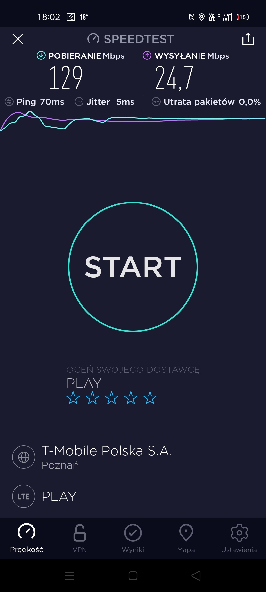 Ponieważ nie mamy możliwości realizacji testów 5G – poniżej wyniki dla segmentu LTE operatora w dwóch stacjach, o których mowa wyżej: