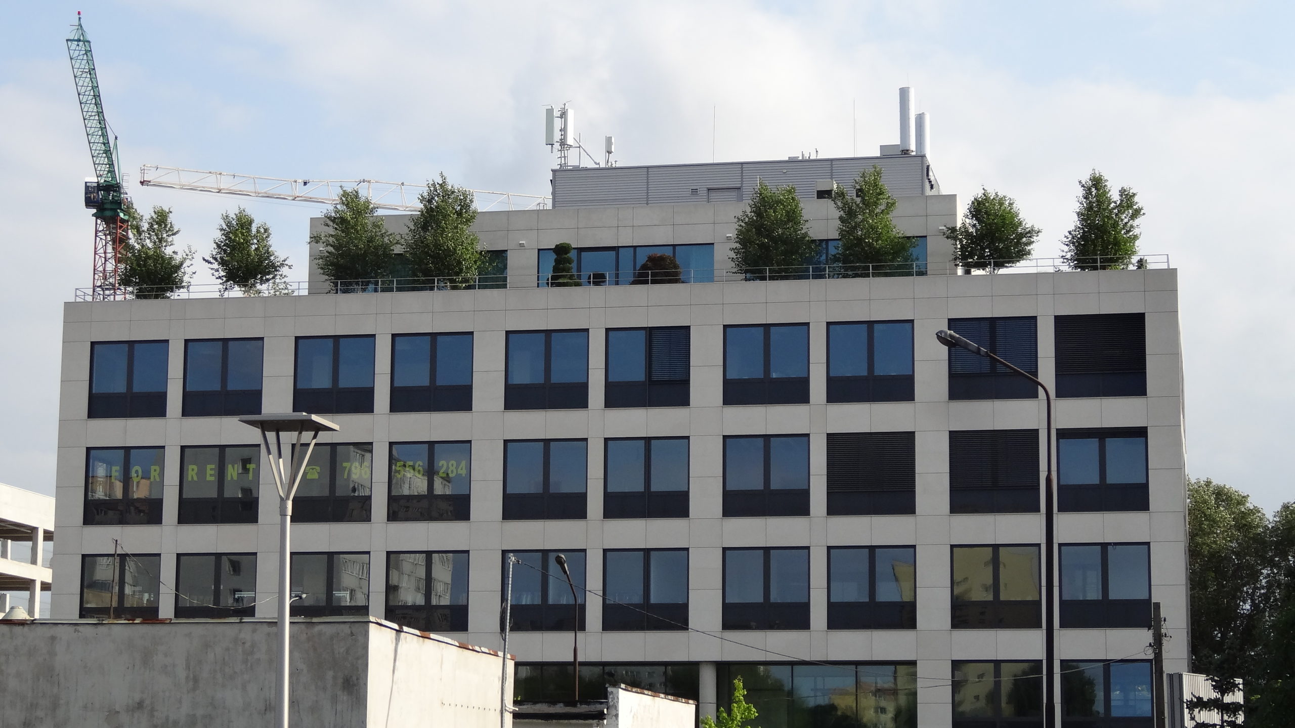 2. zdjęcia przeniesionej stacji operatorów globalnych (zamiennika) na dachu biurowca przy ul. Braniborskiej 40. Jak wspomnieliśmy, pracuje tu również stacja Play. Kodowy numer nowej stacji T-Mobile (dla obu podmiotów), to: 45833.