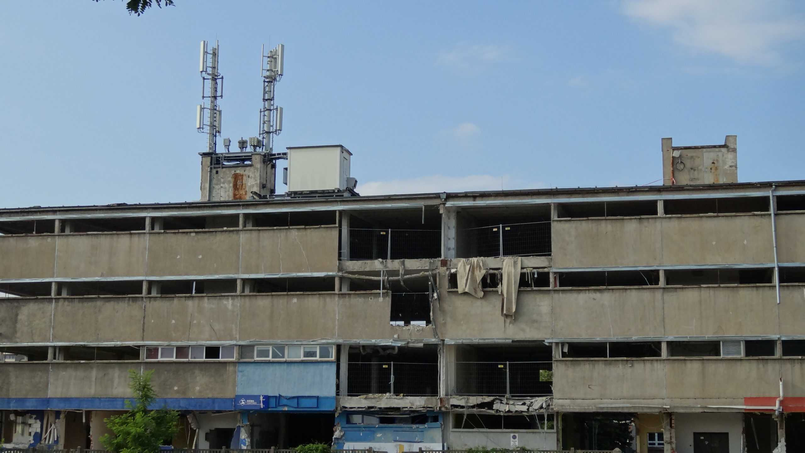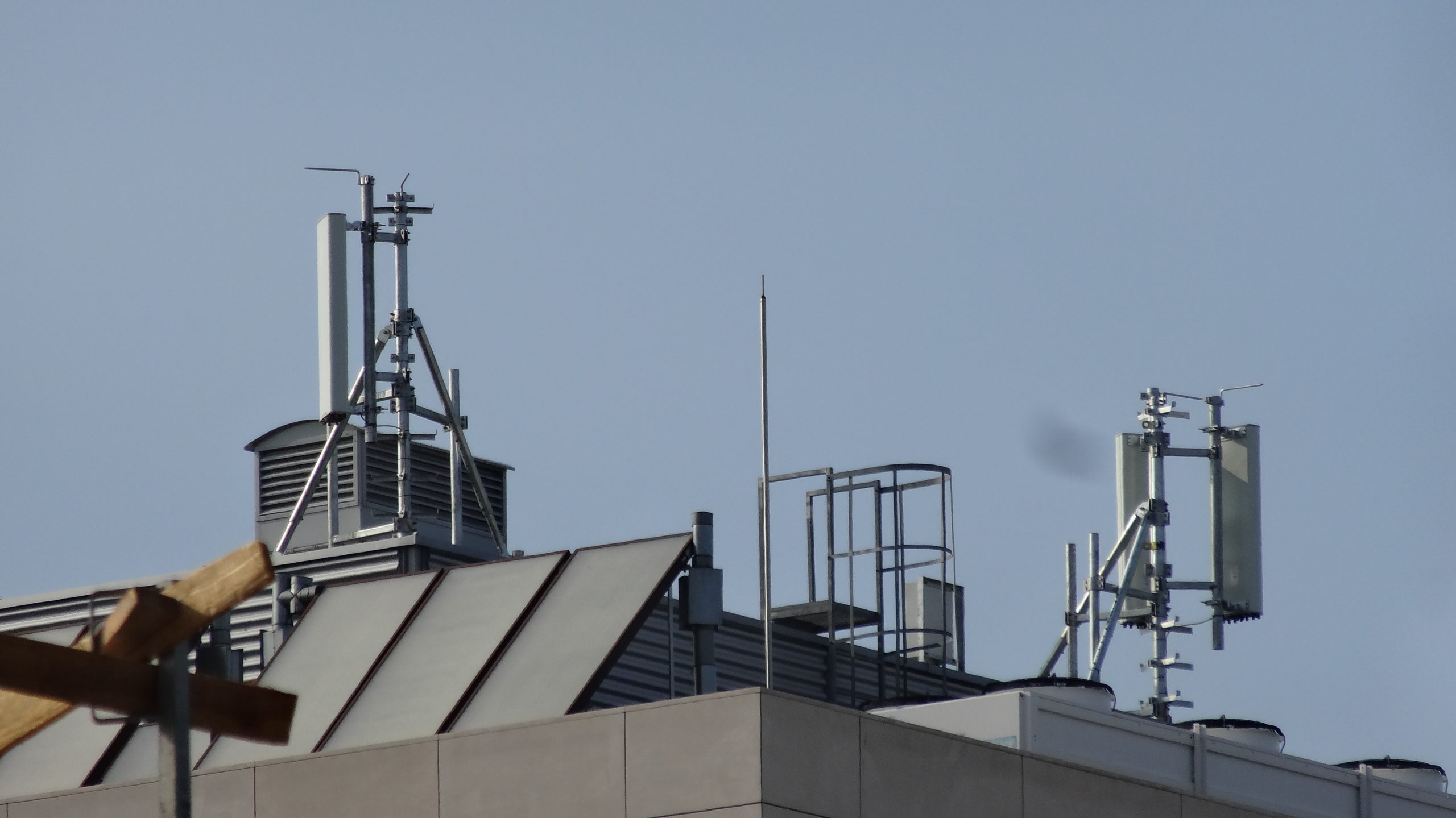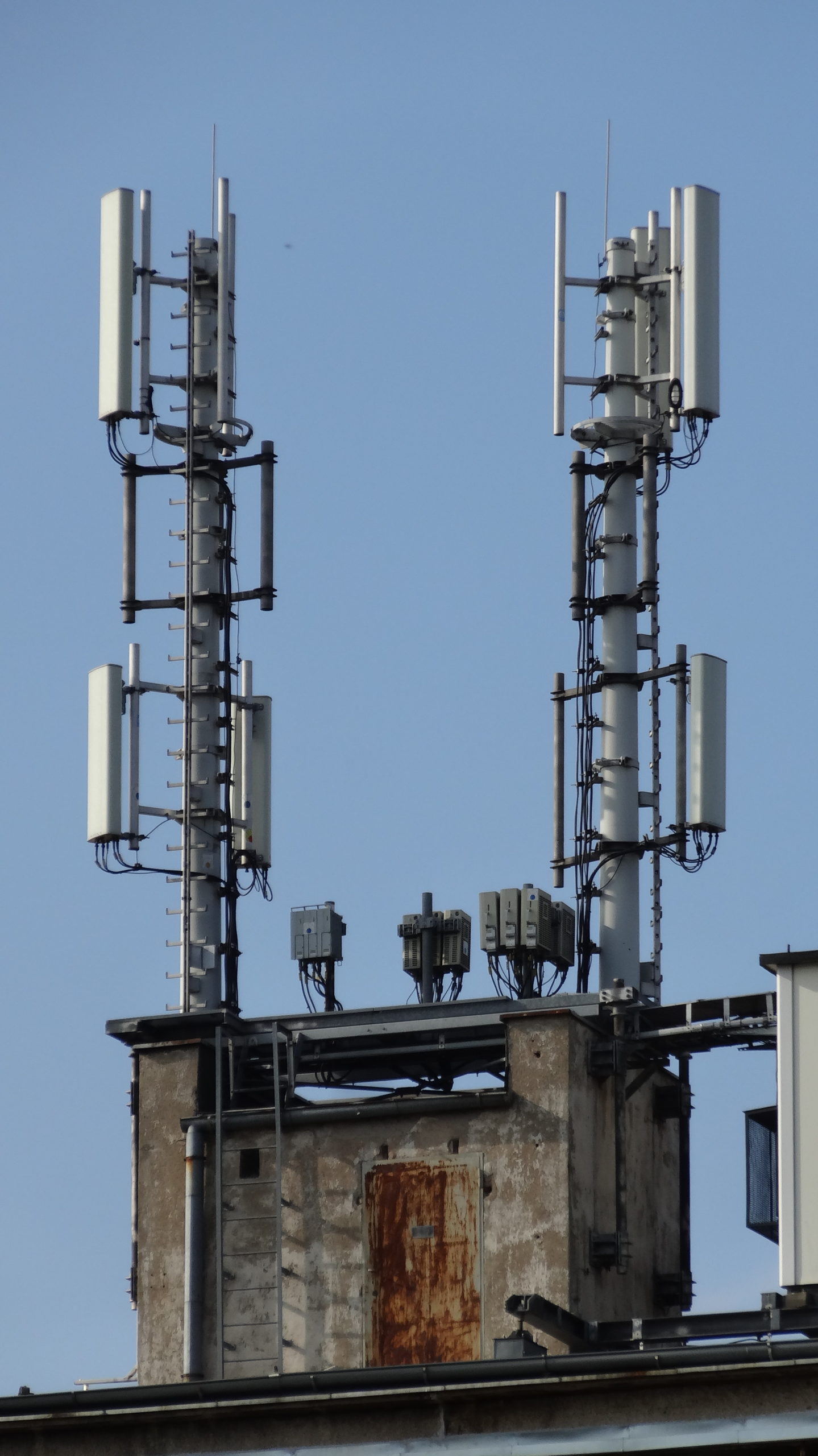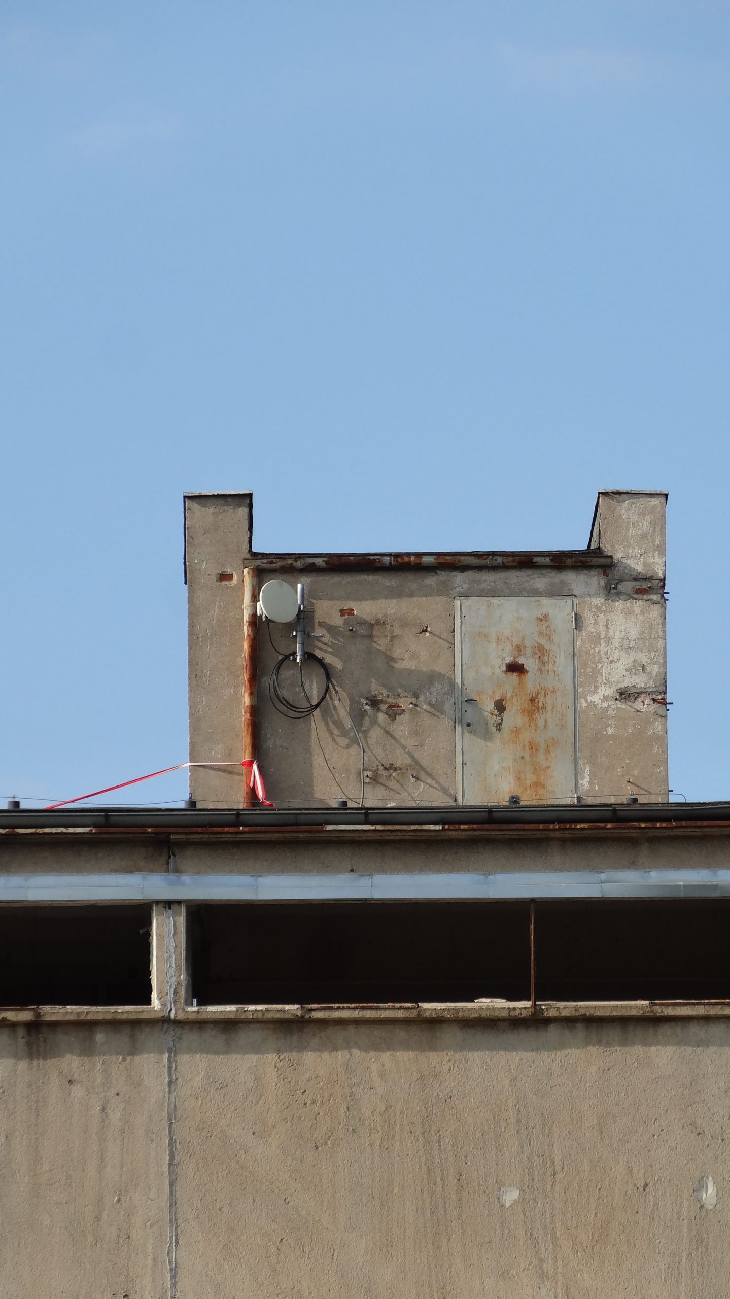 1. zdjęcia stacji operatorów globalnych w byłej lokalizacji (z lewej strony) oraz pozostałość po stacji Plusa (radiolinia, prawa strona dachu).