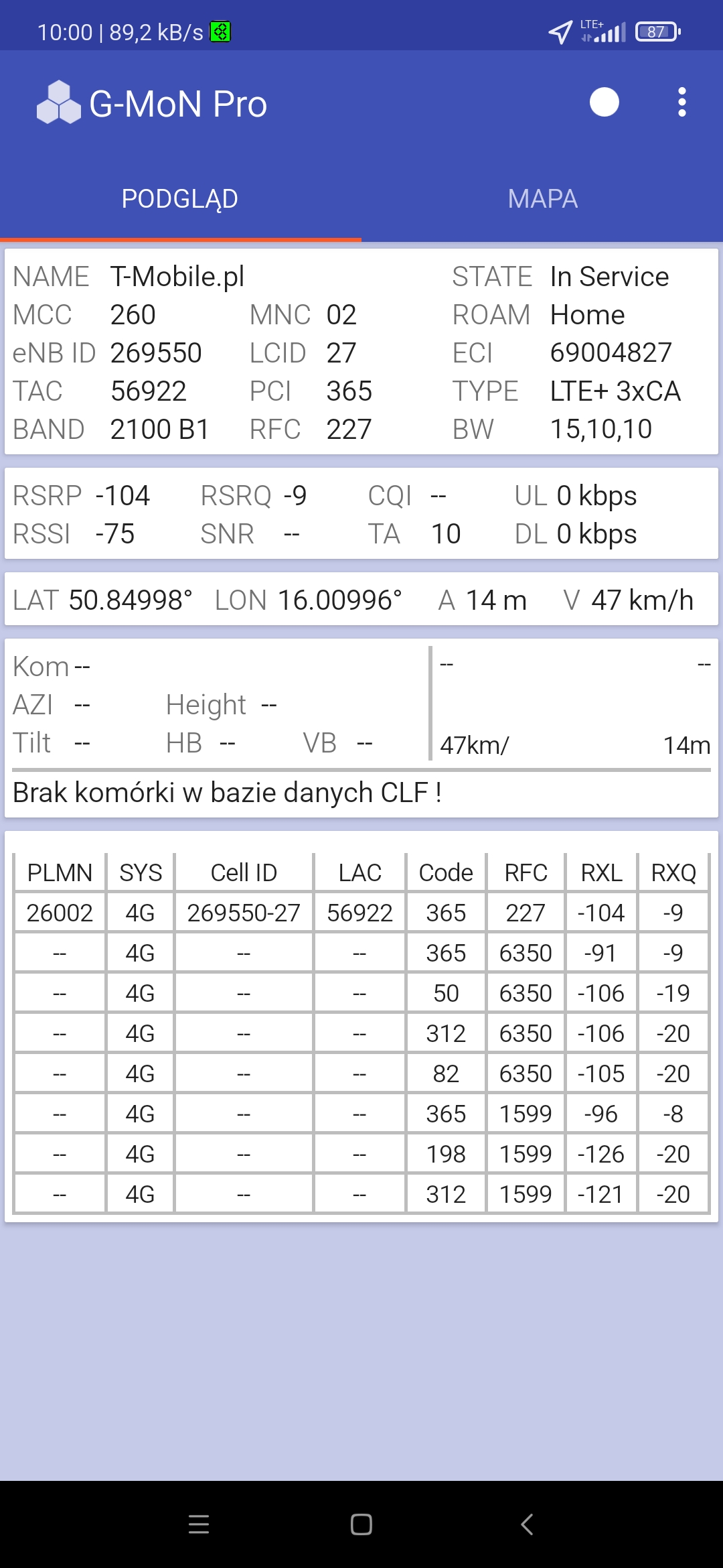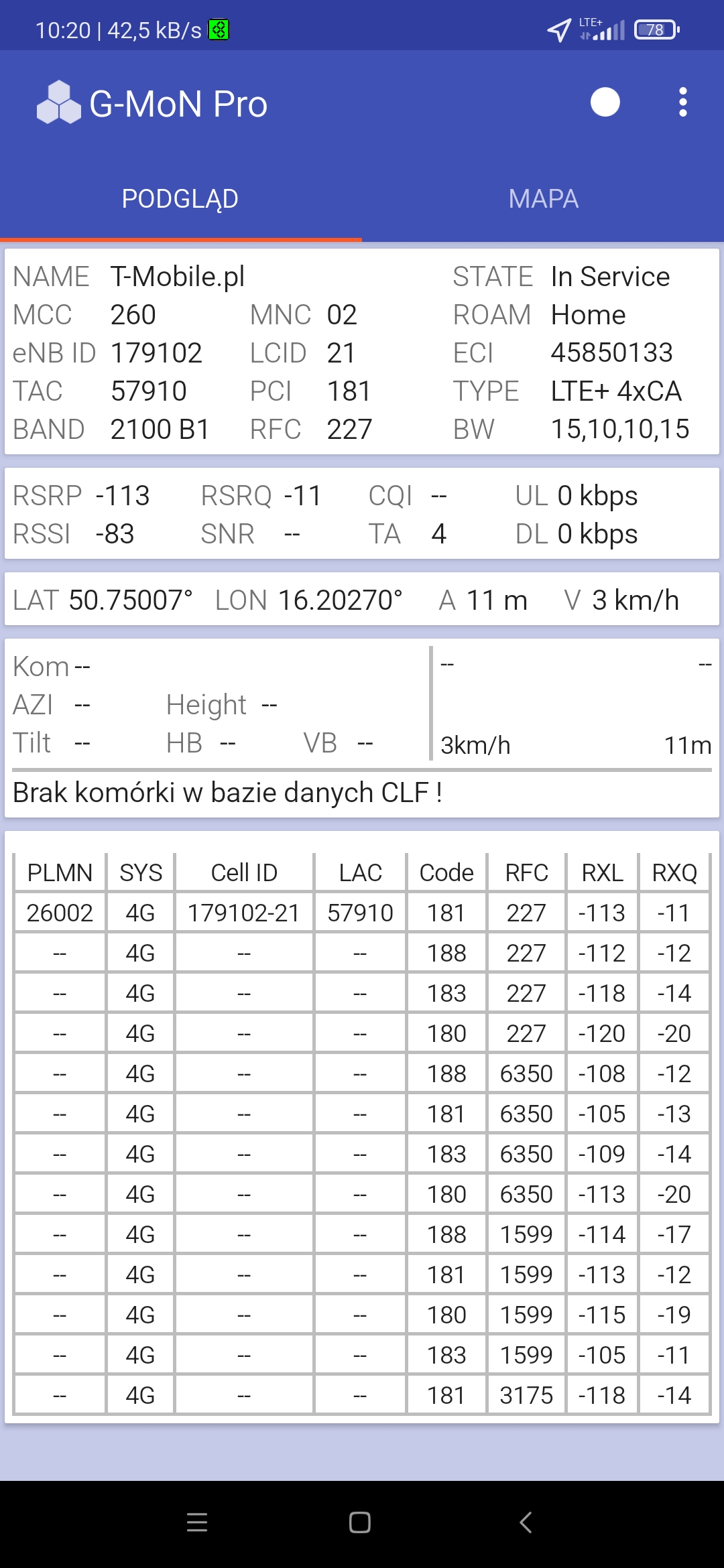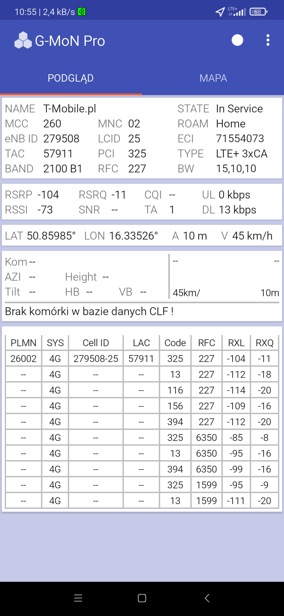 odpowiedź zwykle jest jedna. Po części stacje LTE wyposażone są wciąż w jedno pasmo, w tym nawet w system GUL. Skutek jest taki, że powodują one ponadwymiarowy ruch stacji wyposażonych lepiej. I to właśnie te lepiej wyposażone stacje w szczycie stoją. Dla przykładu – powrót do Jeleniej Góry wyglądał w Plusie następująco wg punktów zatrzymania pociągu: