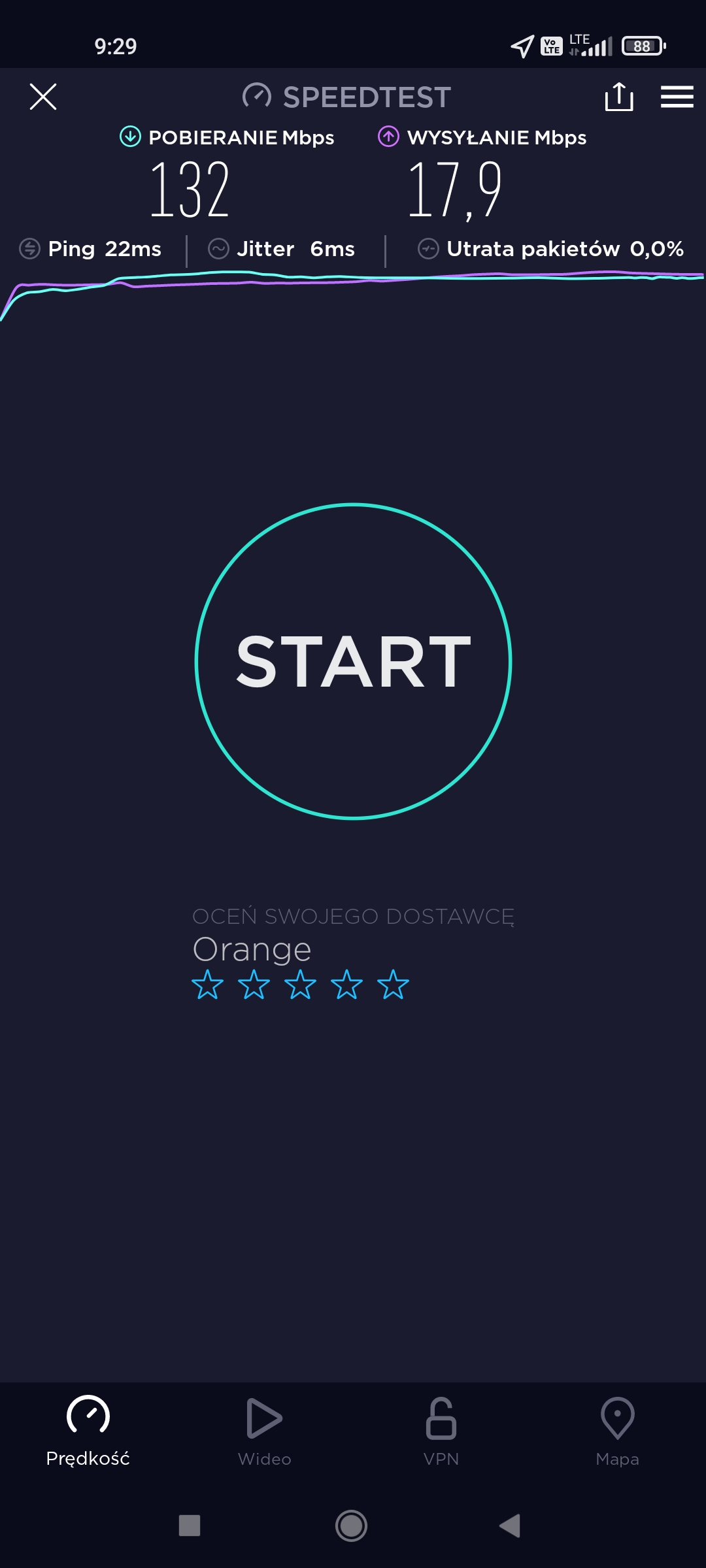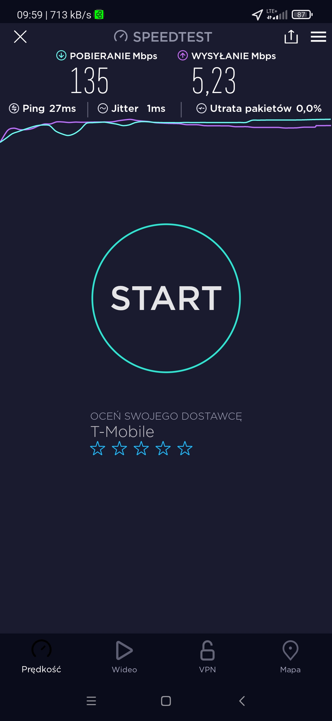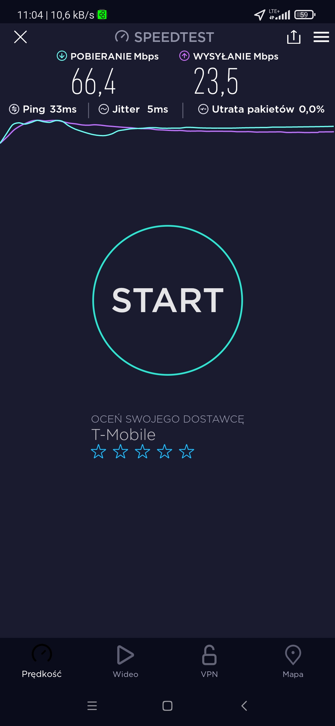 7. Sędzisław – sygnał LTE niestabilny. Niemniej jednak udało się przeprowadzić test