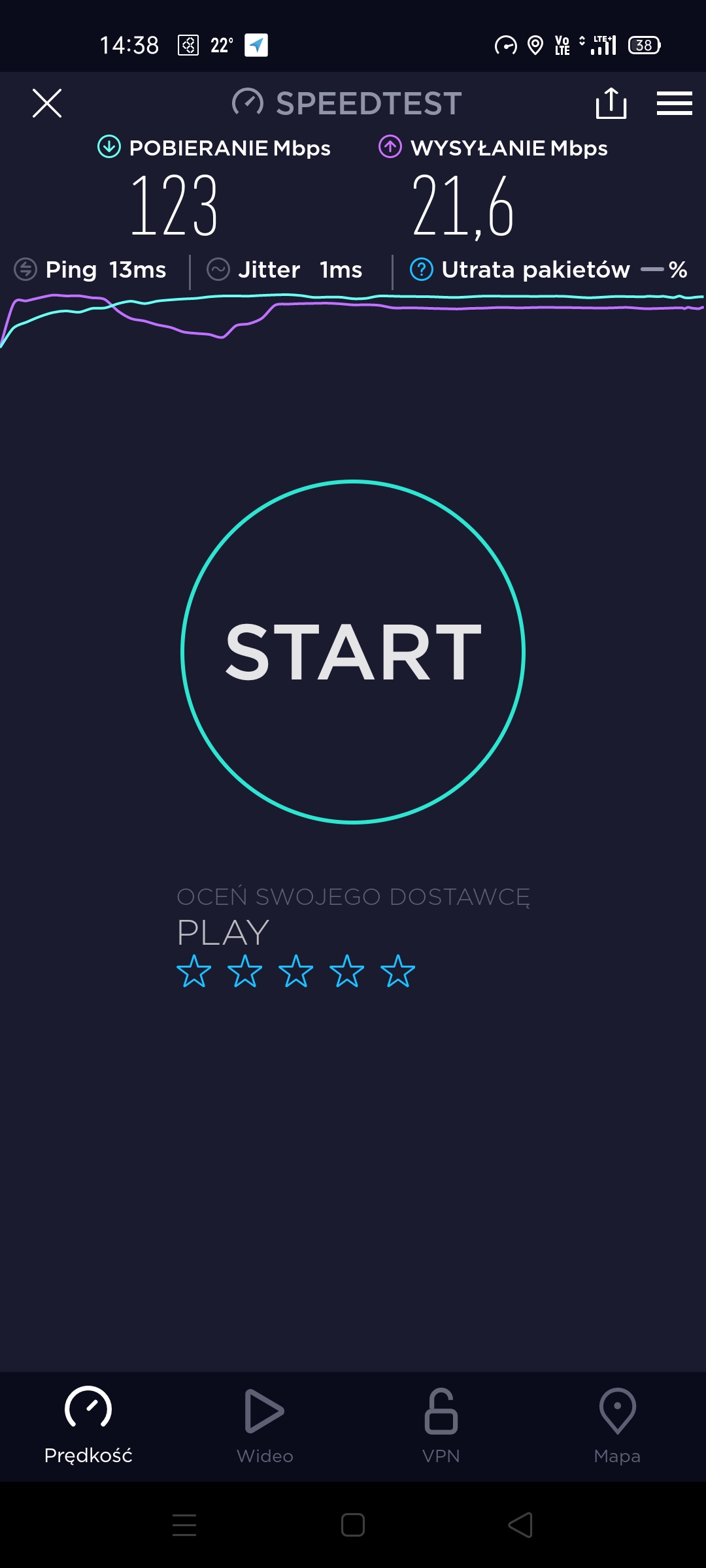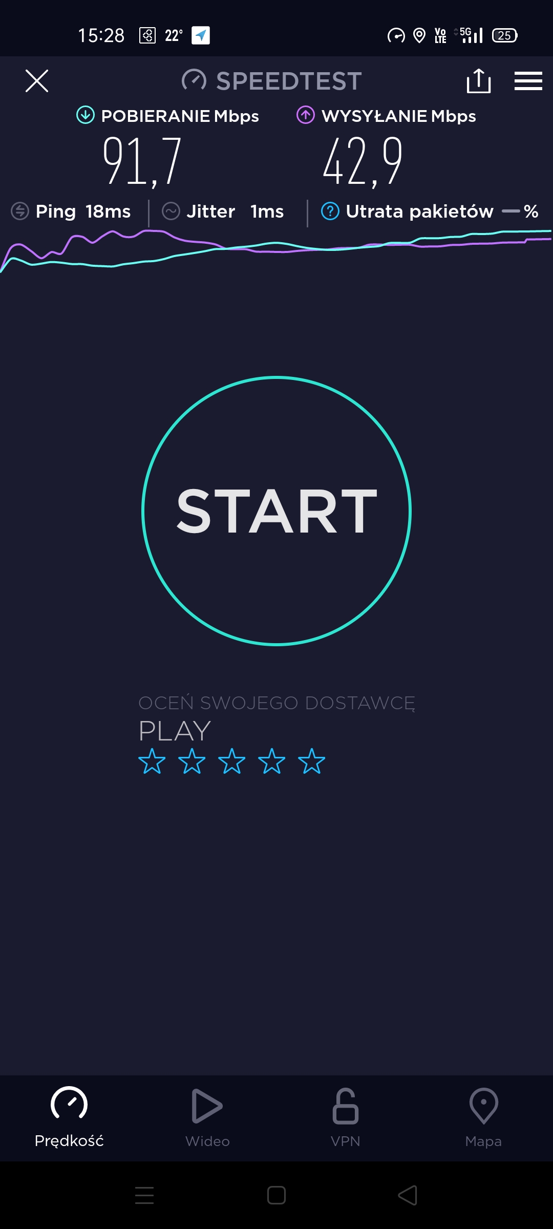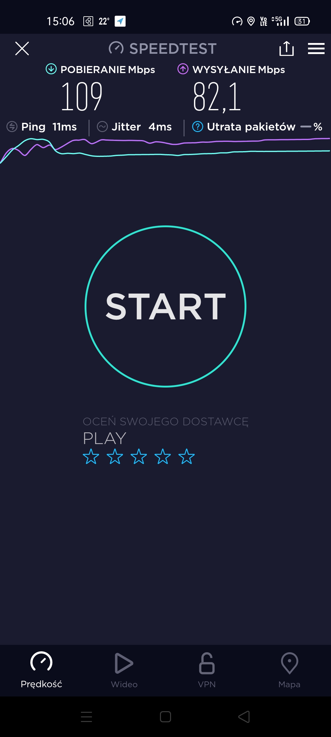 Ponad 100Mb uploadu to konkretna zaleta 5G, wyniki dobre nie widać jakieś czkawki up/down jak to w Plusie. Play się rozwija dynamicznie i to cieszy.
