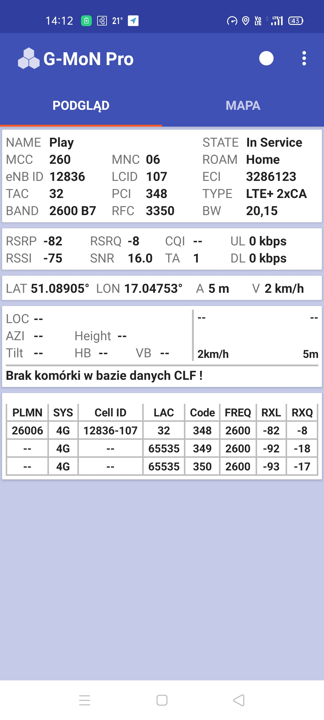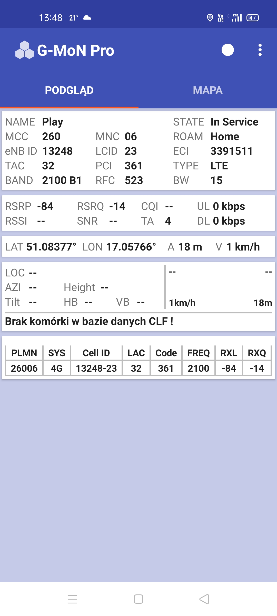 Prezentujemy jakość transmisji danych Play we Wrocławiu. Testy zrealizowaliśmy w śródmieściu oraz w jego niedalekim sąsiedztwie. Poniżej zrzuty ekranów z aplikacji testowych, które przedstawiają to, co klienci sieci mogą uzyskać w zakresie efektywności internetu mobilnego w segmentach: LTE oraz 5G NSA. Tam, gdzie dane występują tylko dla LTE – stacja nie miała zaimplementowanej technologii 5G lub terminal z jakiegoś powodu nie mógł z tego segmentu skorzystać.