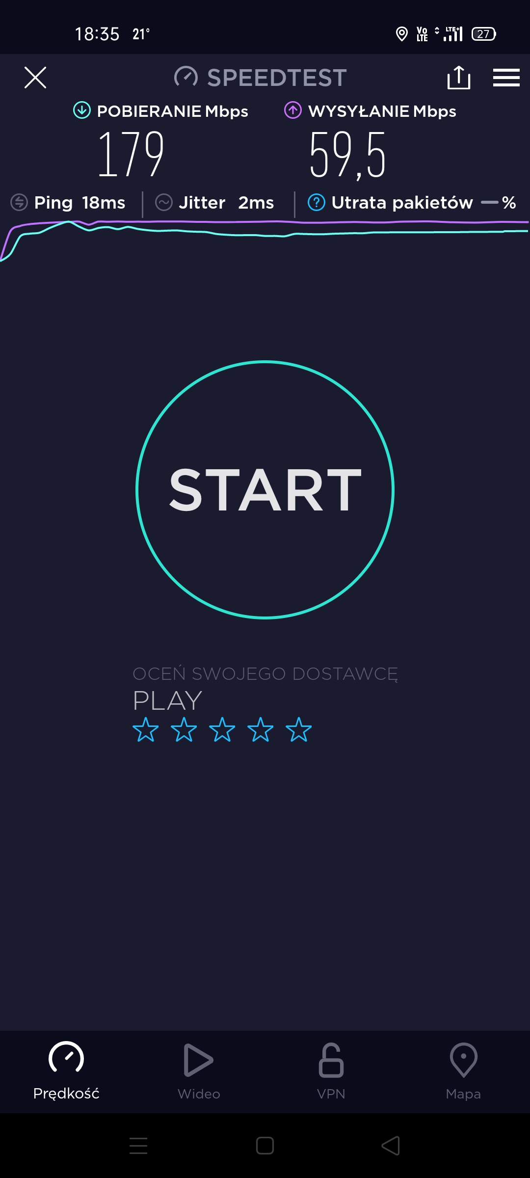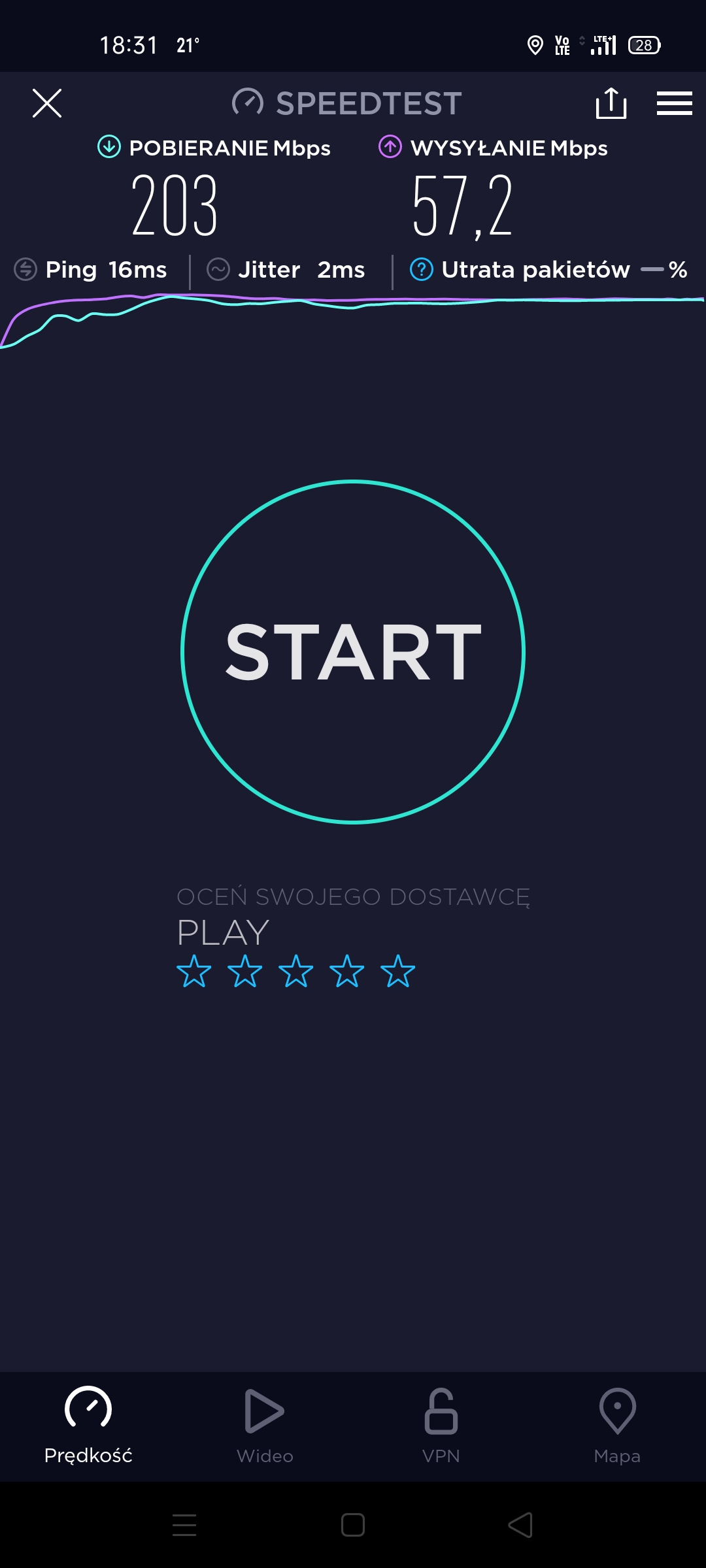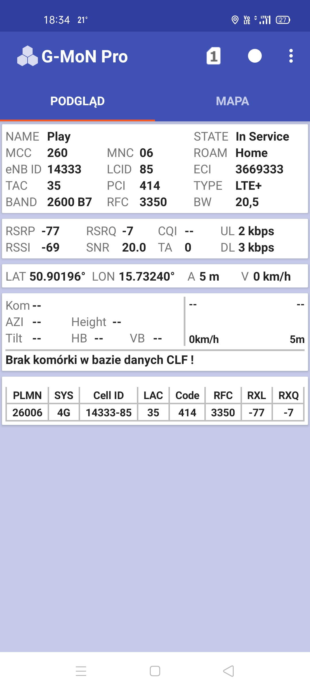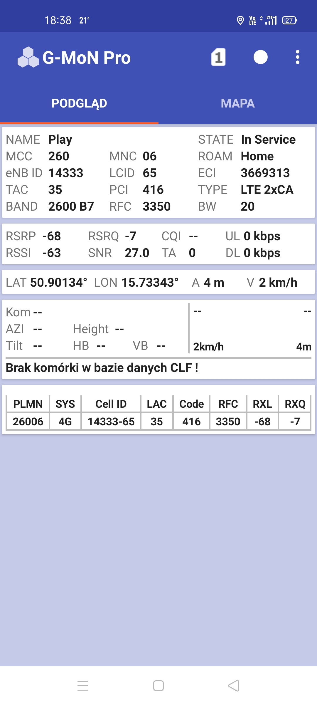 Play uruchomił po zakończonym procesie modernizacyjnym stację przy Pl. Niepodległości 1 w Jeleniej Górze. Lokalizacja, to dach budynku usługowego. Stacja zachowała sieciową numerację adresową. Pracuje w oparciu o trzy sektory, w kombinacji 4xCA. Modernizacja polegała na wymianie infrastruktury i przeniesieniu jej z okiennic na poddaszu na dach. Na zrzutach ekranów poniżej zobaczymy naprawdę imponujące wartości transmisji danych – tym bardziej, że stacja pracuje w śródmieściu.